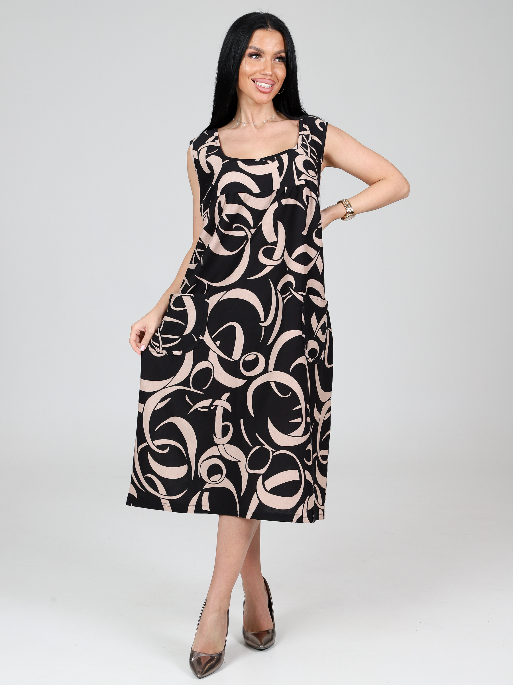 Сарафан сшит из воздухопроницаемого, мягкого и приятного для кожи трикотажного полотна - кулирки. Горловина окантована. Для практичности и удобства предусмотрены 2 кармана, тоже окантованные. Сарафан на каждый день отлично подходит для размеров плюссайз, скрывает недостатки фигуры. Ткань (100% хлопок) позволяет коже дышать. Домашняя женская одежда больших размеров - это отличный подарок для себя или близких. Наш трикотажный сарафан больших размеров подходит для повседневной носки и как удобная, практичная домашняя одежда для девушек и женщин любого возраста. Он отлично подойдет для прогулок, для дачи, для поездок в жаркую погоду, а также сарафан можно носить каждый день дома, оставаясь при этом стильной и модной.