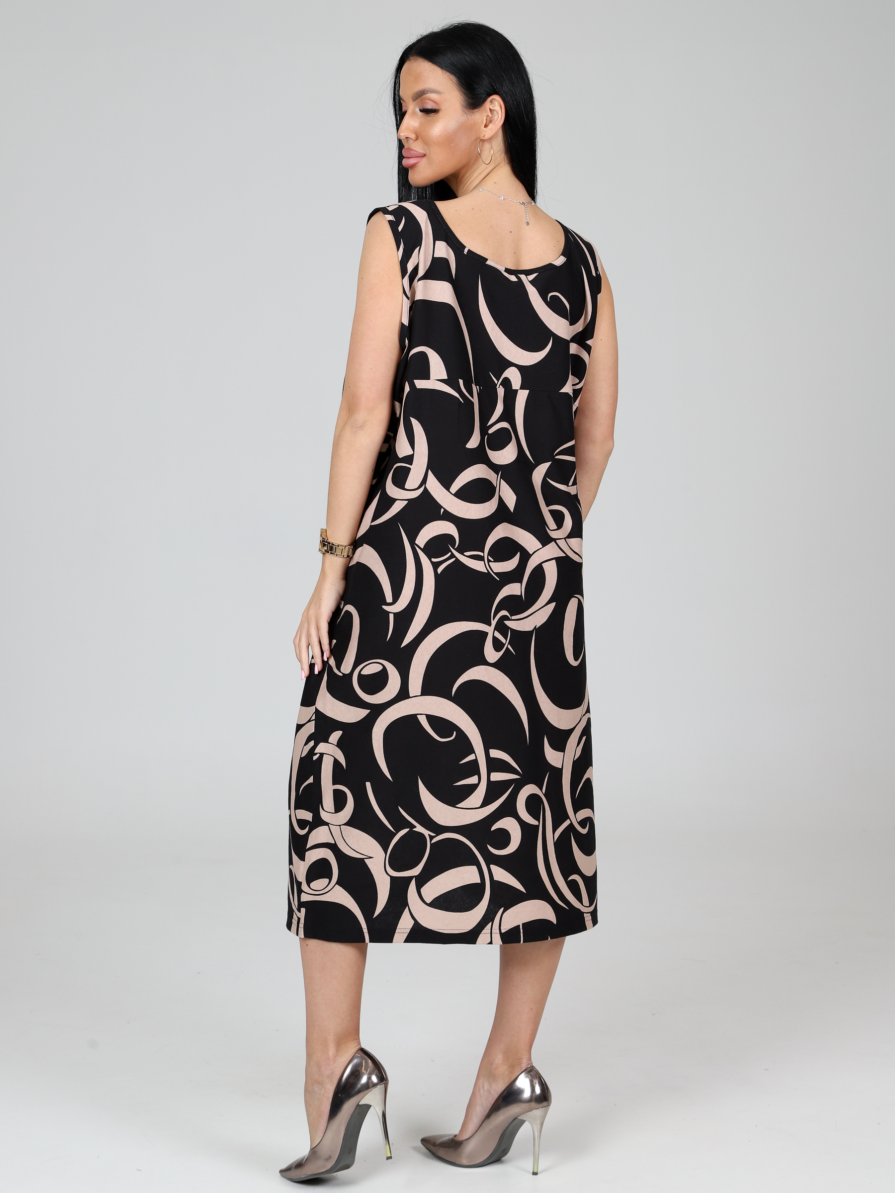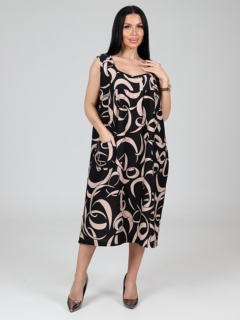 Женский сарафан МАКСИ СК-345 / Бежевые ленты на черном