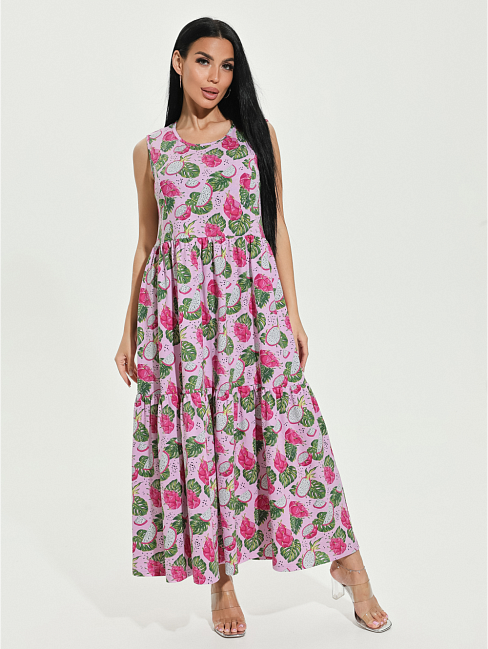 Огромной популярностью пользуются длинные платья-сарафаны. Главная особенность сарафана в его простоте и легкости, незаменимой в жаркую погоду. Открытые руки, спина и плечи позволяют греться в лучах солнца. Сарафан НЕЖНОСТЬ с отрезным лифом и широкими бретелями. Линия талии завышенная, лиф с рельефами, юбка на сборке в два яруса.