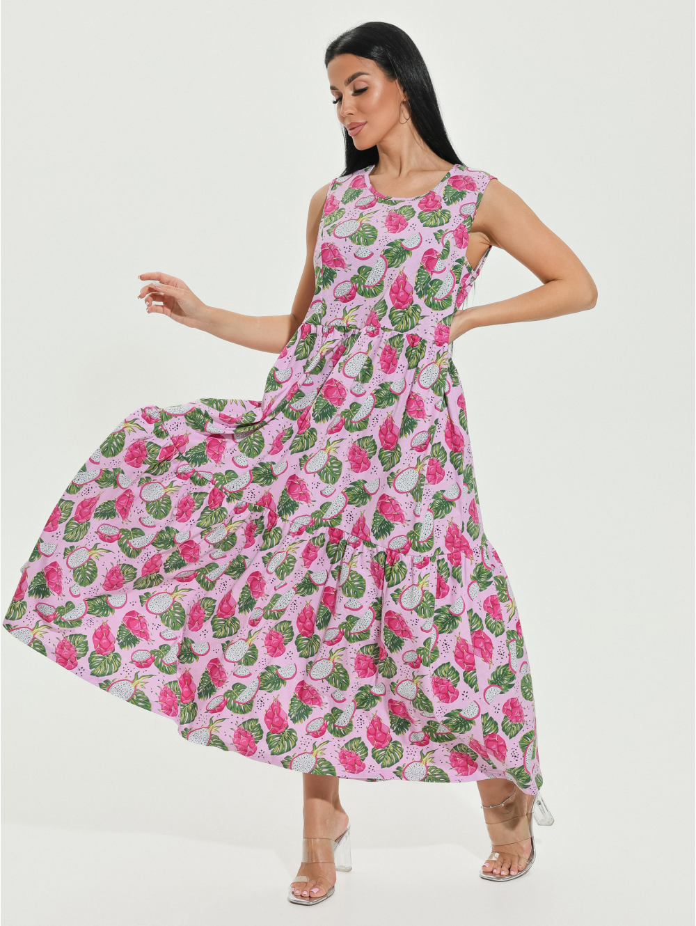 Огромной популярностью пользуются длинные платья-сарафаны. Главная особенность сарафана в его простоте и легкости, незаменимой в жаркую погоду. Открытые руки, спина и плечи позволяют греться в лучах солнца. Сарафан НЕЖНОСТЬ с отрезным лифом и широкими бретелями. Линия талии завышенная, лиф с рельефами, юбка на сборке в два яруса.