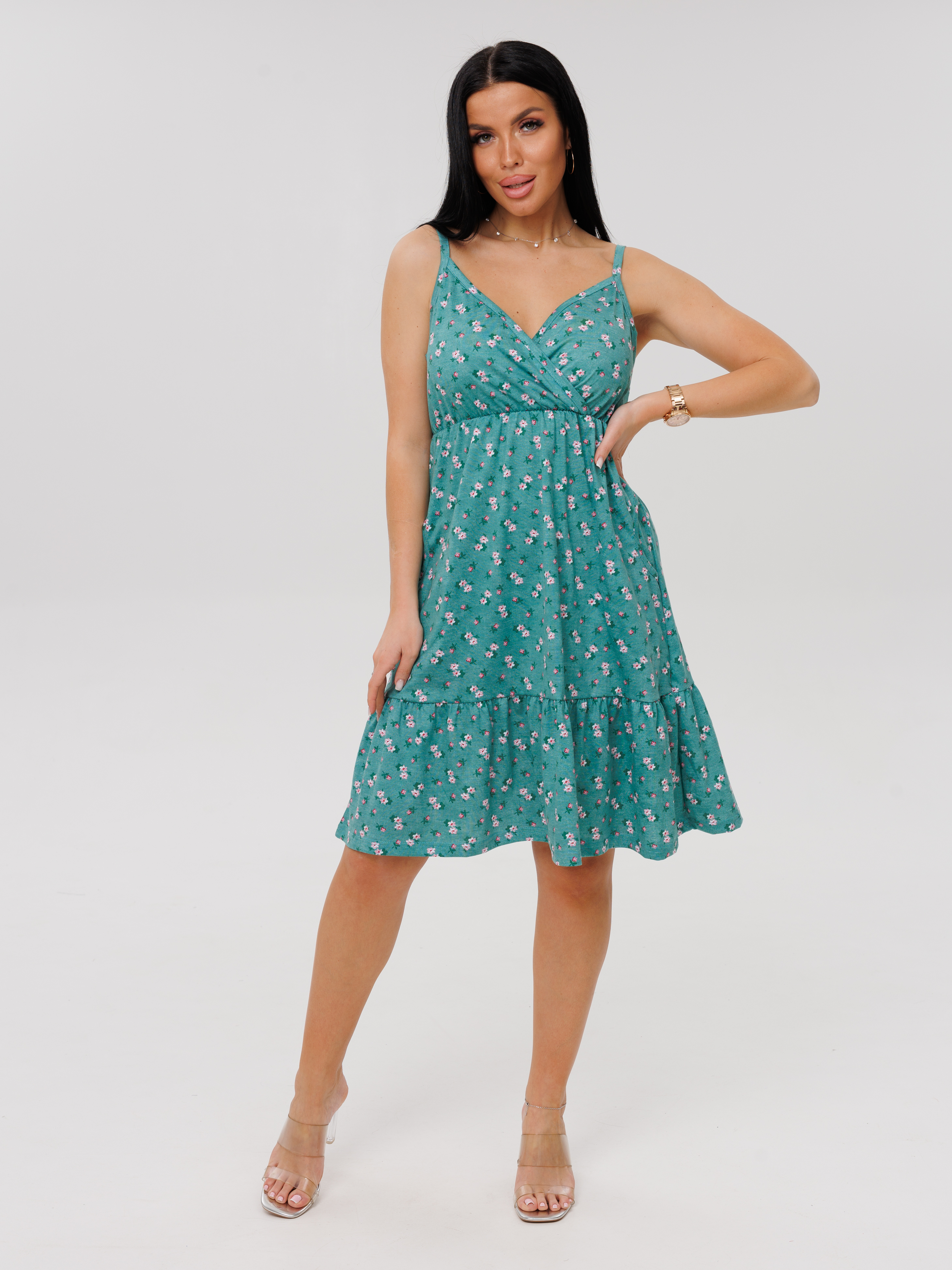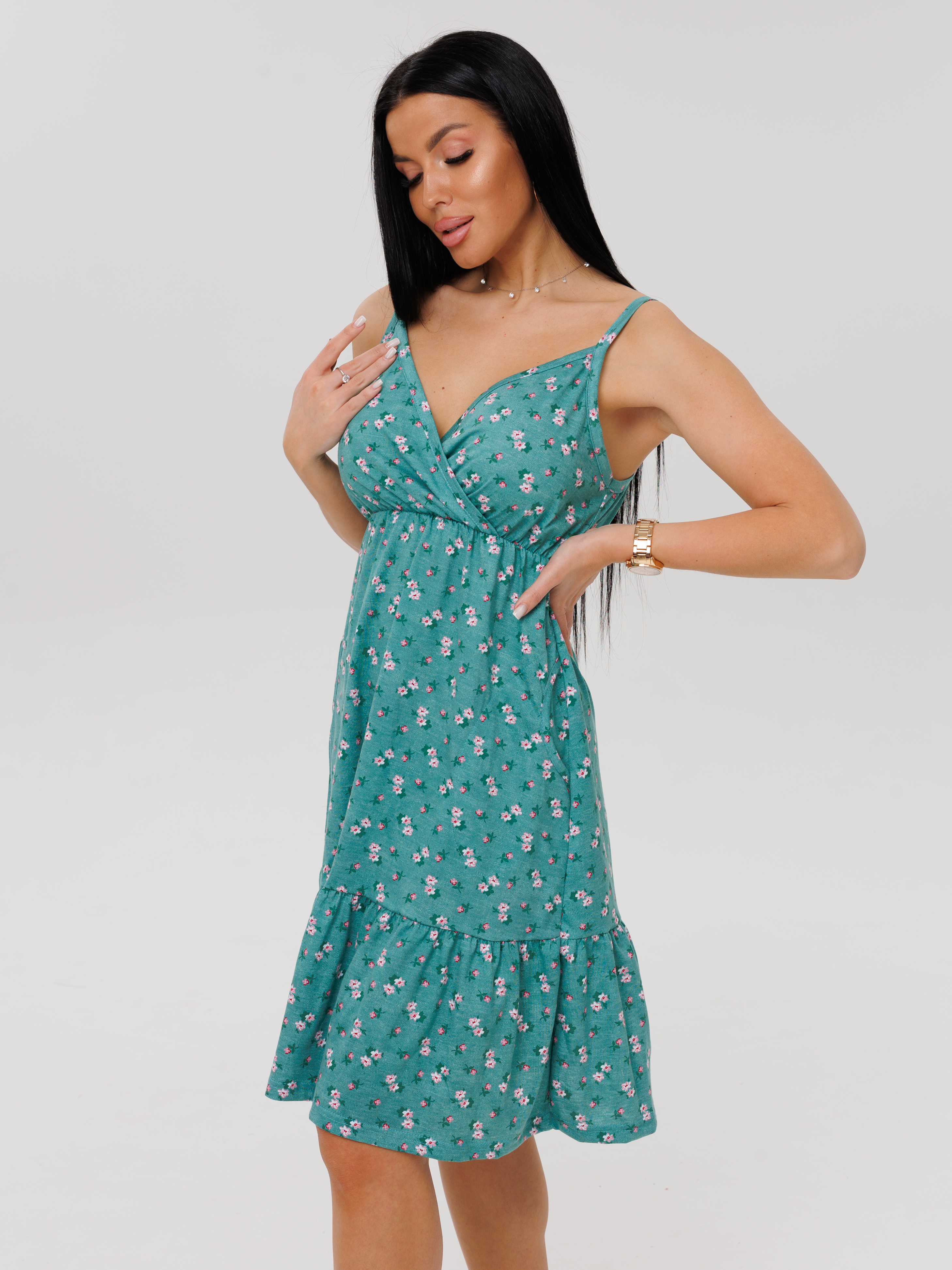 Женский сарафан С- 95(К) / Бирюзовый (цветы)