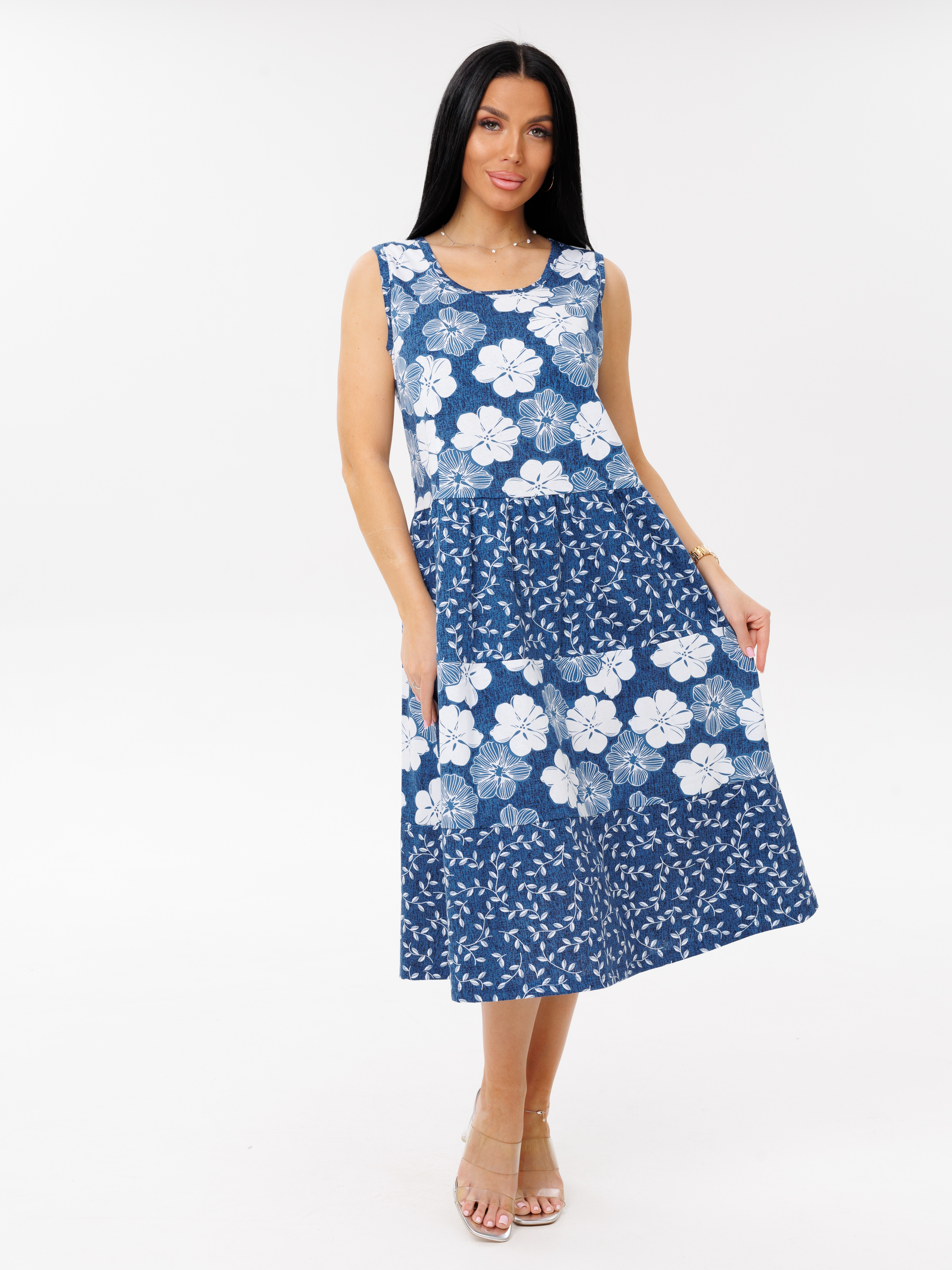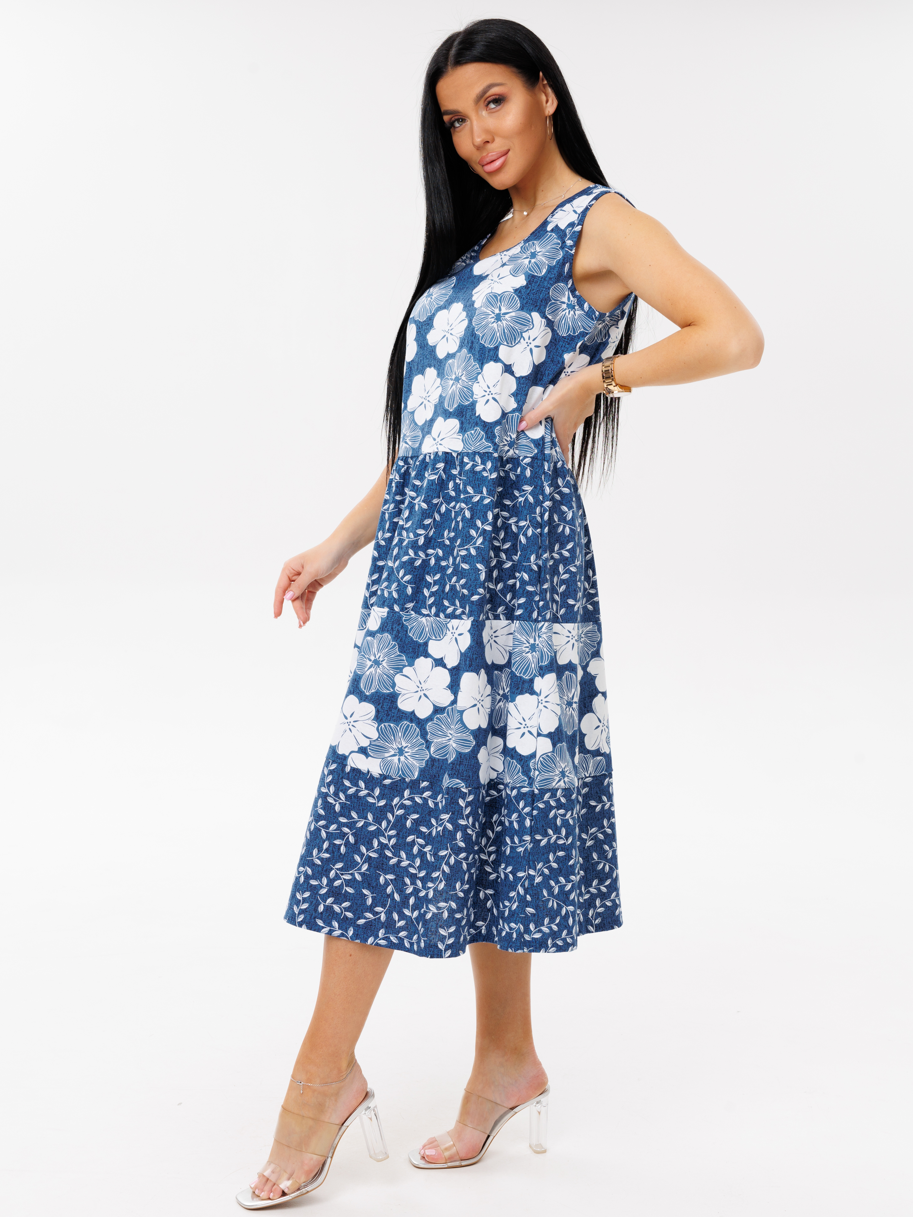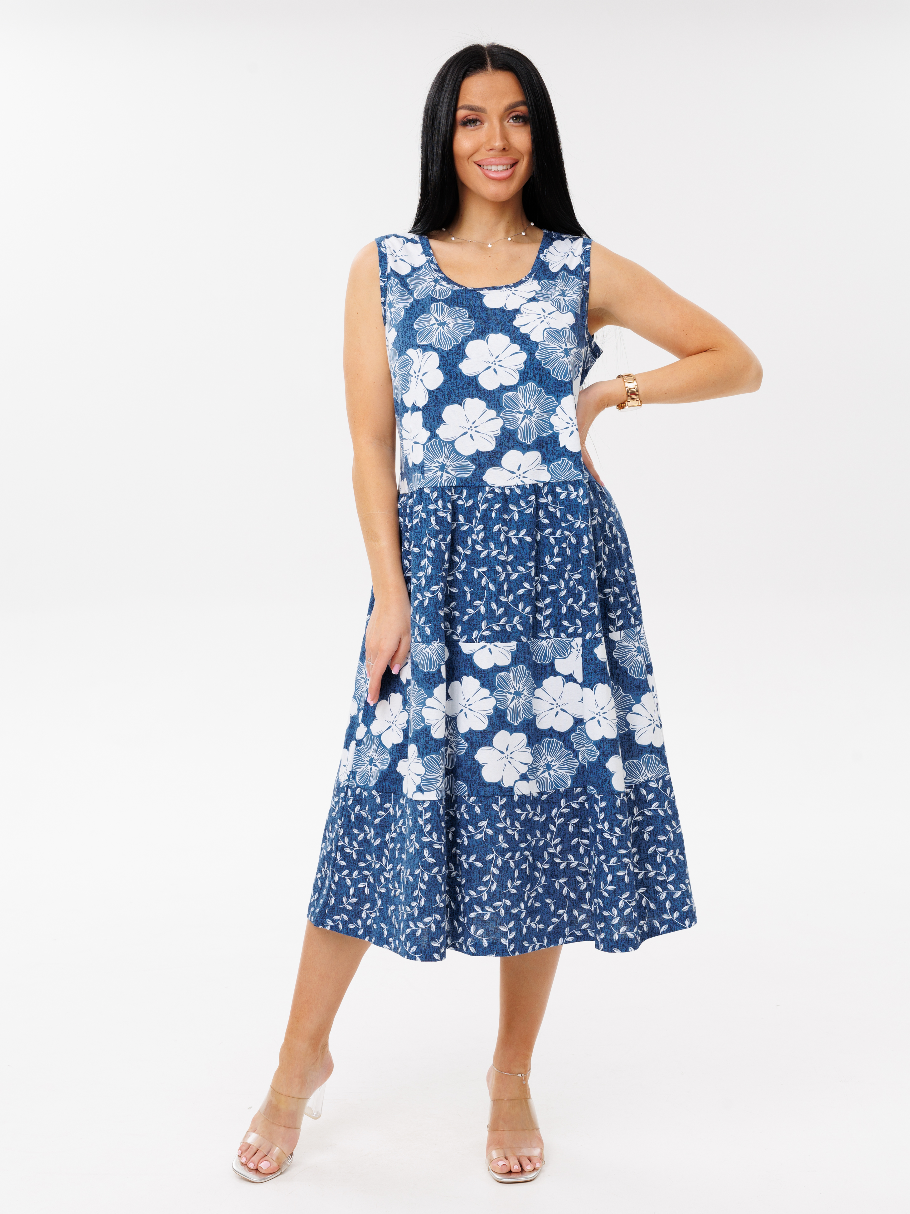 Женский сарафан С-97(К) / Индиго (цветы)