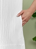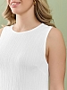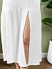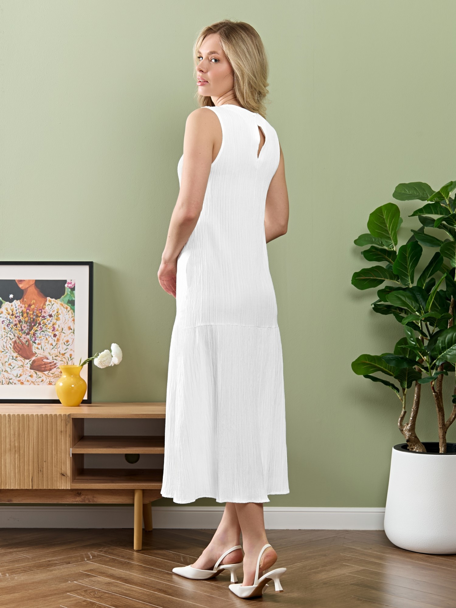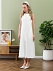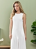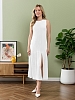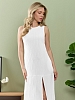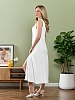 Сарафан женский из гладкокрашеного тканого полотна, удлиненное, полуприлегающего силуэта, без рукавов, с горловиной овальной формы. По нижнему прямому срезу притачная оборка с ассиметричным разрезом. Проймы, горловина окантованы основным материалом. При выборе изделия в белом цвете идеальным решением будет выбор белья нейтральных оттенков.