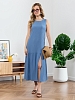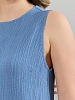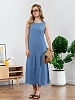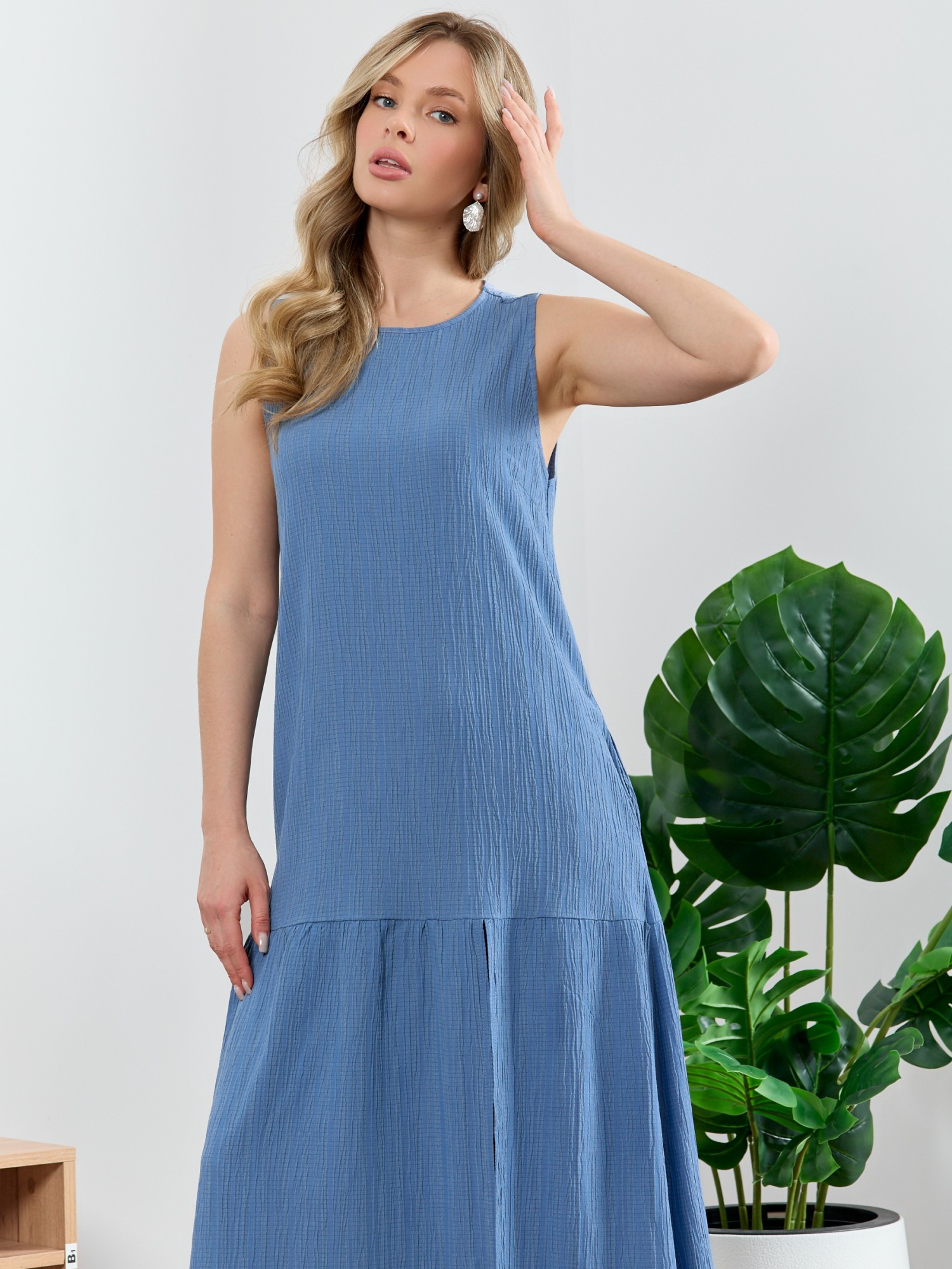 Сарафан женский из гладкокрашеного тканого полотна, удлиненное, полуприлегающего силуэта, без рукавов, с горловиной овальной формы. По нижнему прямому срезу притачная оборка с ассиметричным разрезом. Проймы, горловина окантованы основным материалом. При выборе изделия в белом цвете идеальным решением будет выбор белья нейтральных оттенков.