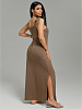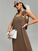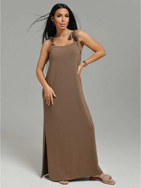 Сарафан женский Валенсия А-образного силуэта, длиной до щиколотки. Лямки сарафана представляют собой завязки из окантовки. В левом боковом шве разрез.