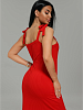 Сарафан женский Валенсия А-образного силуэта, длиной до щиколотки. Лямки сарафана представляют собой завязки из окантовки. В левом боковом шве разрез.