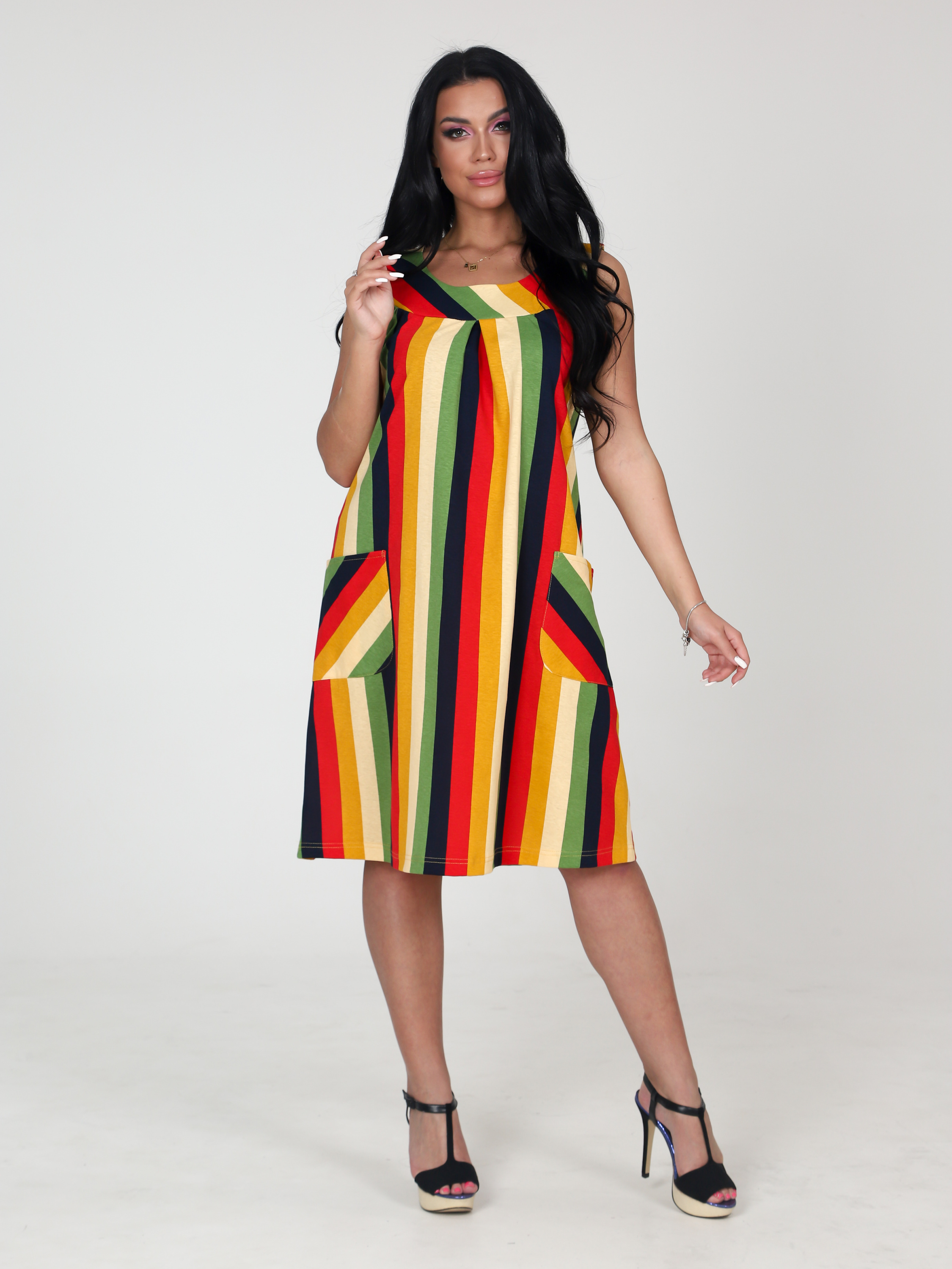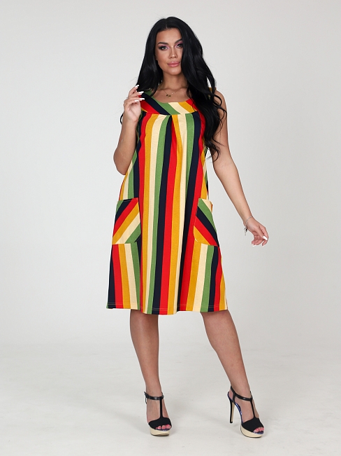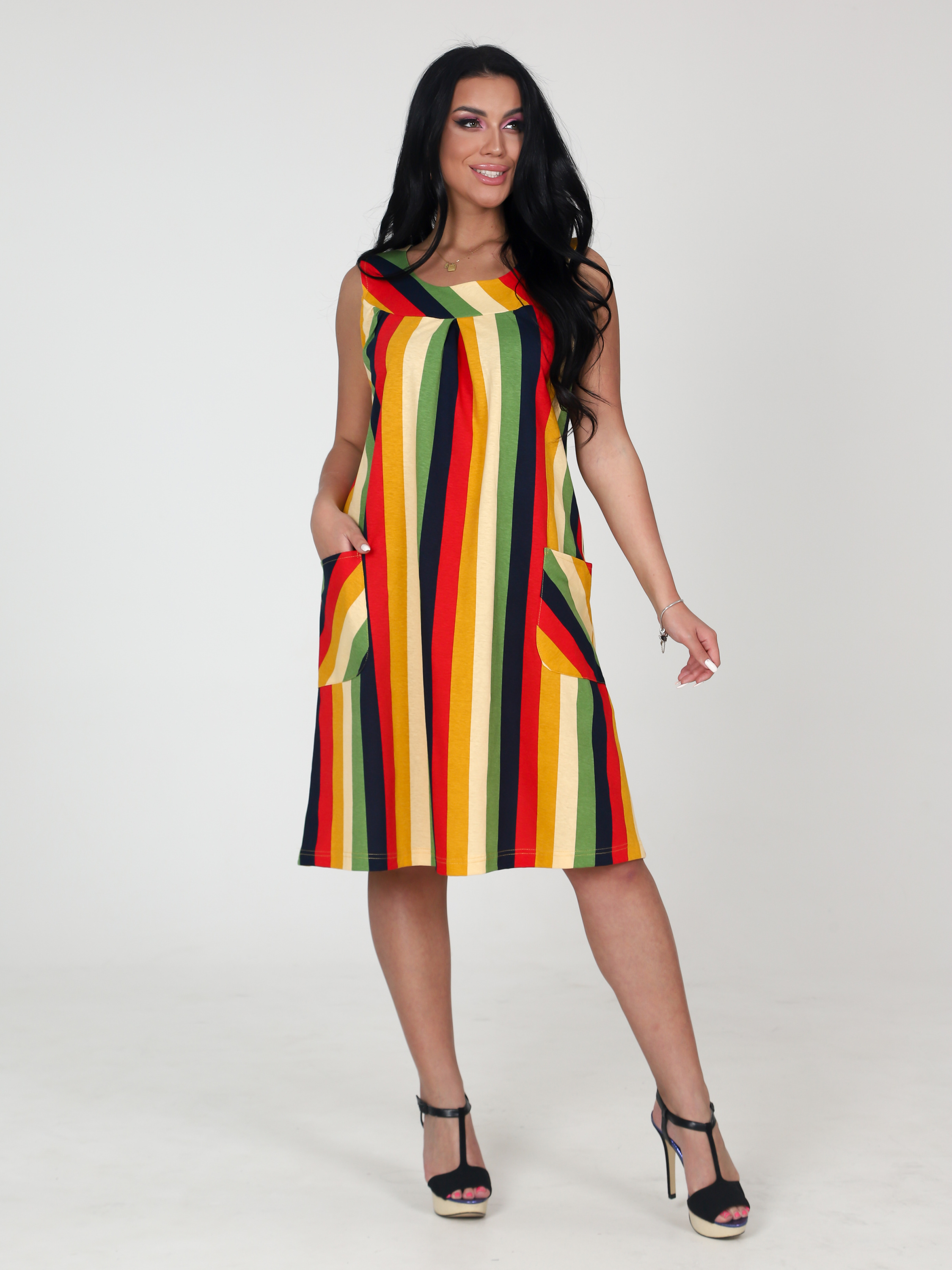 Легкий летний сарафан, идеален для жаркого лета: двойная кокетка, два вместительных накладных кармана, универсальная длина. Комфортное трикотажное платье - сарафан уникально тем, что модель подойдет практически для любой женщины или девушки, отлично скрывает недостатки, подчеркивает достоинства. Размерный ряд включает маленькие и большие размеры. Сарафан из хлопка можно носить как повседневную одежду летом, на прогулки, на пляж, а также домашнее платье, домашний сарафан - превосходный выбор, в т. ч. при встрече гостей в домашней обстановке или на природе. Силуэт платья подойдёт как для пышных форм, так и для стандартной фигуры. Трапециевидный силуэт позволяет носить сарафан даже беременным. В этом платье вы будете чувствовать себя комфортно и стильно.