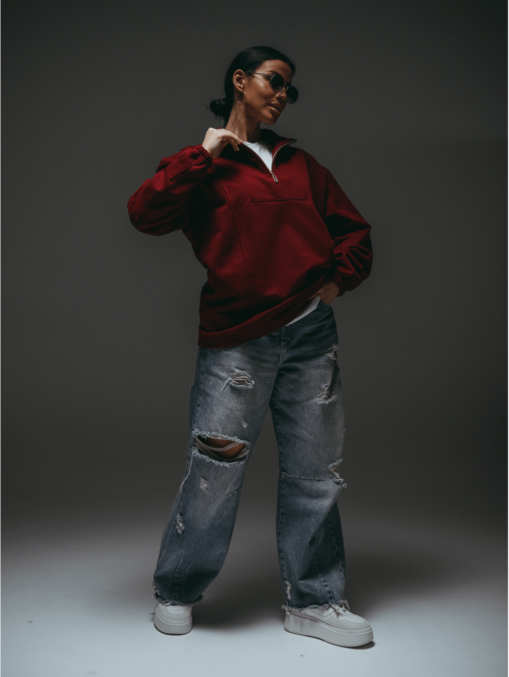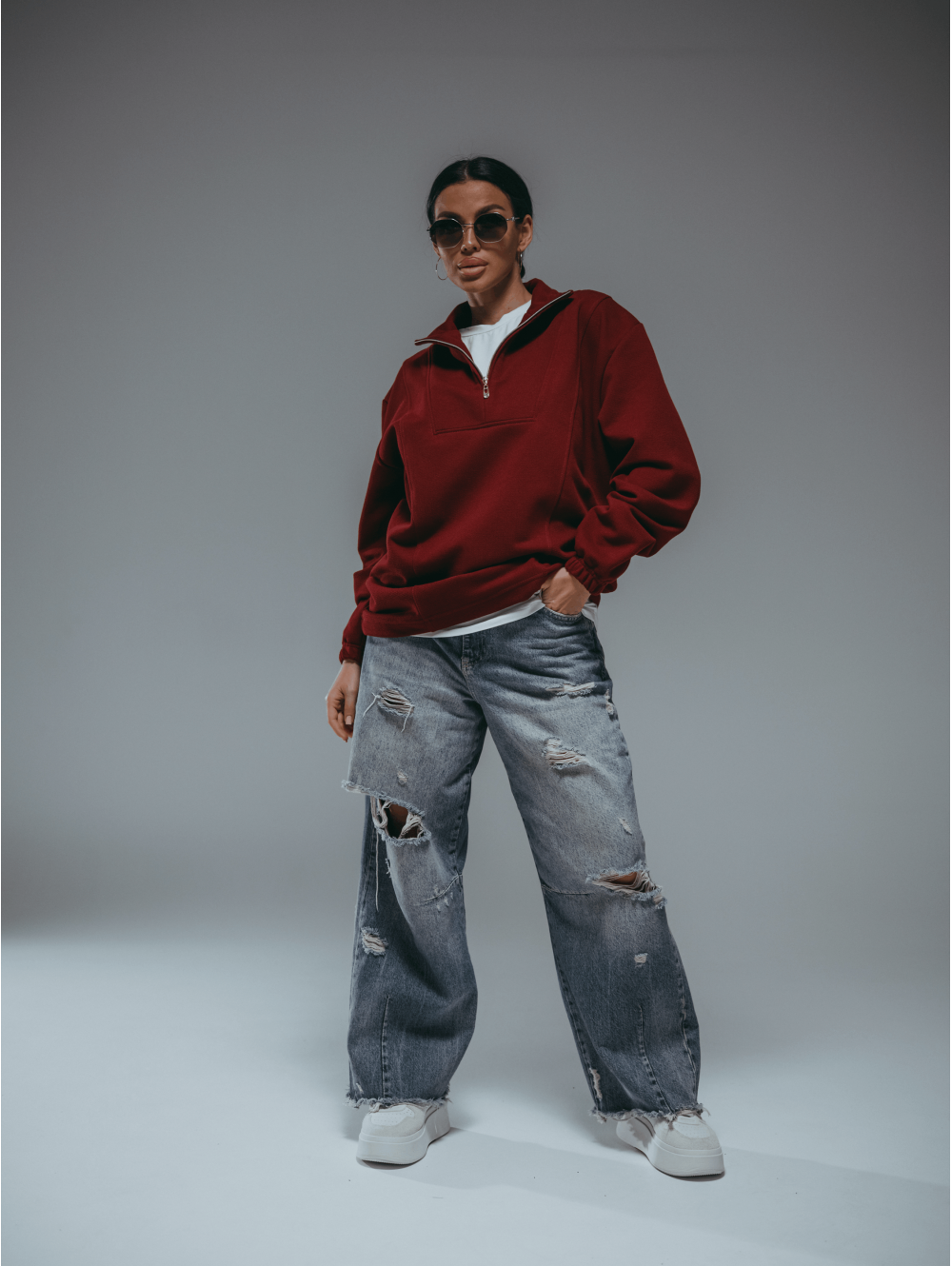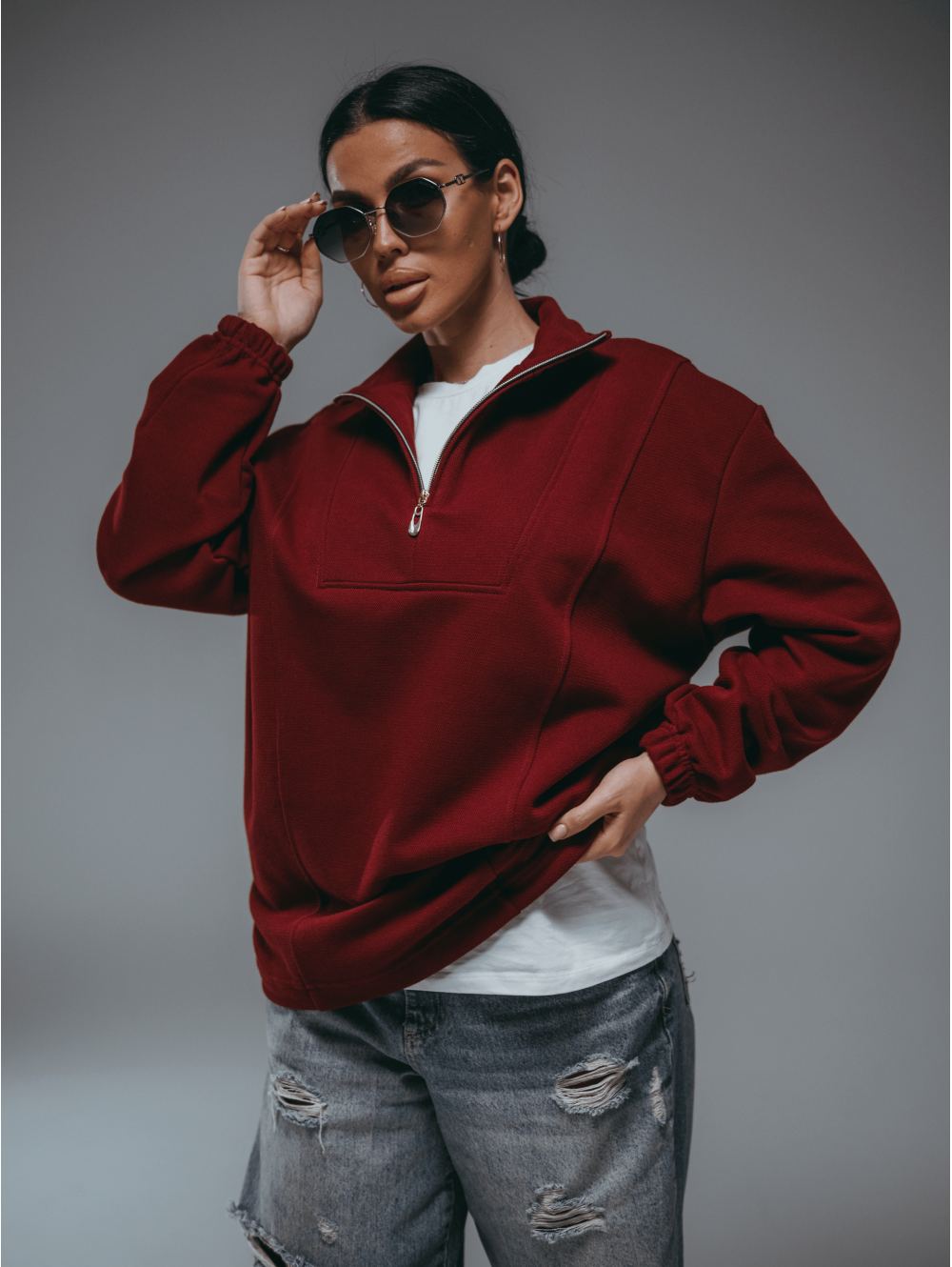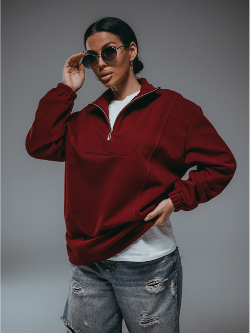 Свитшот женский с воротником стойкой на молнии — стильная и практичная модель для повседневных образов.