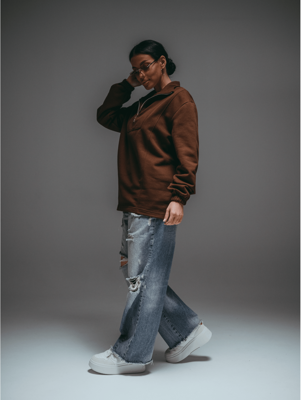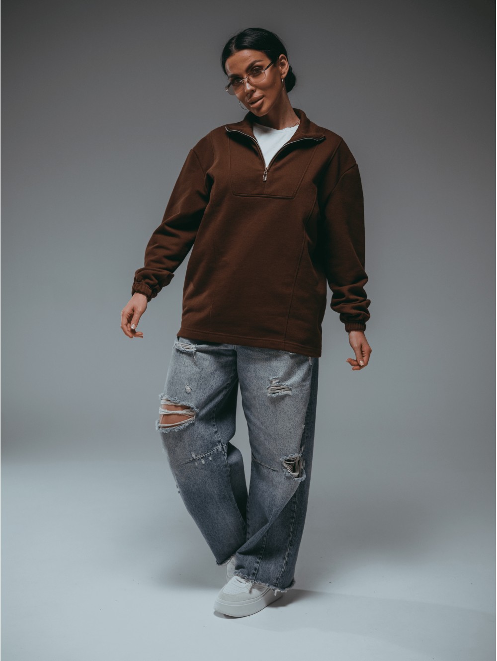 Свитшот женский с воротником стойкой на молнии — стильная и практичная модель для повседневных образов.