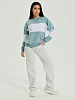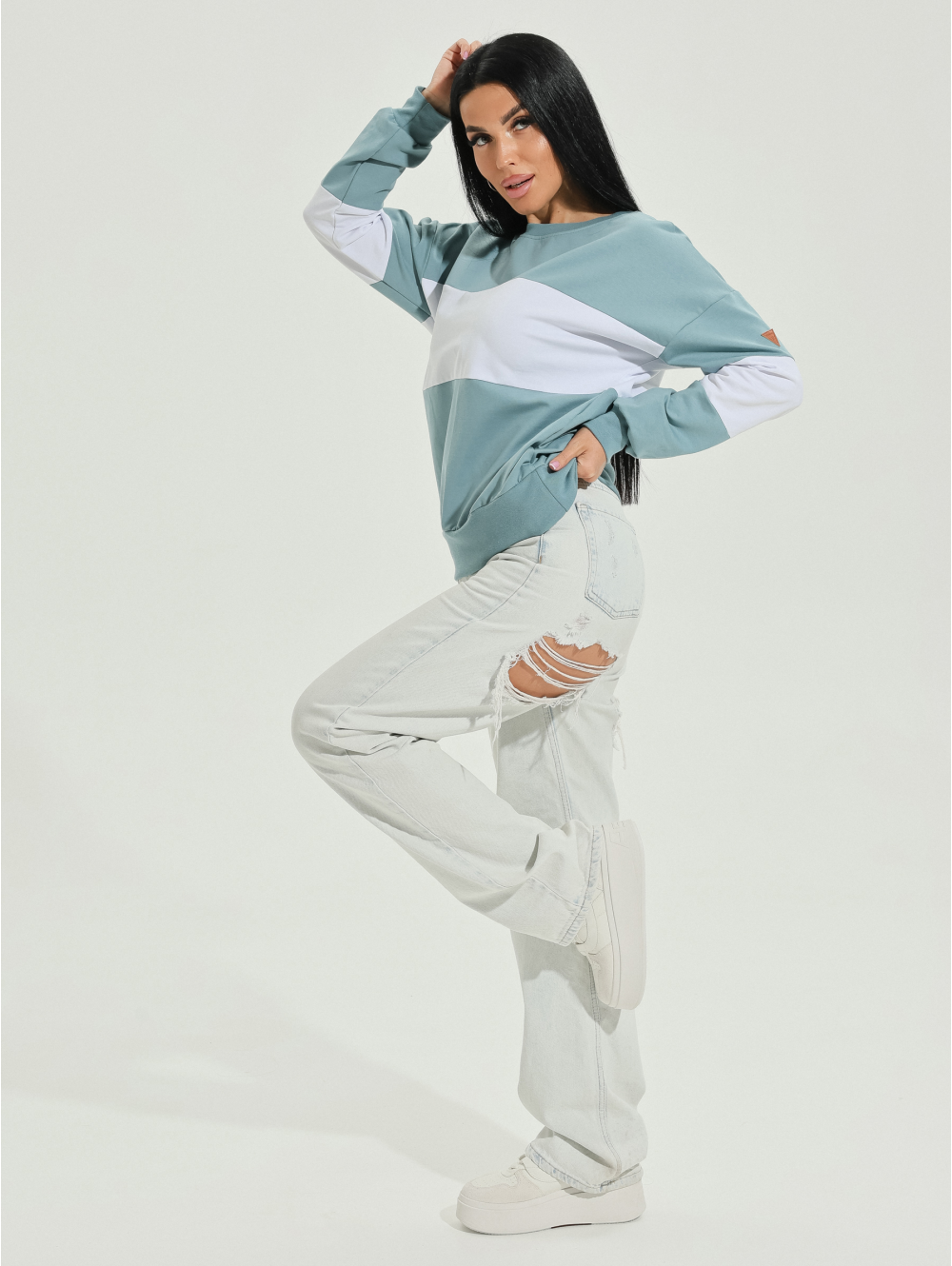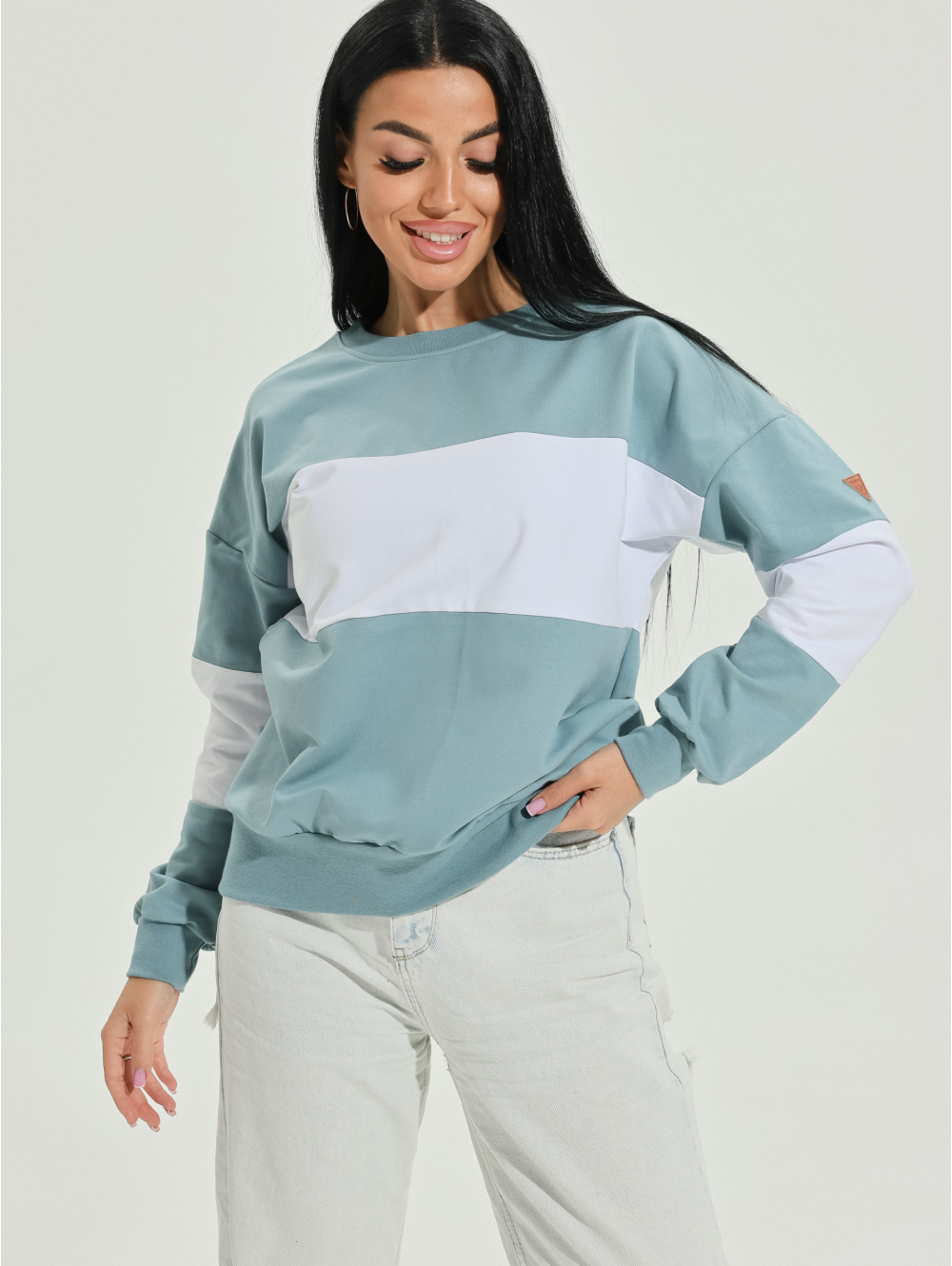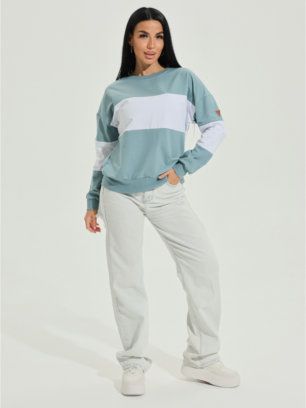 Удобный крой, не сковывающий движений; отсутствие пуговиц, молний, шнуровок; круглая горловина кофты; рукава и низ изделия на манжете из рибаны.