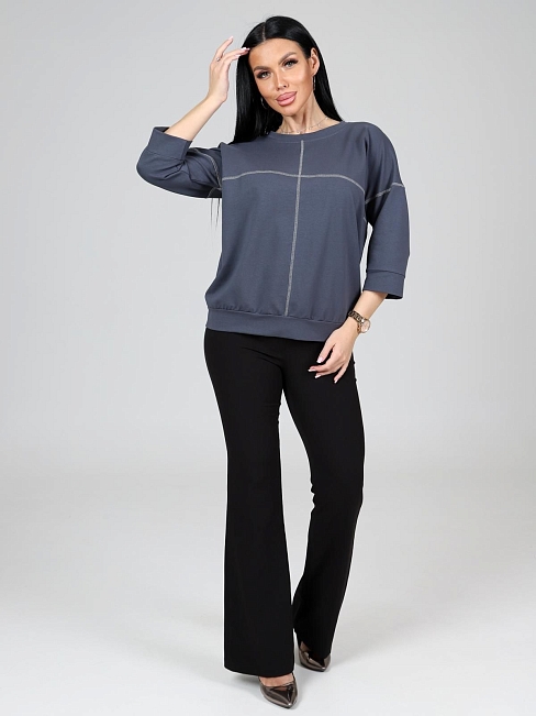 Удобный и стильный женский свитшот, сшит из мягкого трикотажного полотна высокого качества - футер двунитка. Свитшот не стесняет движений, отлично сочетается с брюками и джинсами. Максимально удобен при носке и выгодно сидит на фигуре.