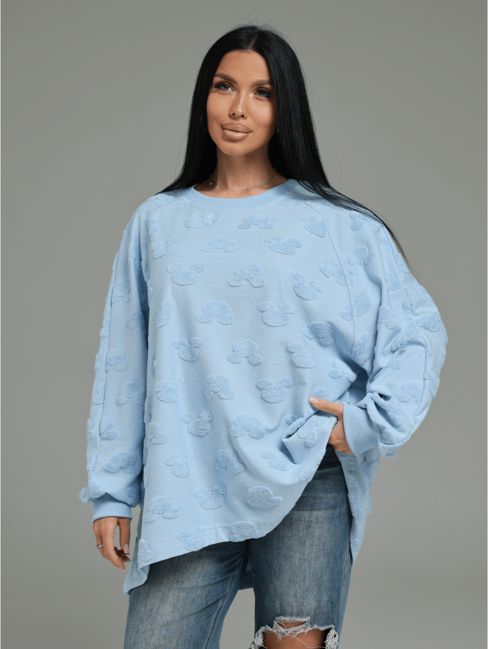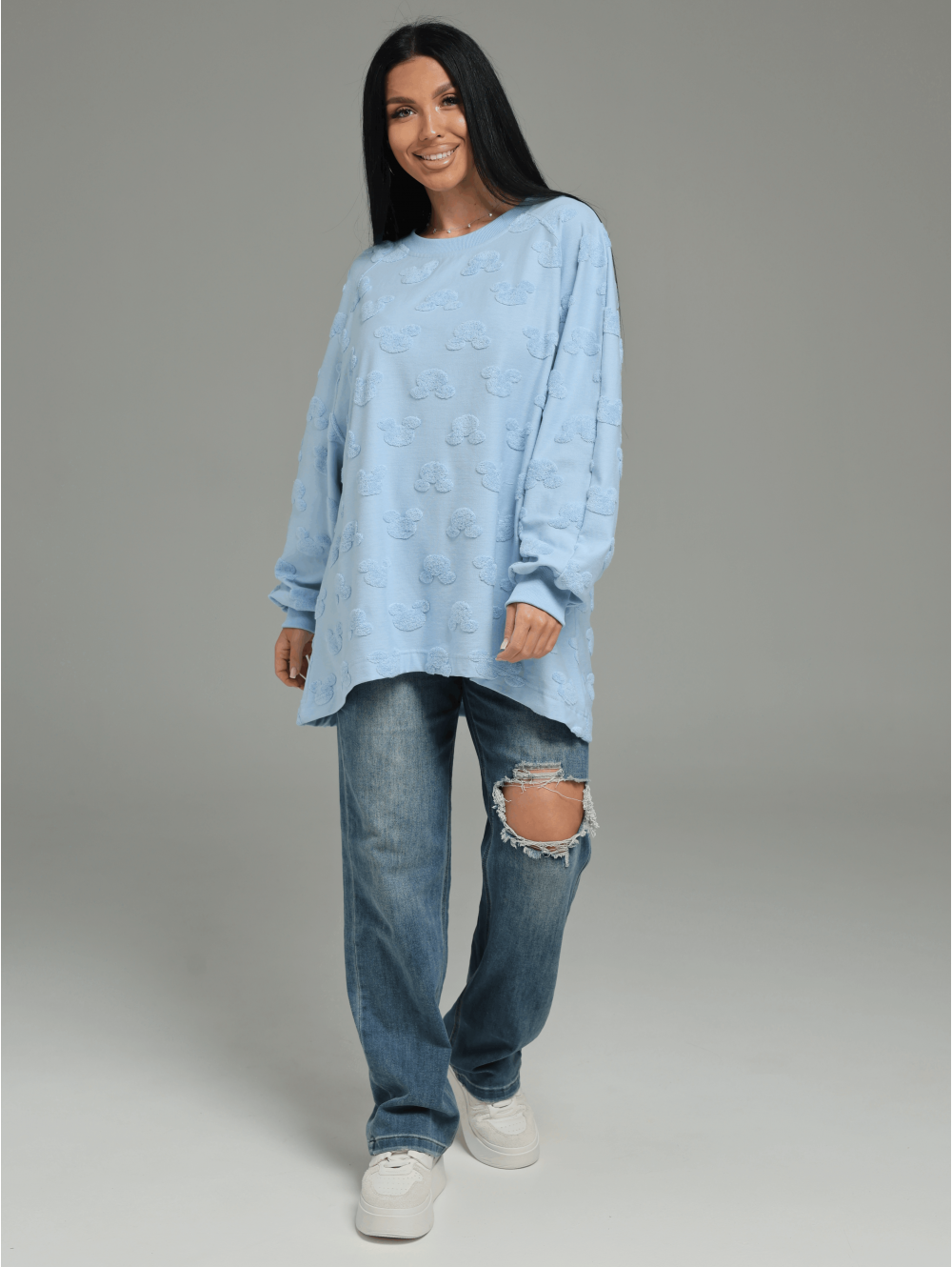 Женский свитшот оверсайз из махры жаккард. Уютный реглан с кашкорсе.