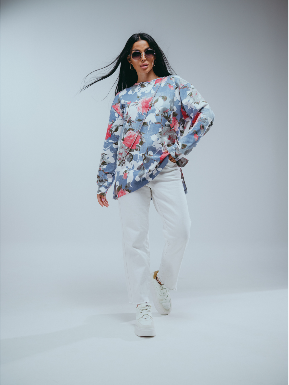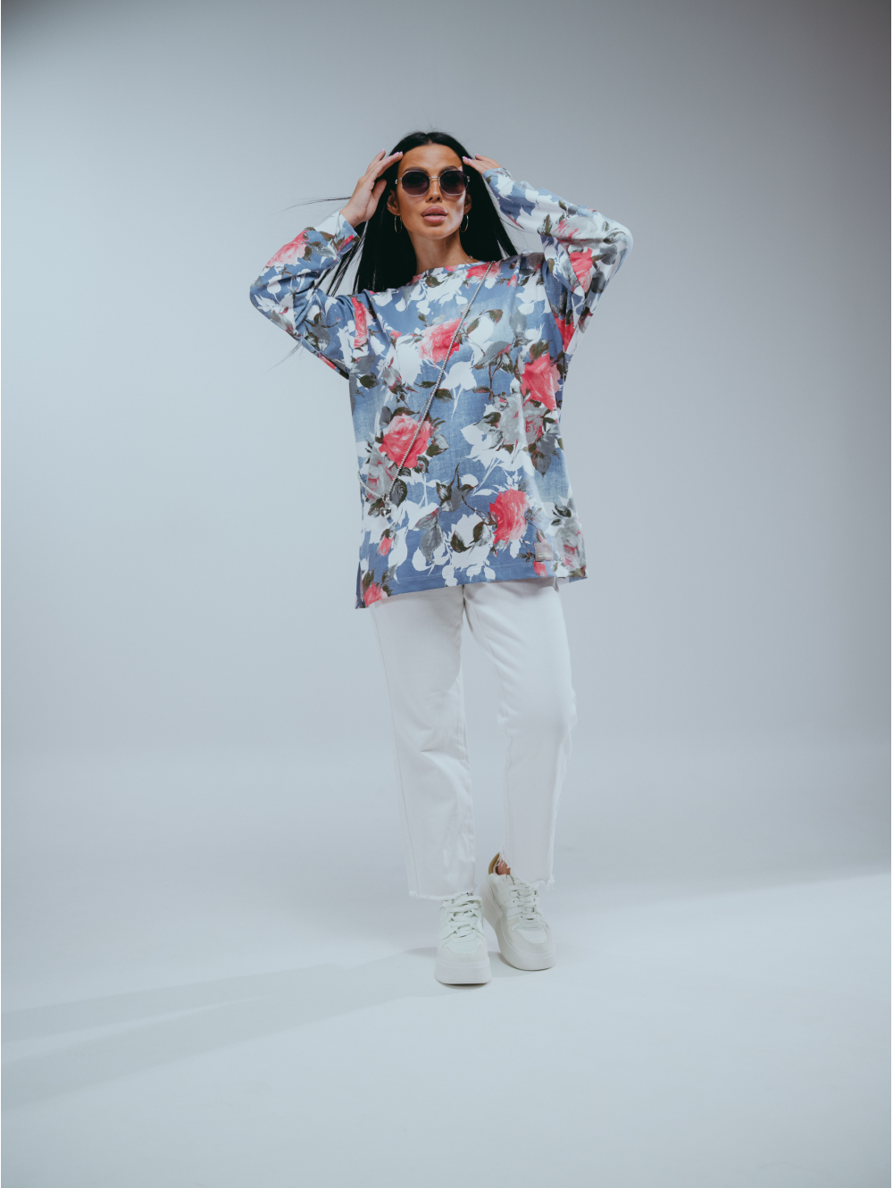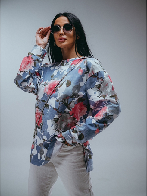 Свитшот Роуз прямой - оверсайз со спущенным плечом и длинным втачным рукавом. В боковых швах выполнены разрезы.