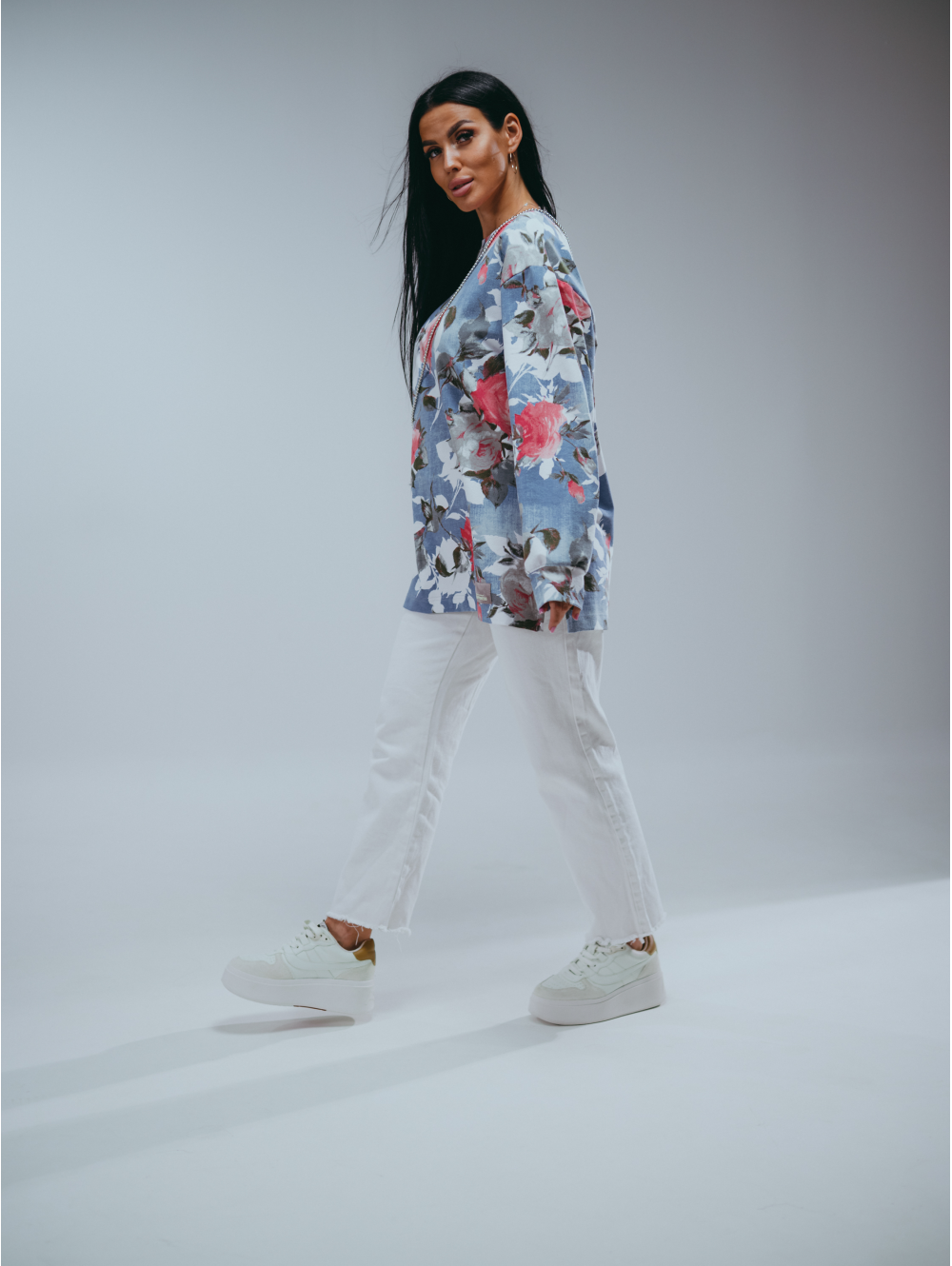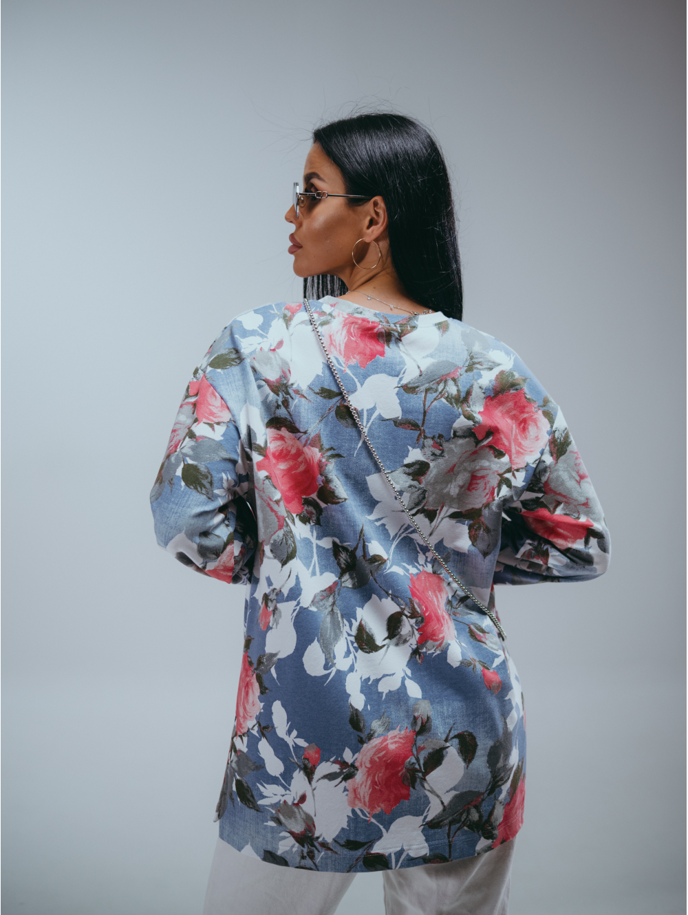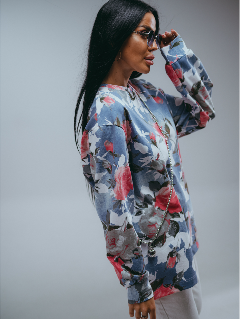 Свитшот Роуз прямой - оверсайз со спущенным плечом и длинным втачным рукавом. В боковых швах выполнены разрезы.