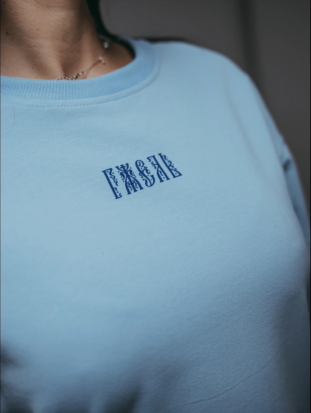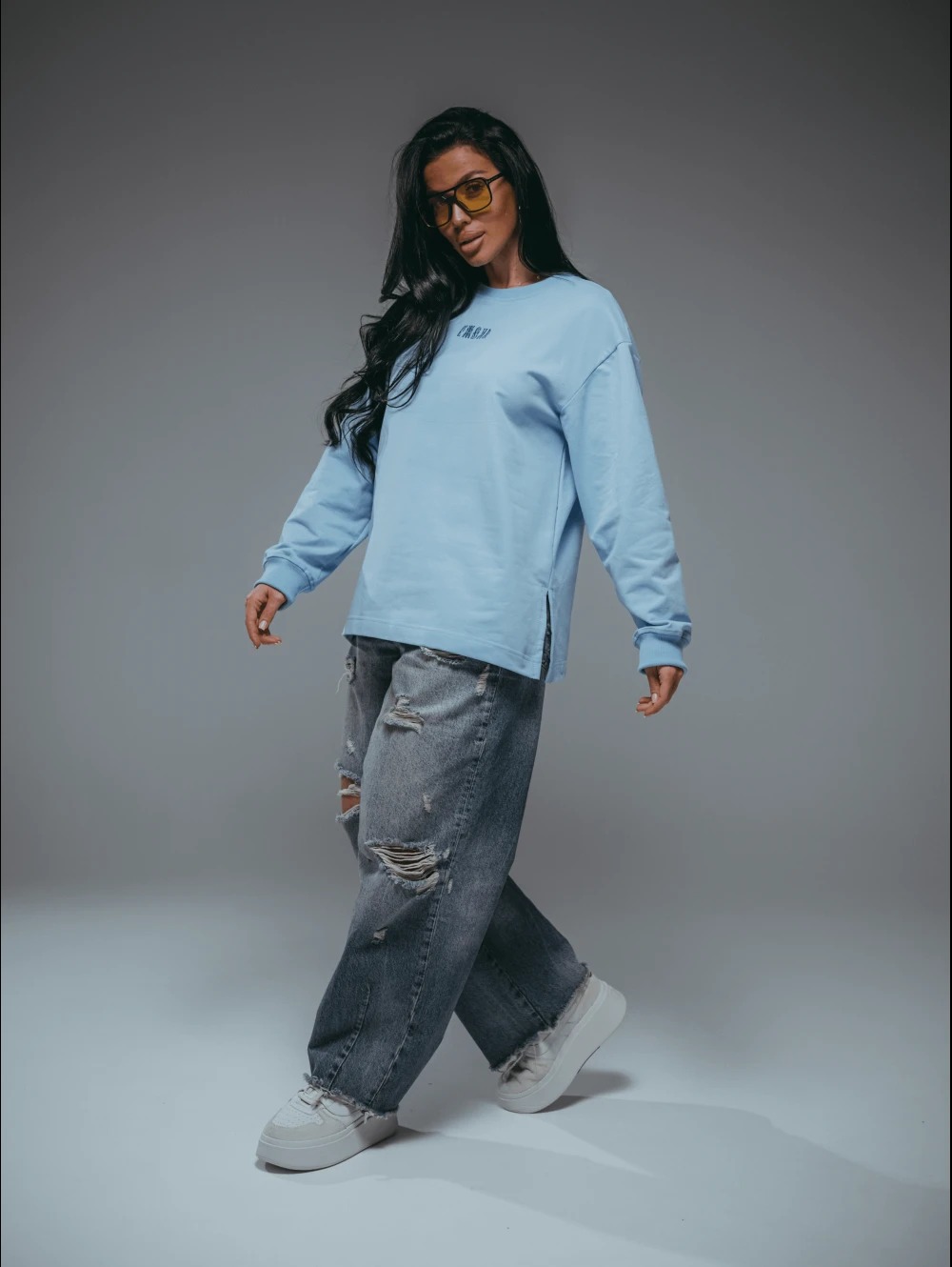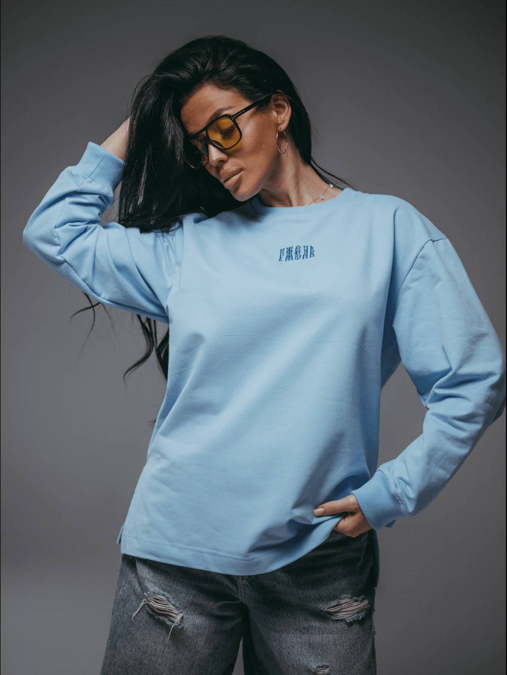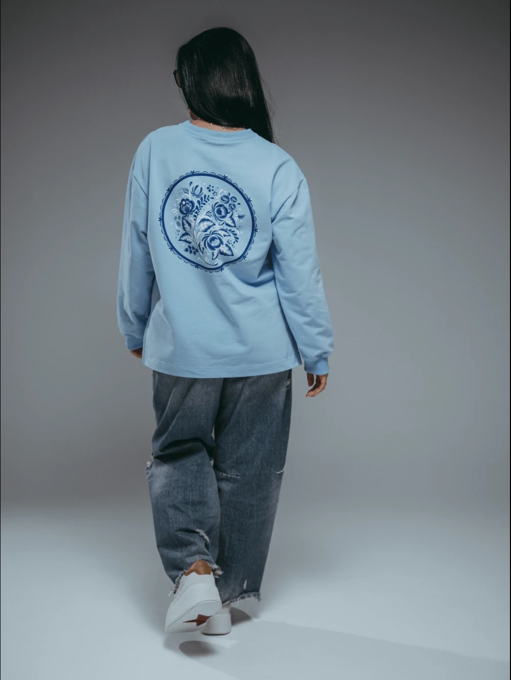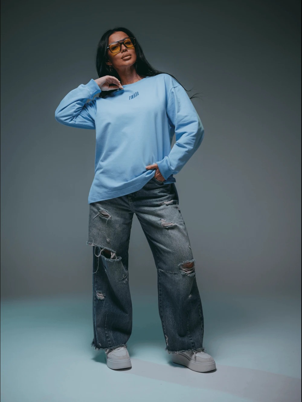 Свитшот Русь прямой - оверсайз со спущенным плечом и длинным втачным рукавом. По низу рукавов втачаны манжеты из кашкорсе. Принт на полочке и спинке.