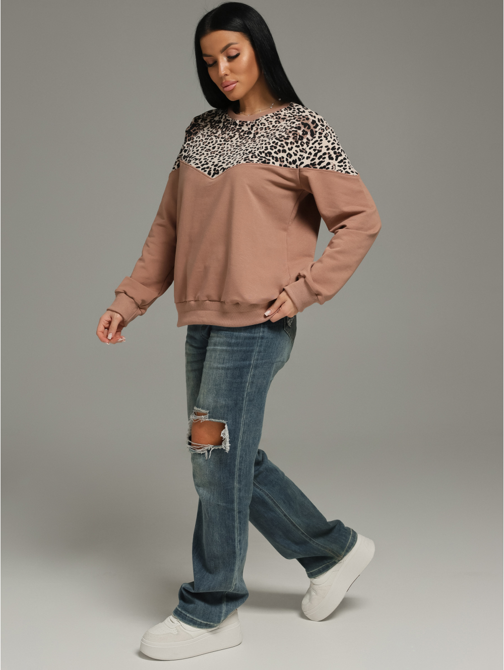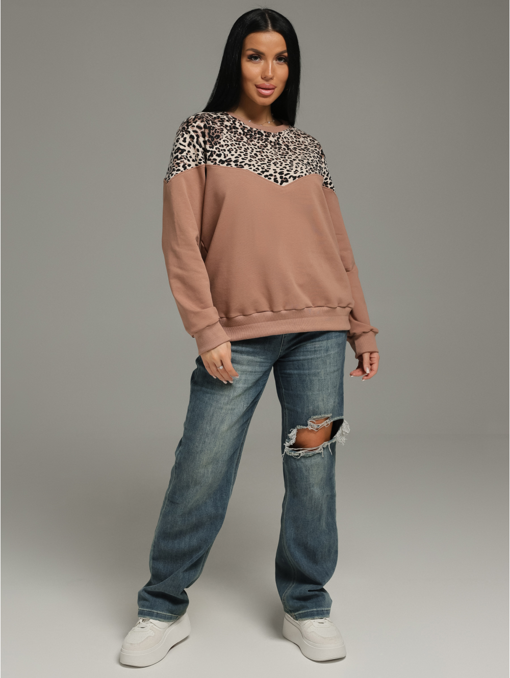 Свитшот Саманта прямого силуэта, c длинным втачным рукавом на манжете. Полочка и спинка с фигурными кокетками.