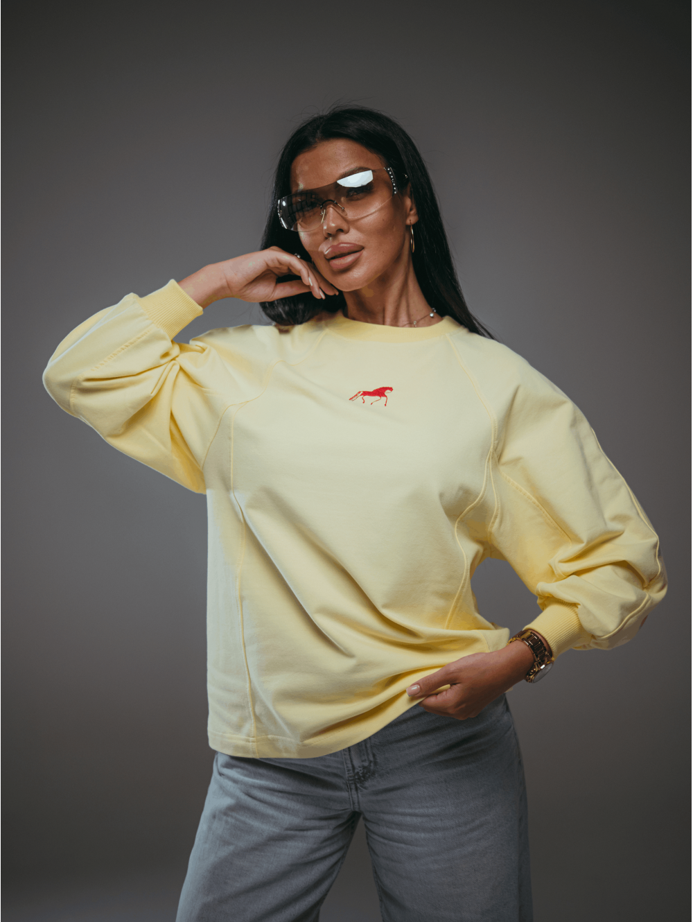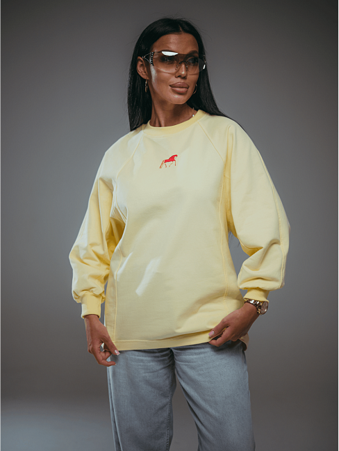 Модный oversize свитшот с рукавом реглан — тренд сезона! Модель выполнена из премиального футера двунитки пенье «Фирча». Это не просто свитшот, это стильный must-have для создания расслабленных образов.
