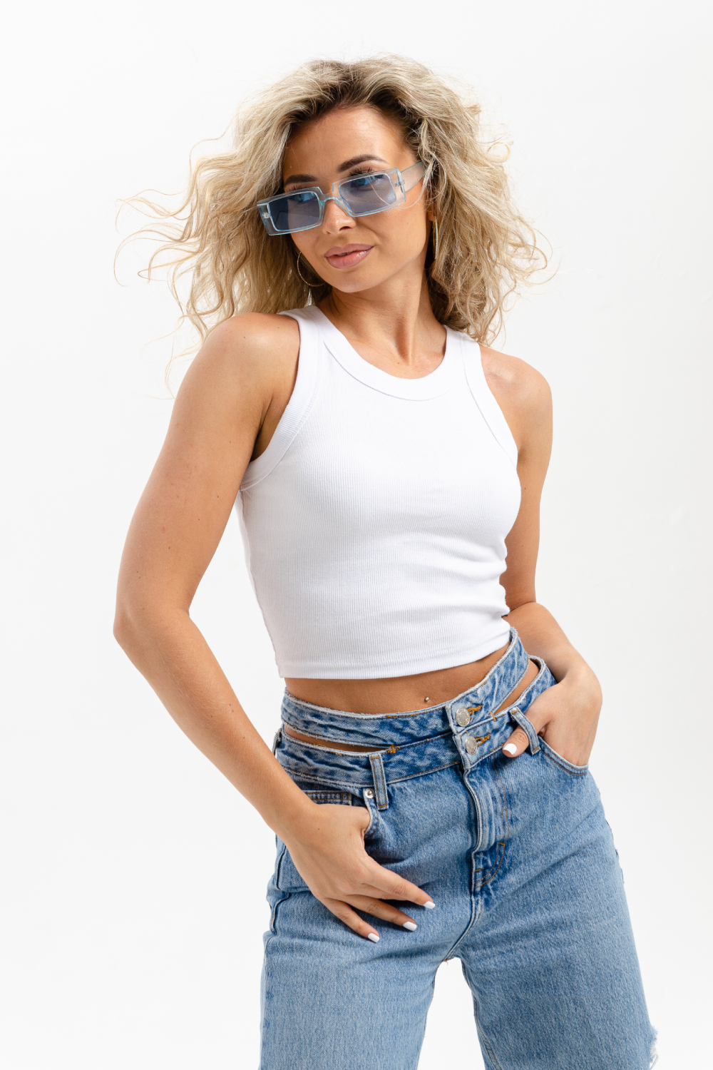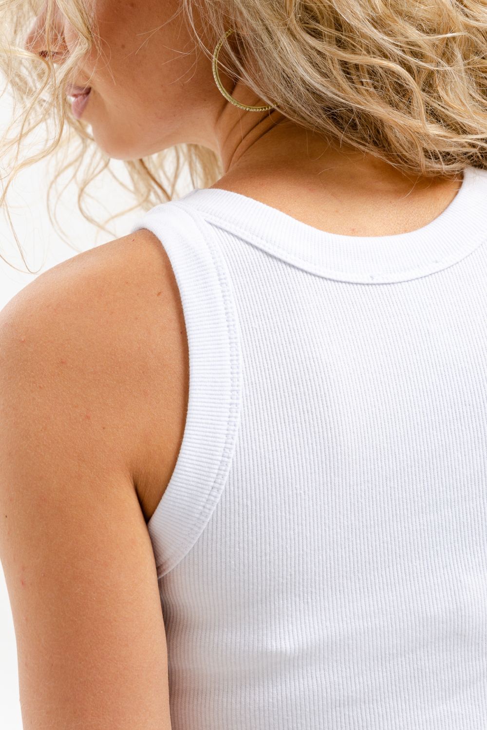 Базовый хлопковый топ укороченной длины. Выполнен из фактурной ткани в рубчик с добавлением лайкры, благодаря этому топ после стирки возвращается в прежнюю форму. Облегающий крой отлично садится по фигуре, подчеркивая её достоинства. Круглая горловина, широкие бретели, не просвечивает, топ максимально комфортный в носке.