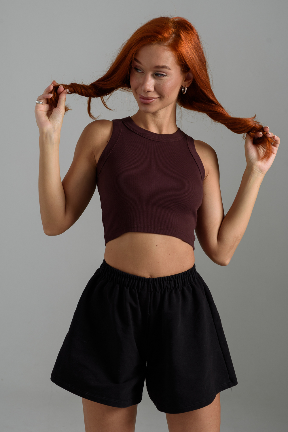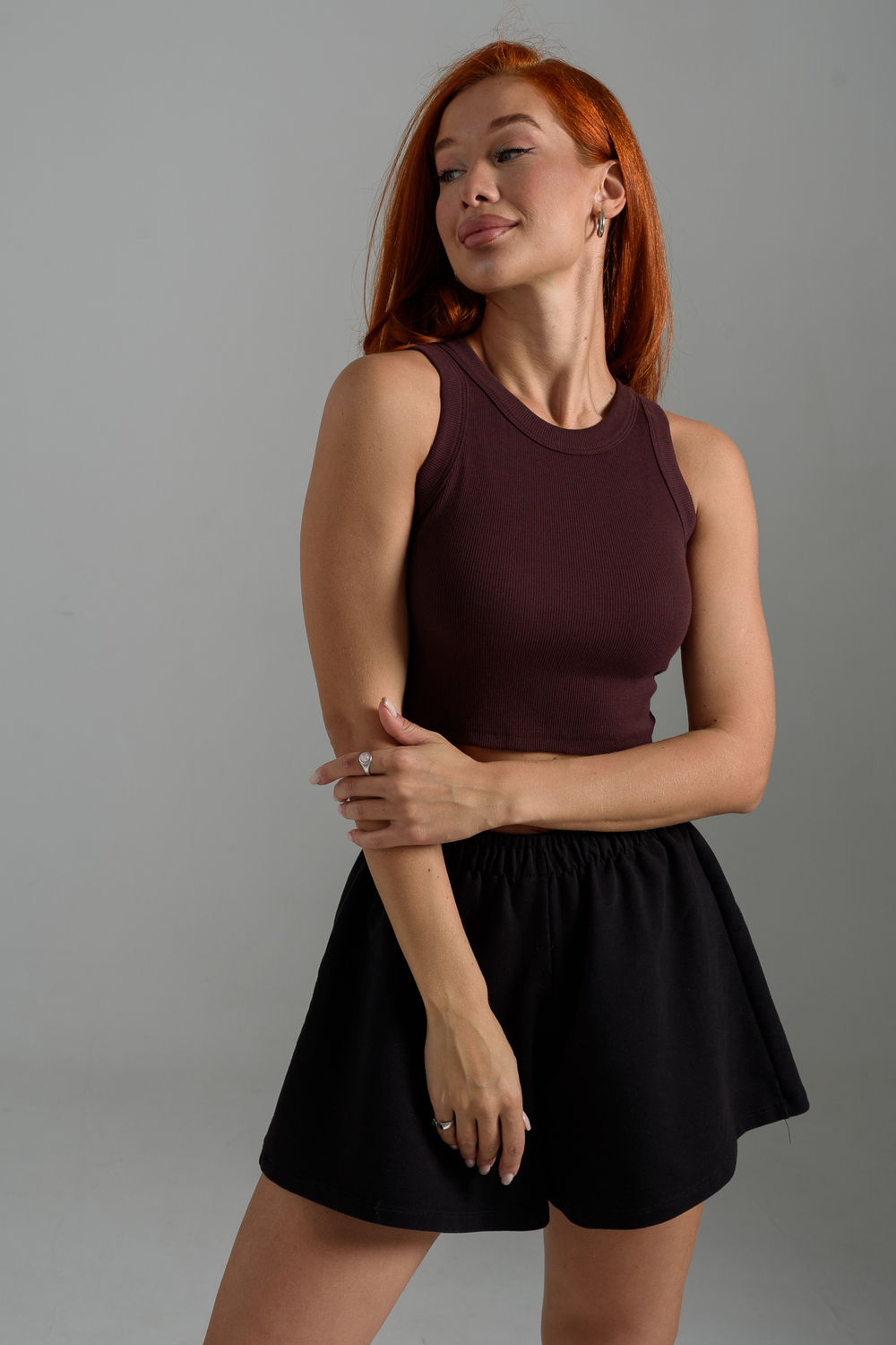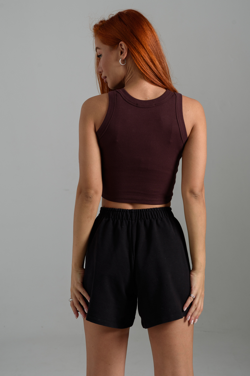 Базовый хлопковый топ укороченной длины. Выполнен из фактурной ткани в рубчик с добавлением лайкры, благодаря этому топ после стирки возвращается в прежнюю форму. Облегающий крой отлично садится по фигуре, подчеркивая её достоинства. Круглая горловина, широкие бретели, не просвечивает, топ максимально комфортный в носке.