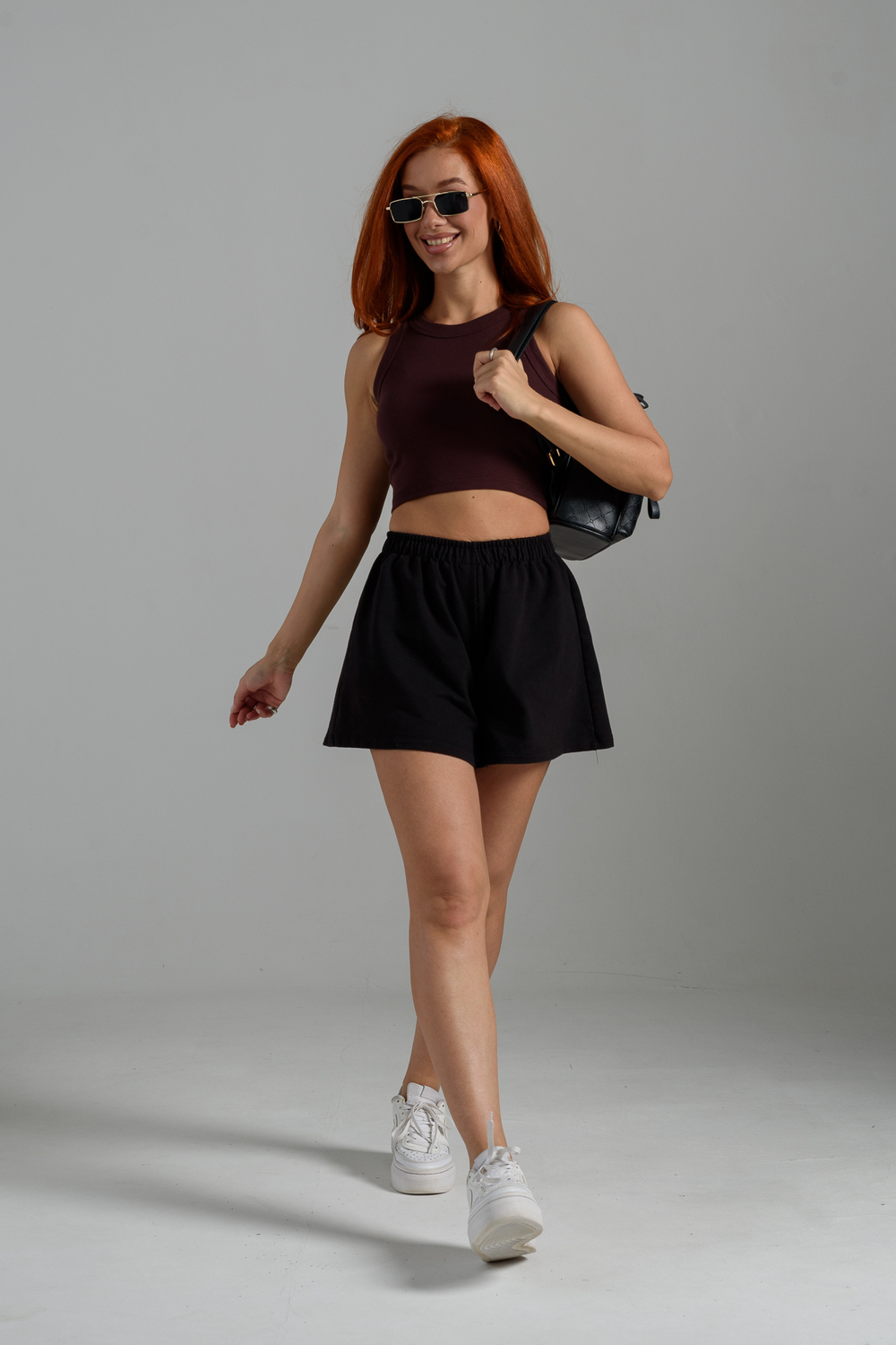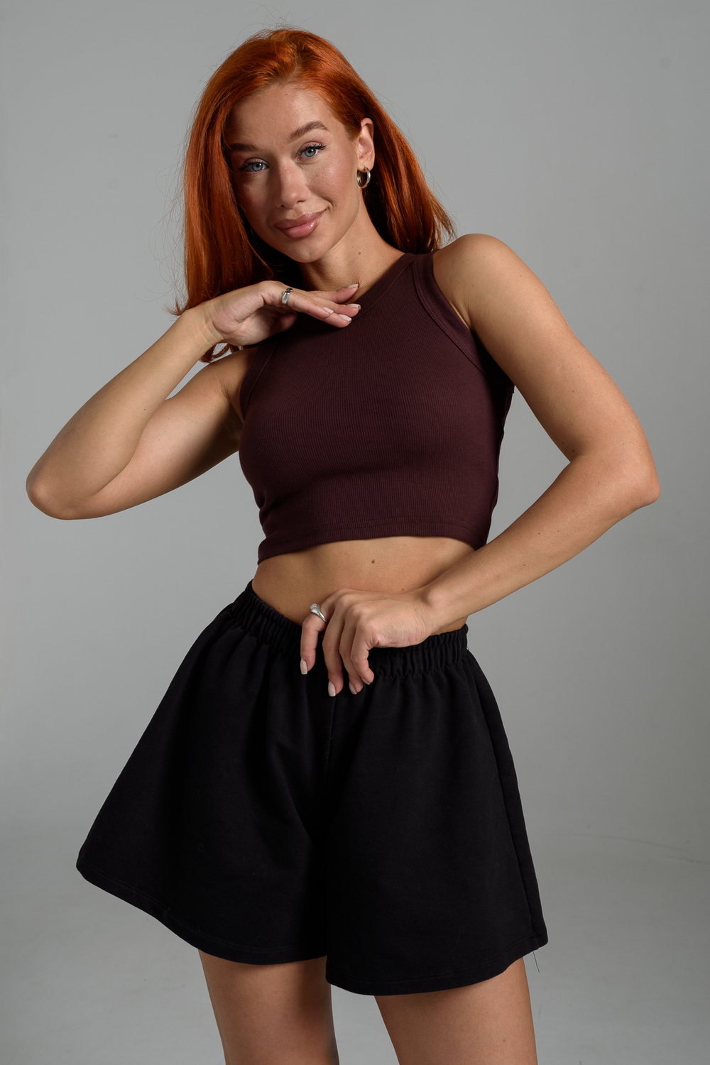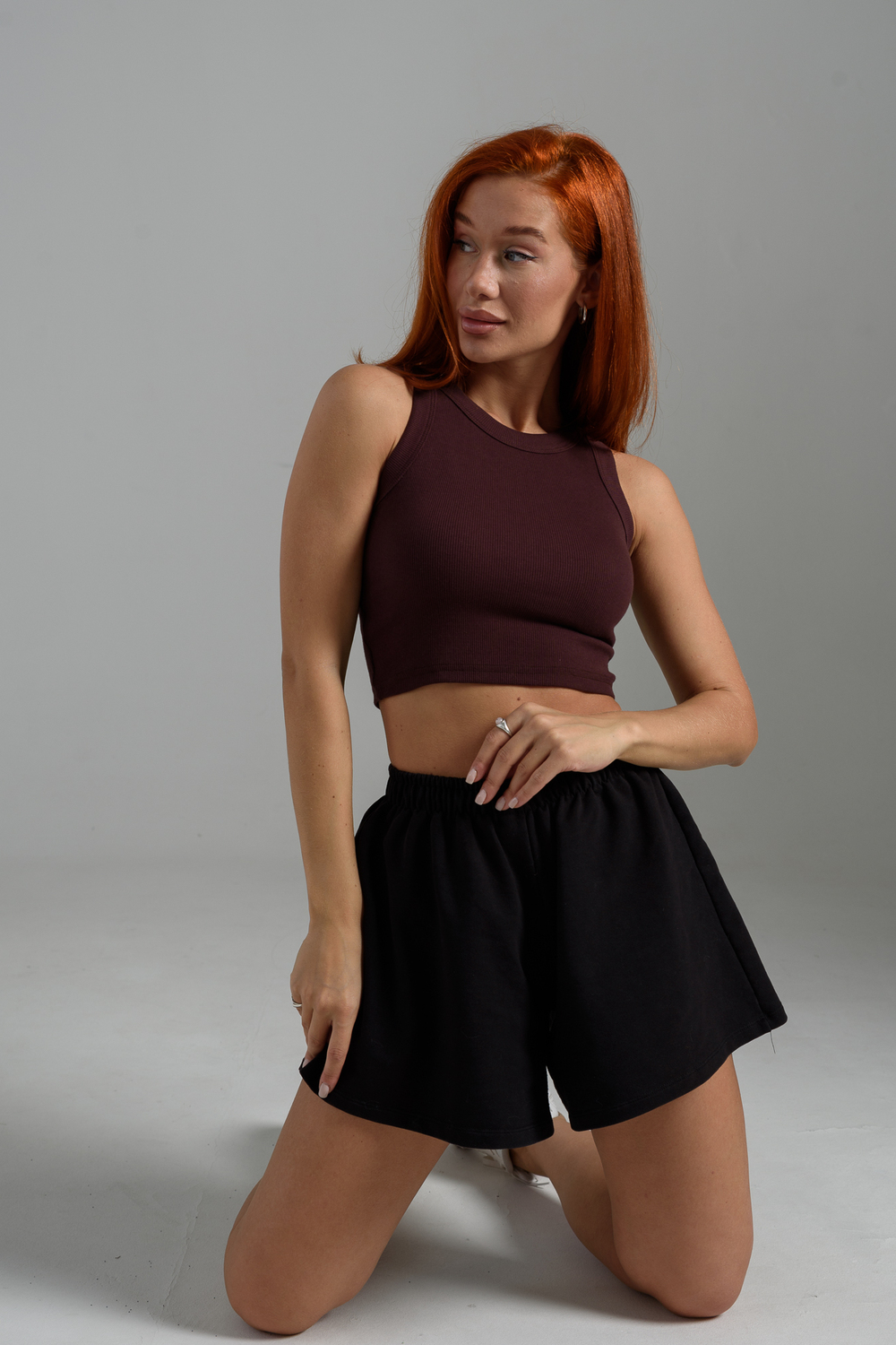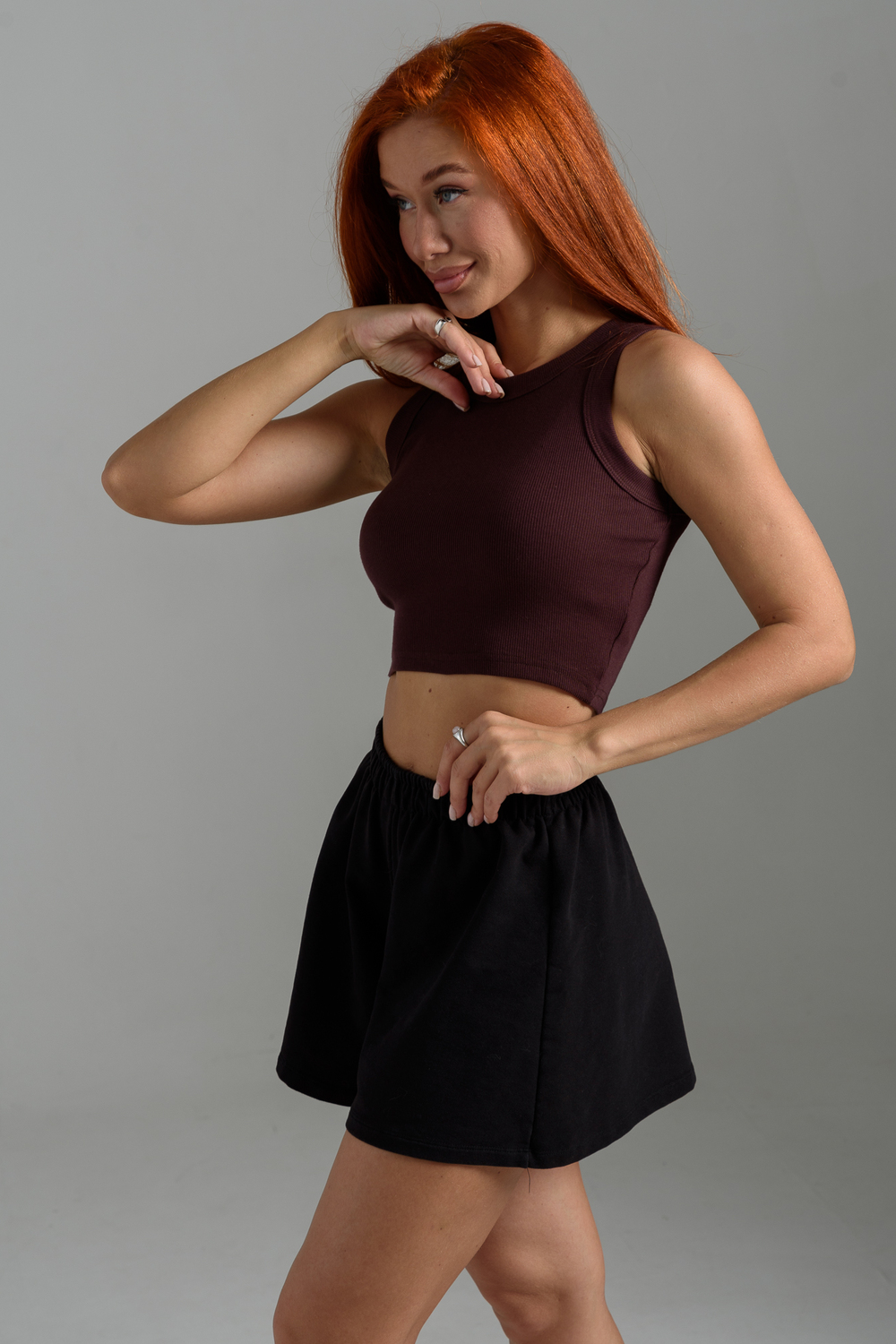 Базовый хлопковый топ укороченной длины. Выполнен из фактурной ткани в рубчик с добавлением лайкры, благодаря этому топ после стирки возвращается в прежнюю форму. Облегающий крой отлично садится по фигуре, подчеркивая её достоинства. Круглая горловина, широкие бретели, не просвечивает, топ максимально комфортный в носке.