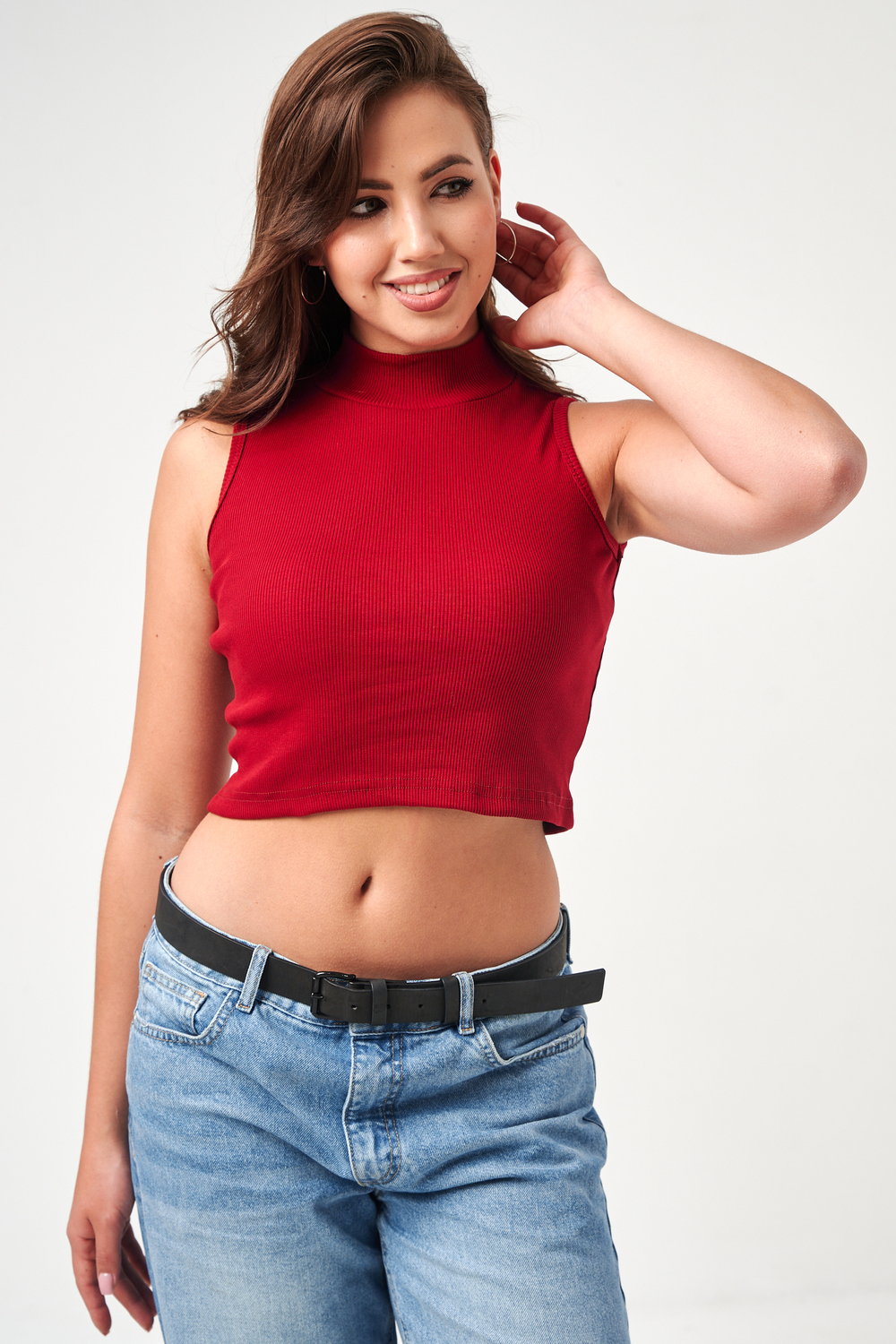 Женский топ 52714 укороченный с горлом / бордовый