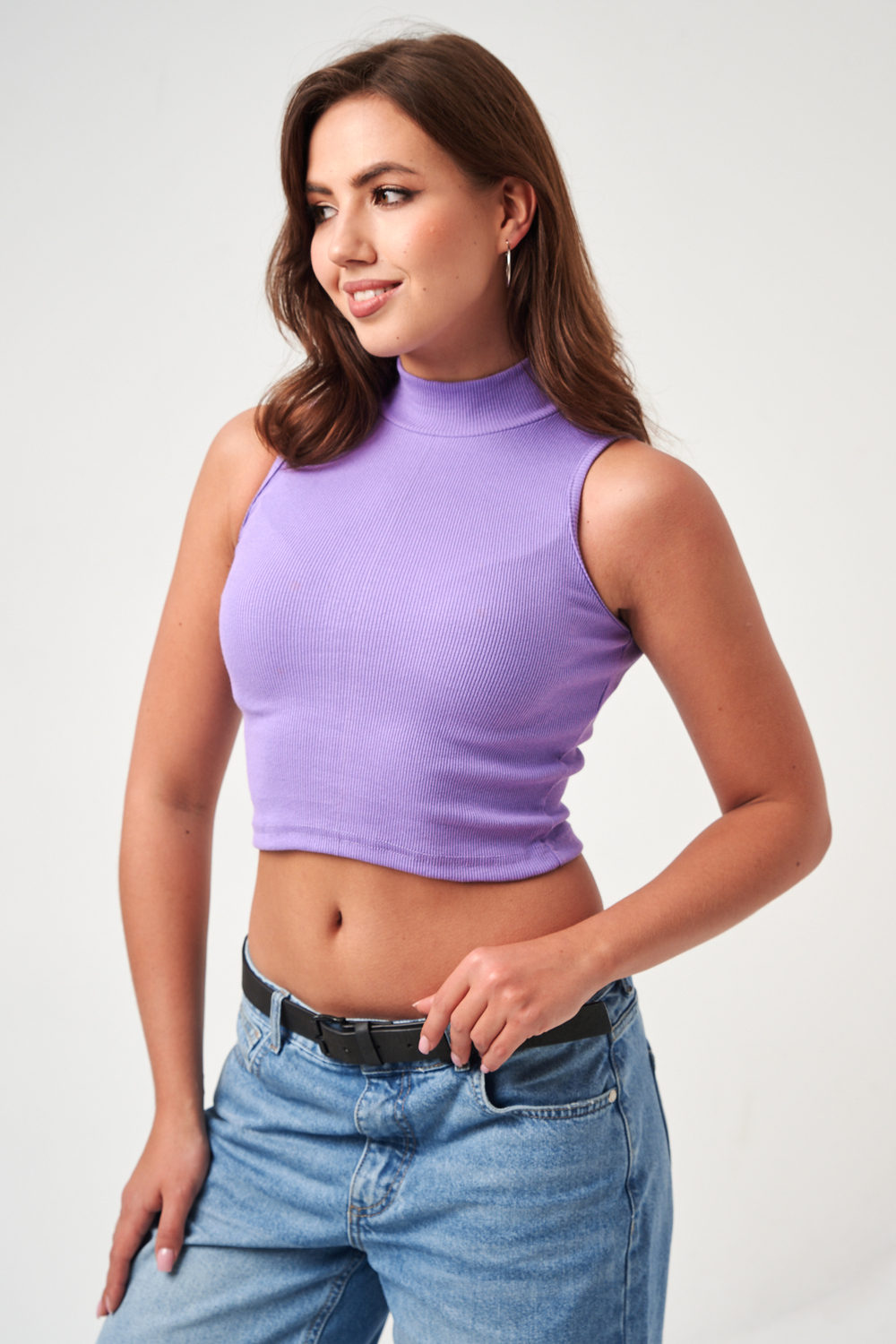 Женский топ 52714 укороченный с горлом / сиреневый