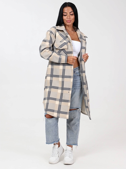 Жакет футер начес длинный ЖФ-1888 / Клетка беж - это стильная и модная вещь, которая станет отличным дополнением к вашему гардеробу. Этот удобный, теплый, уютный женский жакет предназначен для женщин, которые ценят комфорт и стиль в одежде. Модель универсальна – его можно носить как жакет, кофту, толстовку, тунику, удлиненную рубашку или облегченный вариант пальто.