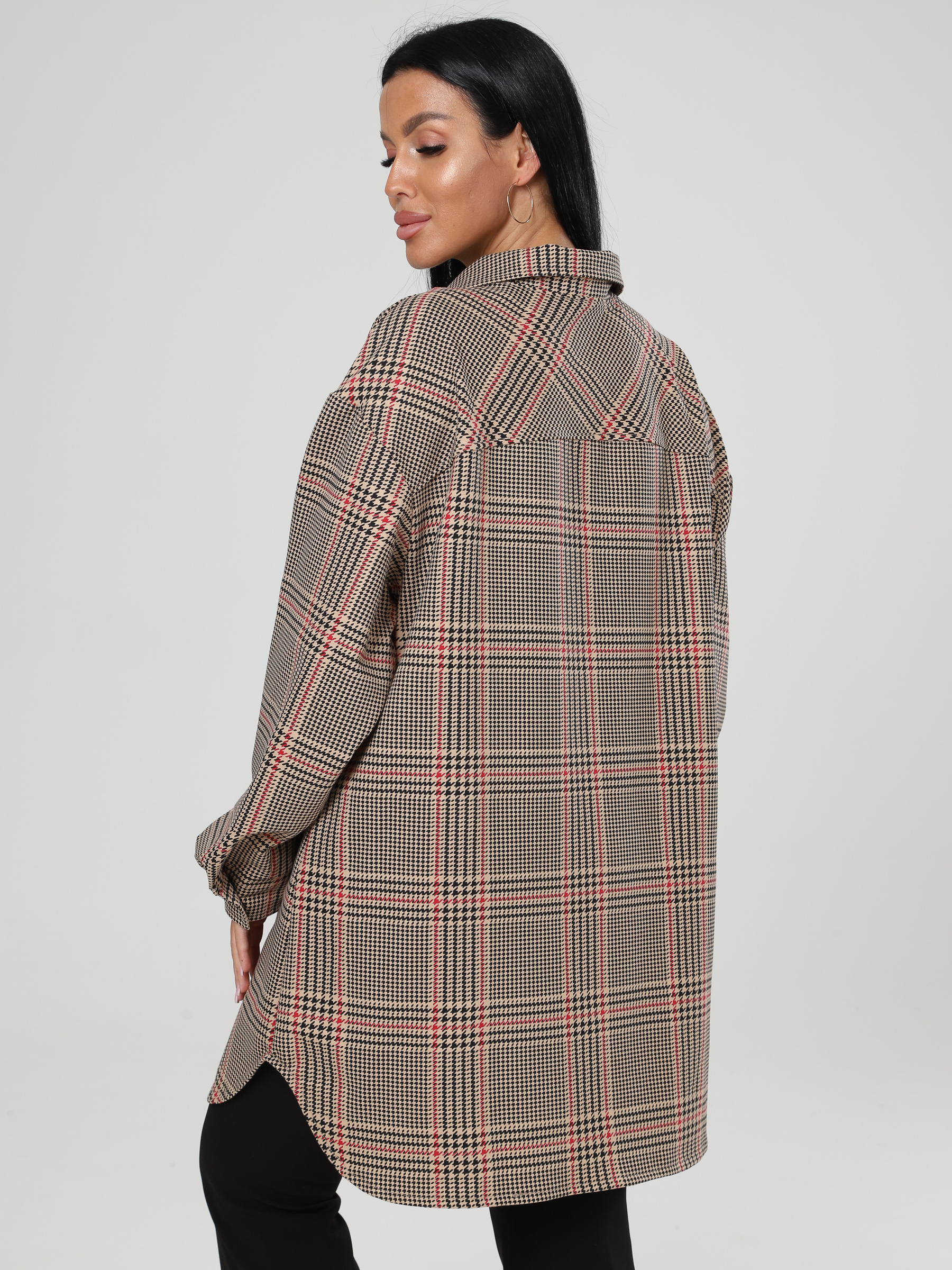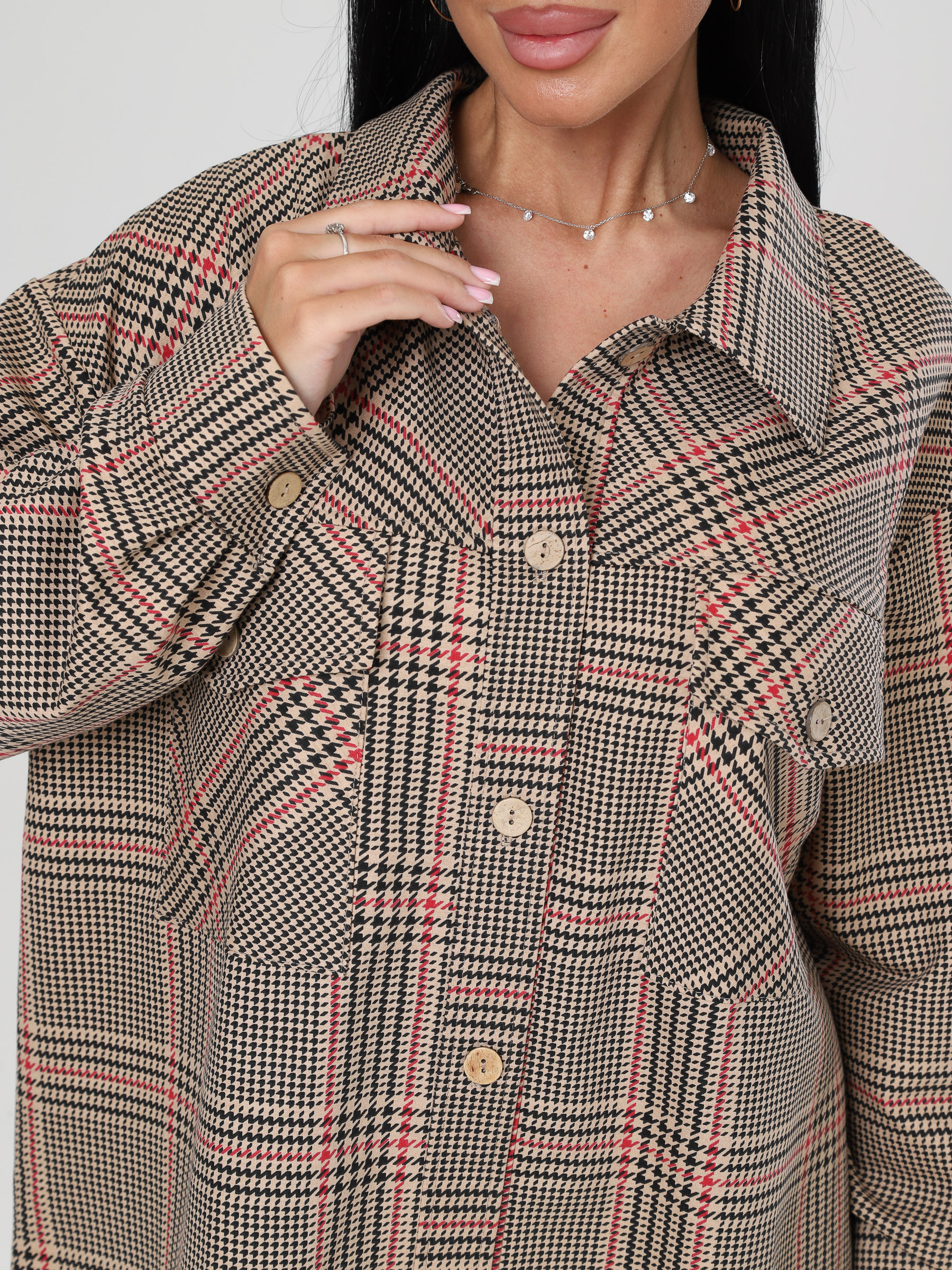 Женский жакет макси ЖФ-53 / Клетка бежевая