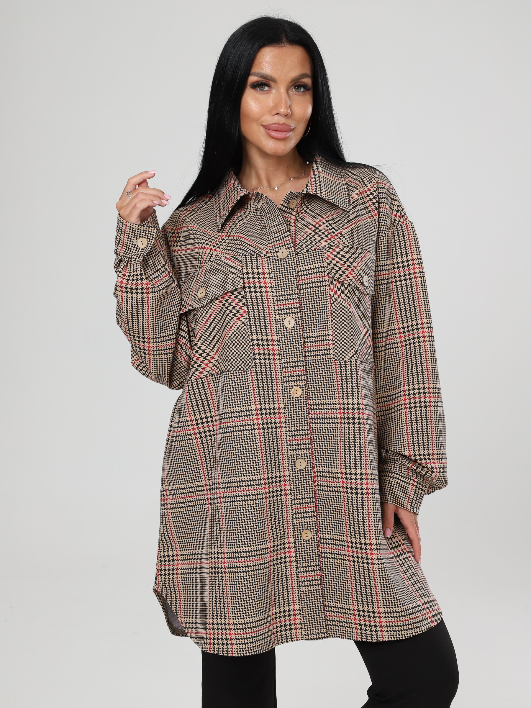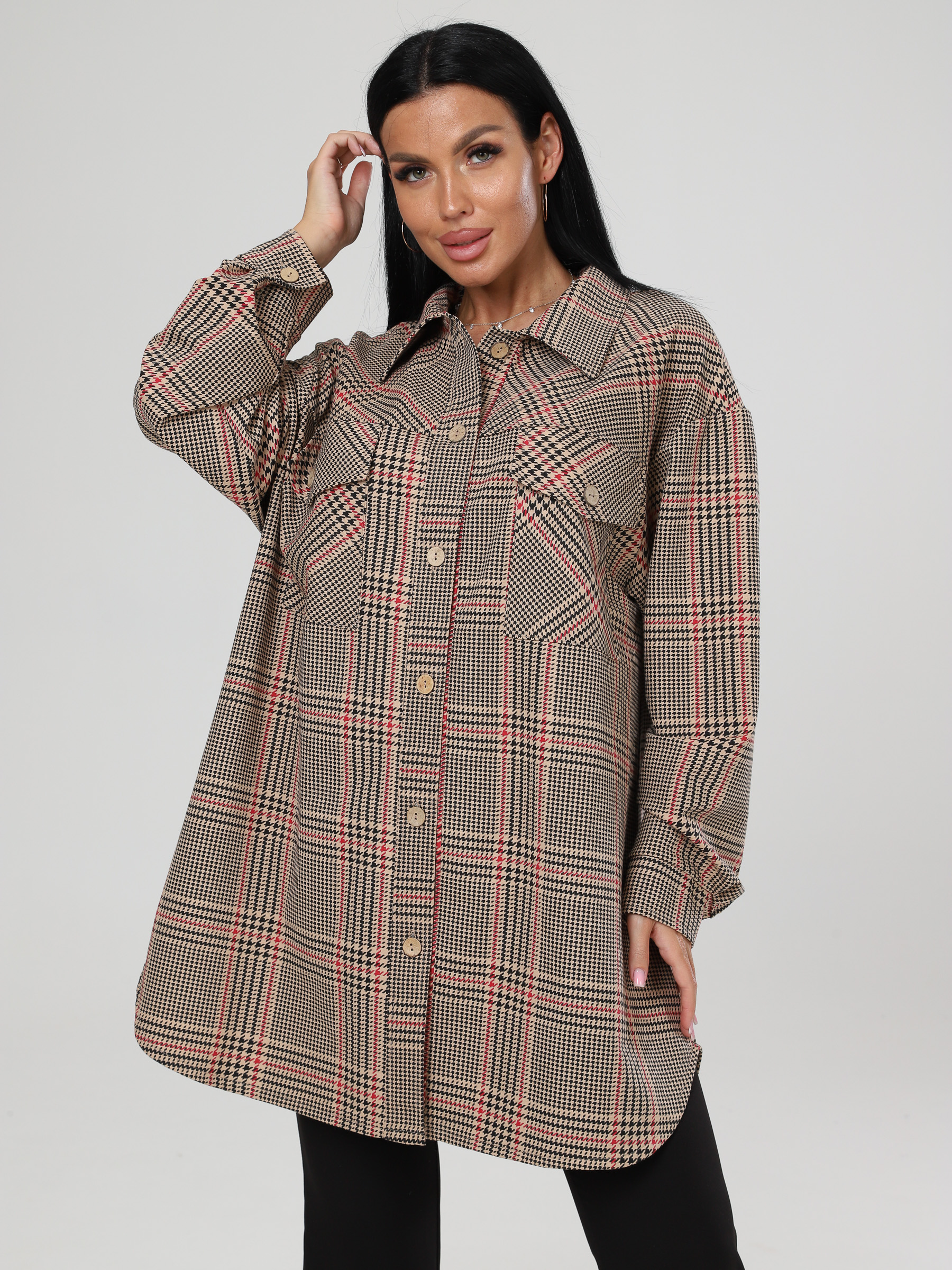 Жакет слегка объёмный, удлинённого силуэта, с отложным воротником. Длинные рукава с заниженной линией плеча, планка и рукава с манжетами на пуговицах, нагрудные карманы с клапанами. Женский жакет на пуговицах можно сочетать с базовым топом или блузой, фактура и плотность ткани позволяет носить жакет как рубашку. Будет актуально смотреться в любое время года. Женский жакет / рубашка сшит из плотного трикотажного полотна - футер. Благодаря свободному оверсайз крою модель сидит хорошо на любом типе фигуры. Удлиненная рубашка / жакет достойная альтернатива легкой куртке, ветровке, джинсовке.