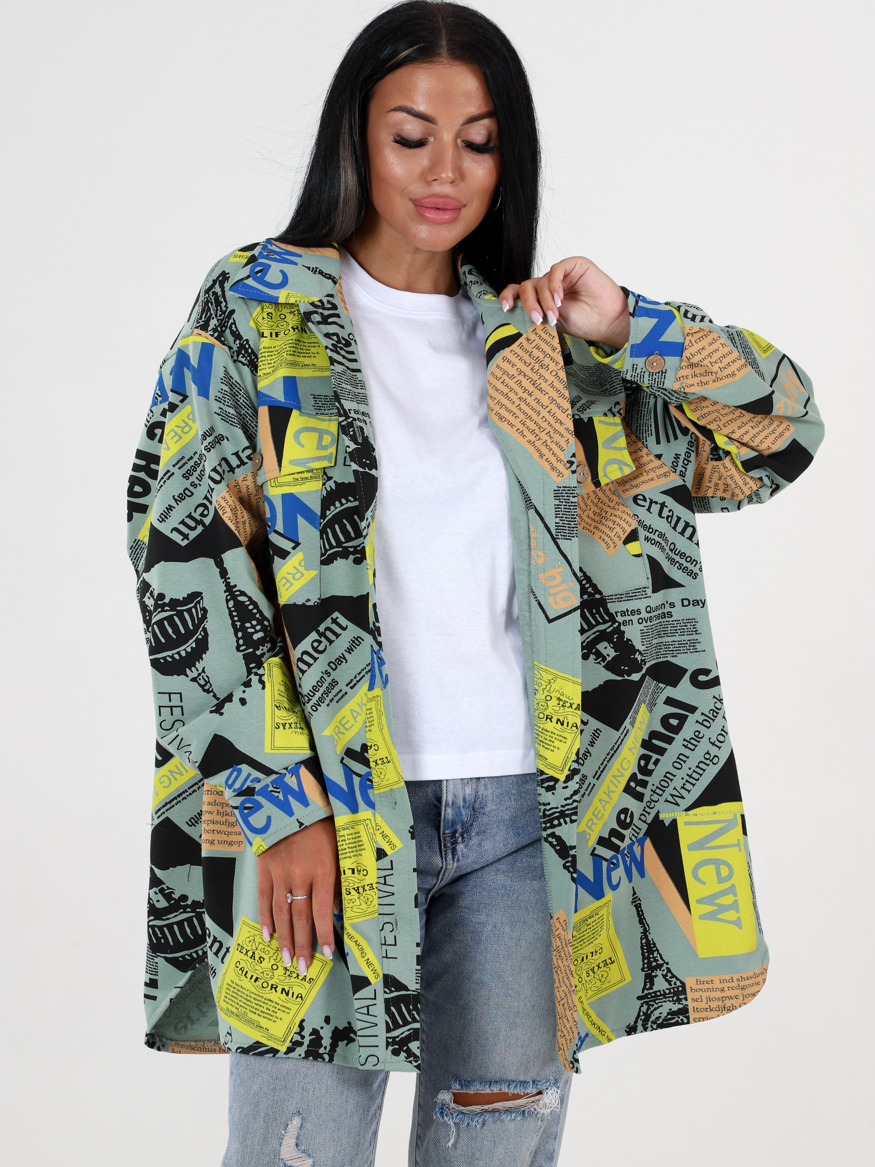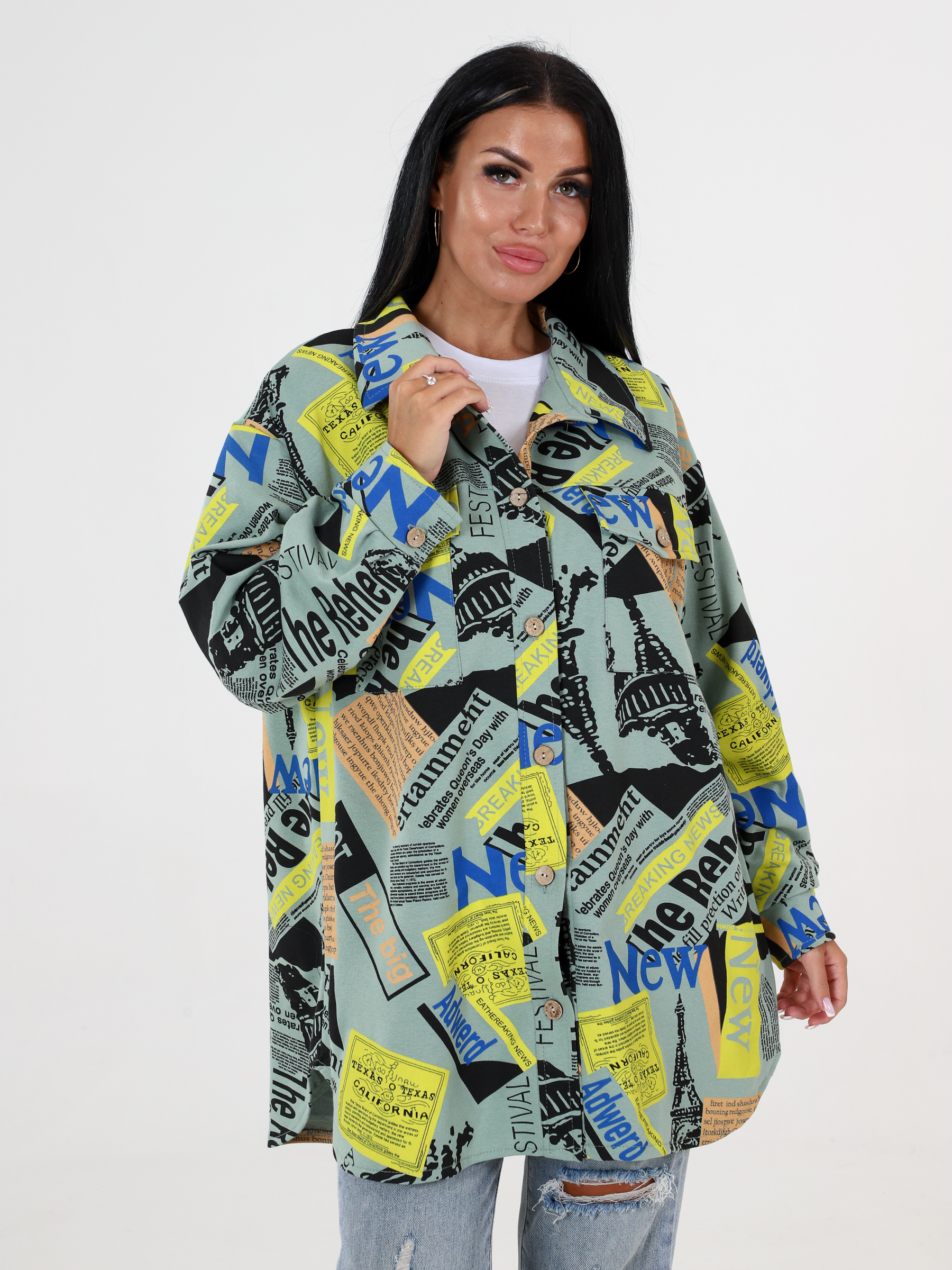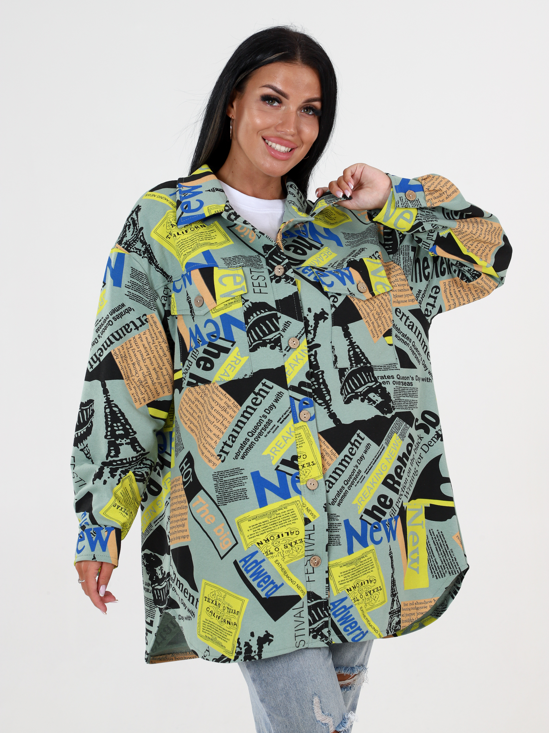 Жакет слегка объёмный, удлинённого силуэта, с отложным воротником. Длинные рукава с заниженной линией плеча, планка и рукава с манжетами на пуговицах, нагрудные карманы с клапанами. Женский жакет на пуговицах можно сочетать с базовым топом или блузой, фактура и плотность ткани позволяет носить жакет как рубашку. Будет актуально смотреться в любое время года. Женский жакет / рубашка сшит из плотного трикотажного полотна - футер. Благодаря свободному оверсайз крою модель сидит хорошо на любом типе фигуры. Удлиненная рубашка / жакет достойная альтернатива легкой куртке, ветровке, джинсовке.
