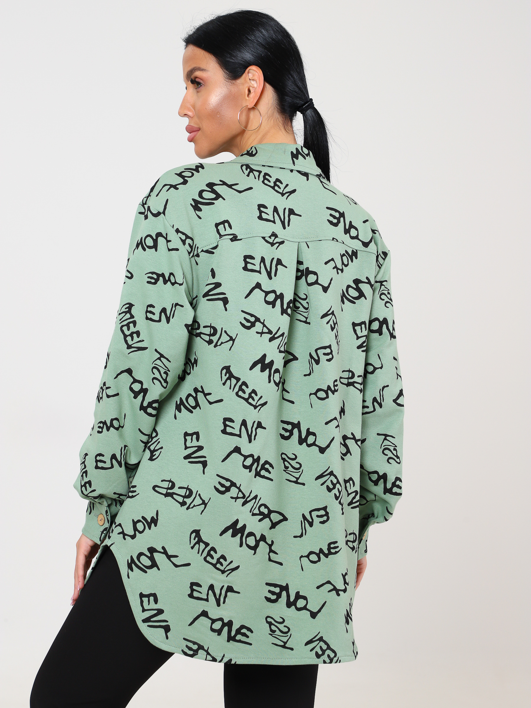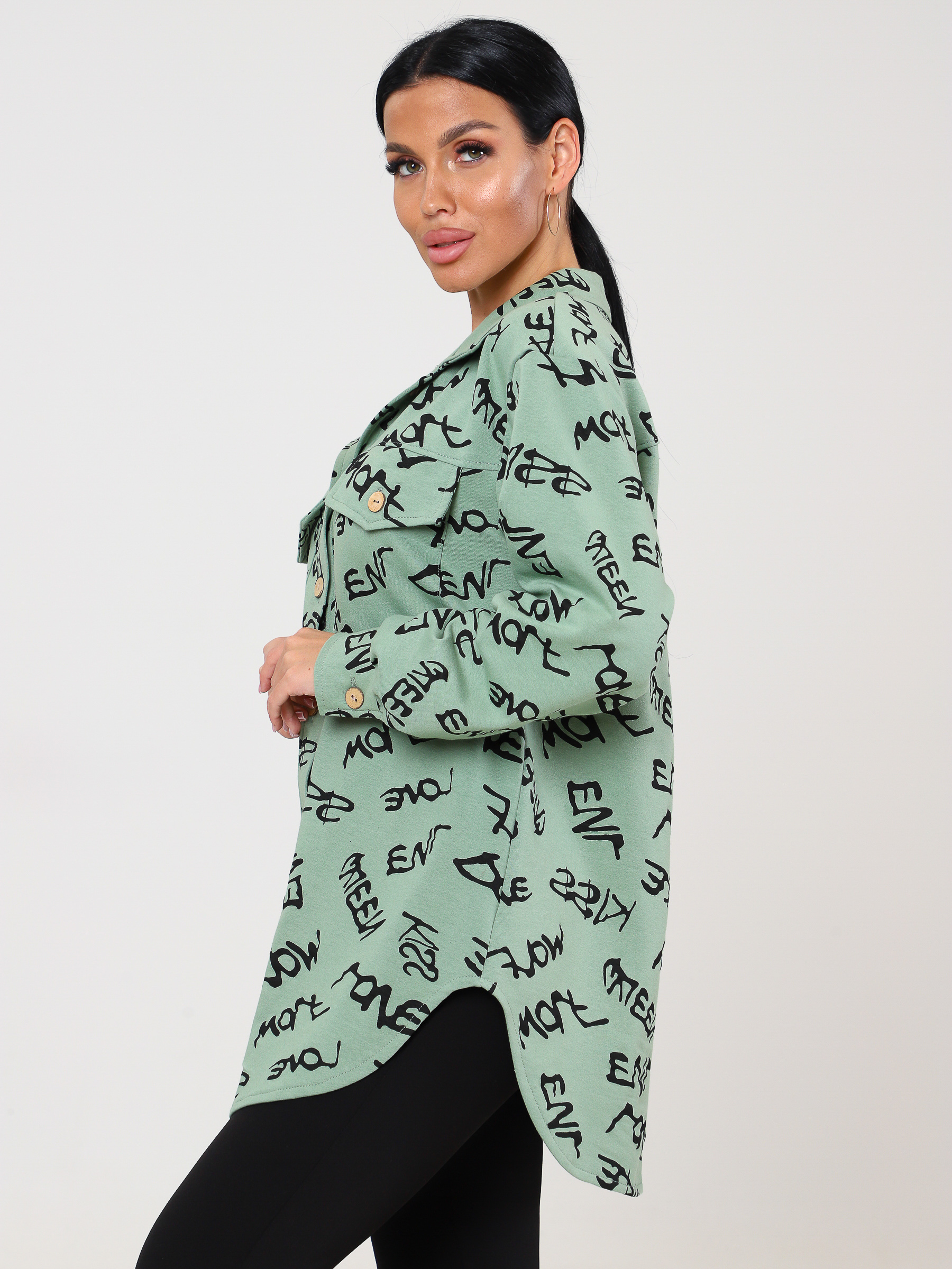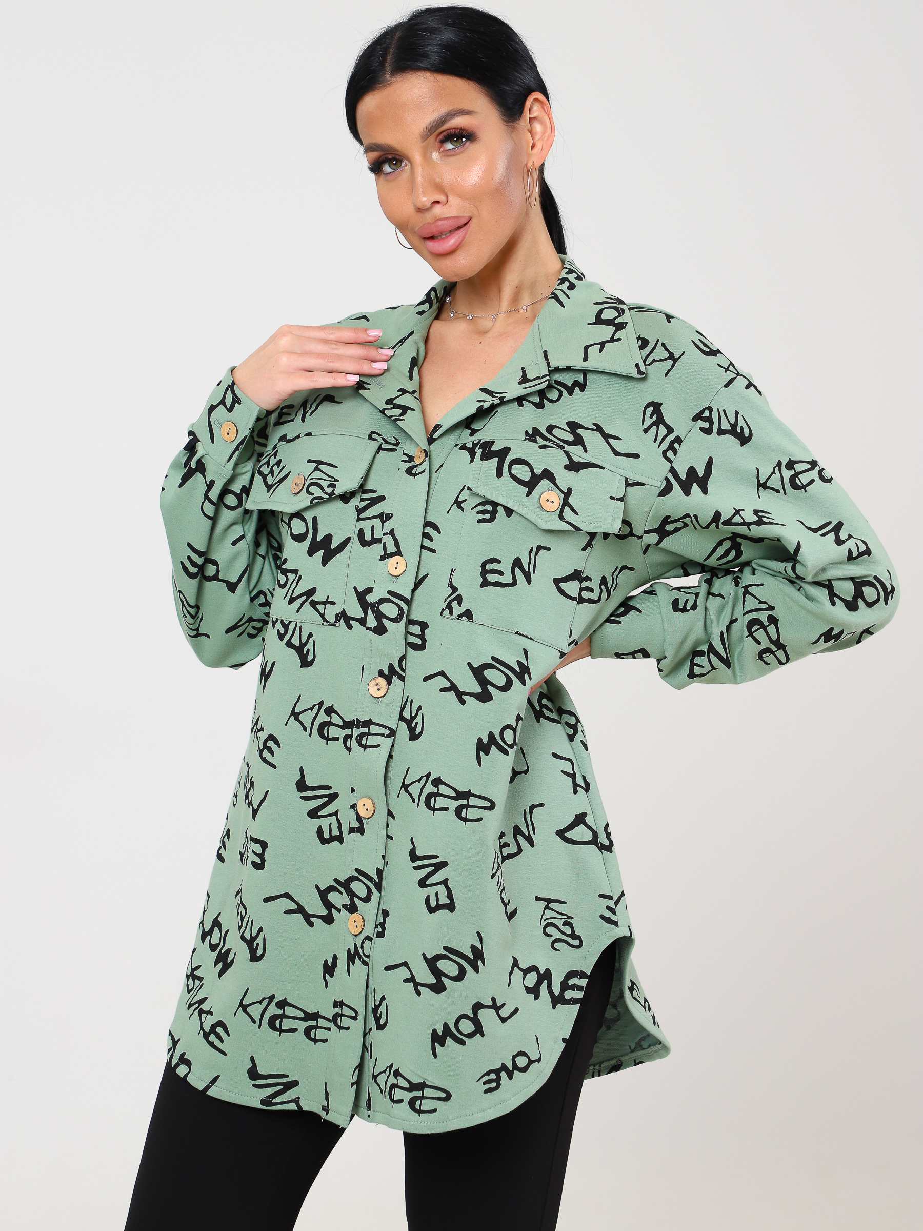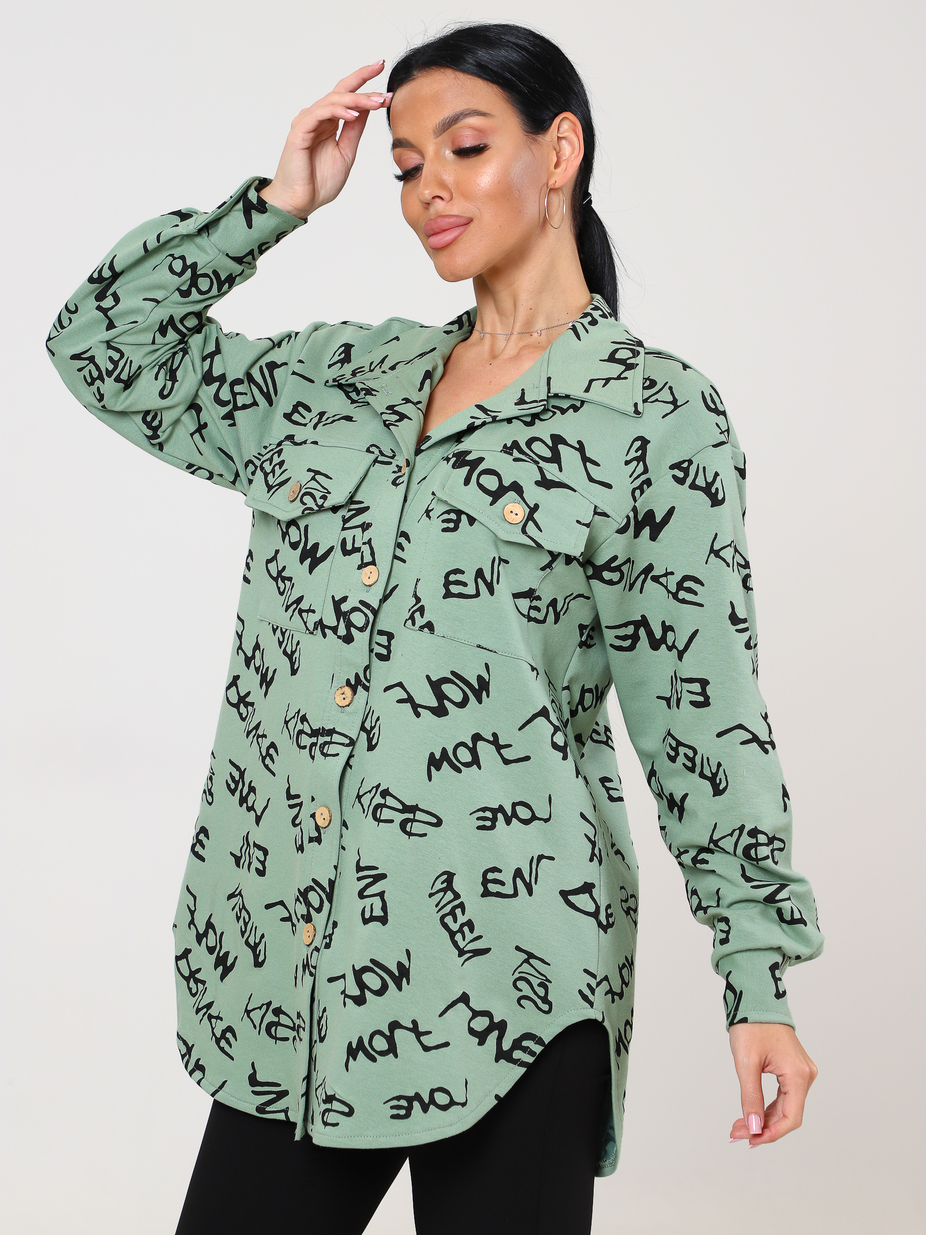 Жакет слегка объёмный, удлинённого силуэта, с отложным воротником. Длинные рукава с заниженной линией плеча, планка и рукава с манжетами на пуговицах, нагрудные карманы с клапанами. Женский жакет на пуговицах можно сочетать с базовым топом или блузой, фактура и плотность ткани позволяет носить жакет как рубашку. Будет актуально смотреться в любое время года. Женский жакет / рубашка сшит из плотного трикотажного полотна - футер. Благодаря свободному oversize крою модель сидит хорошо на любом типе фигуры. Удлиненная рубашка / жакет достойная альтернатива легкой куртке, ветровке, джинсовке.
