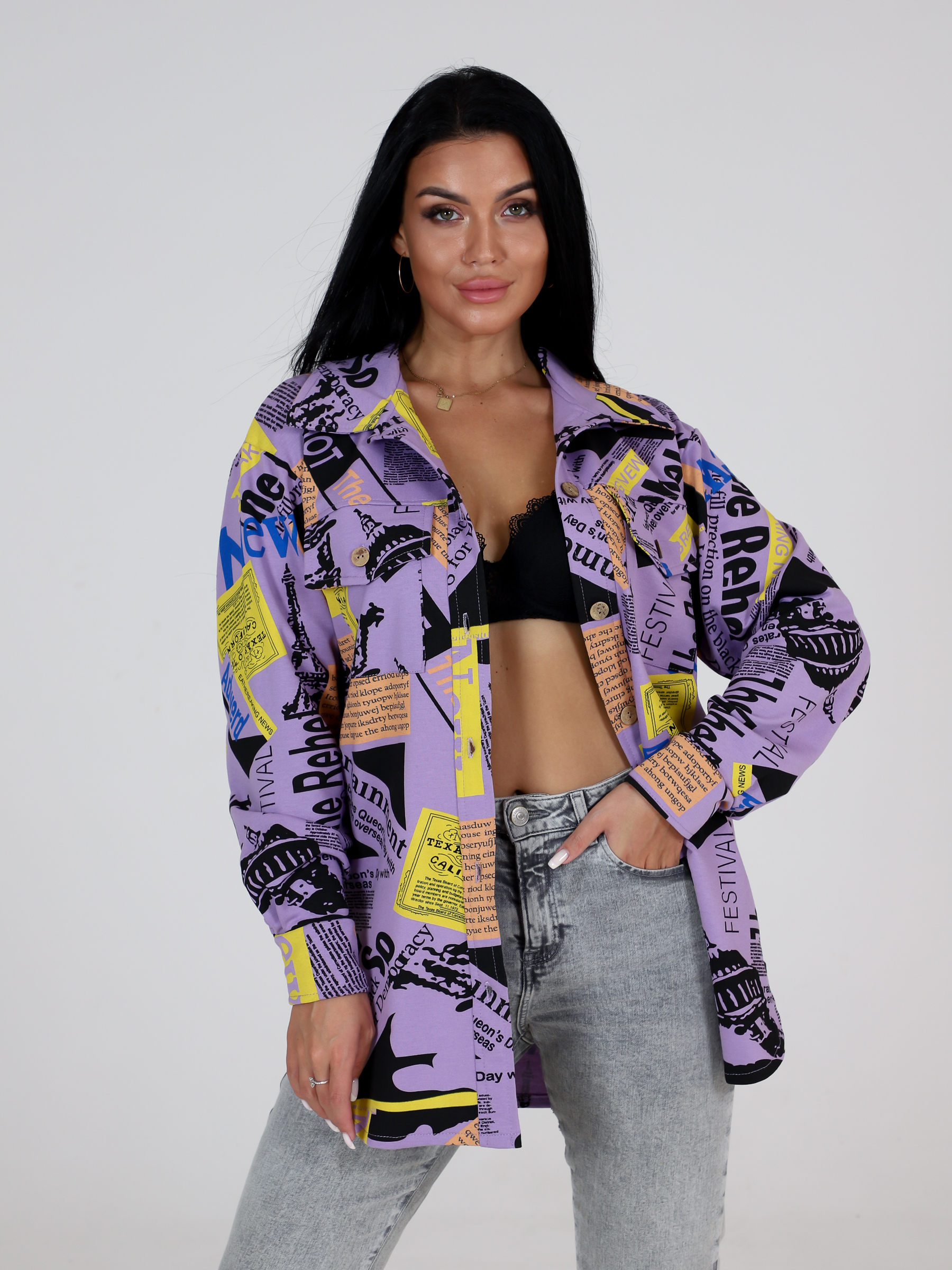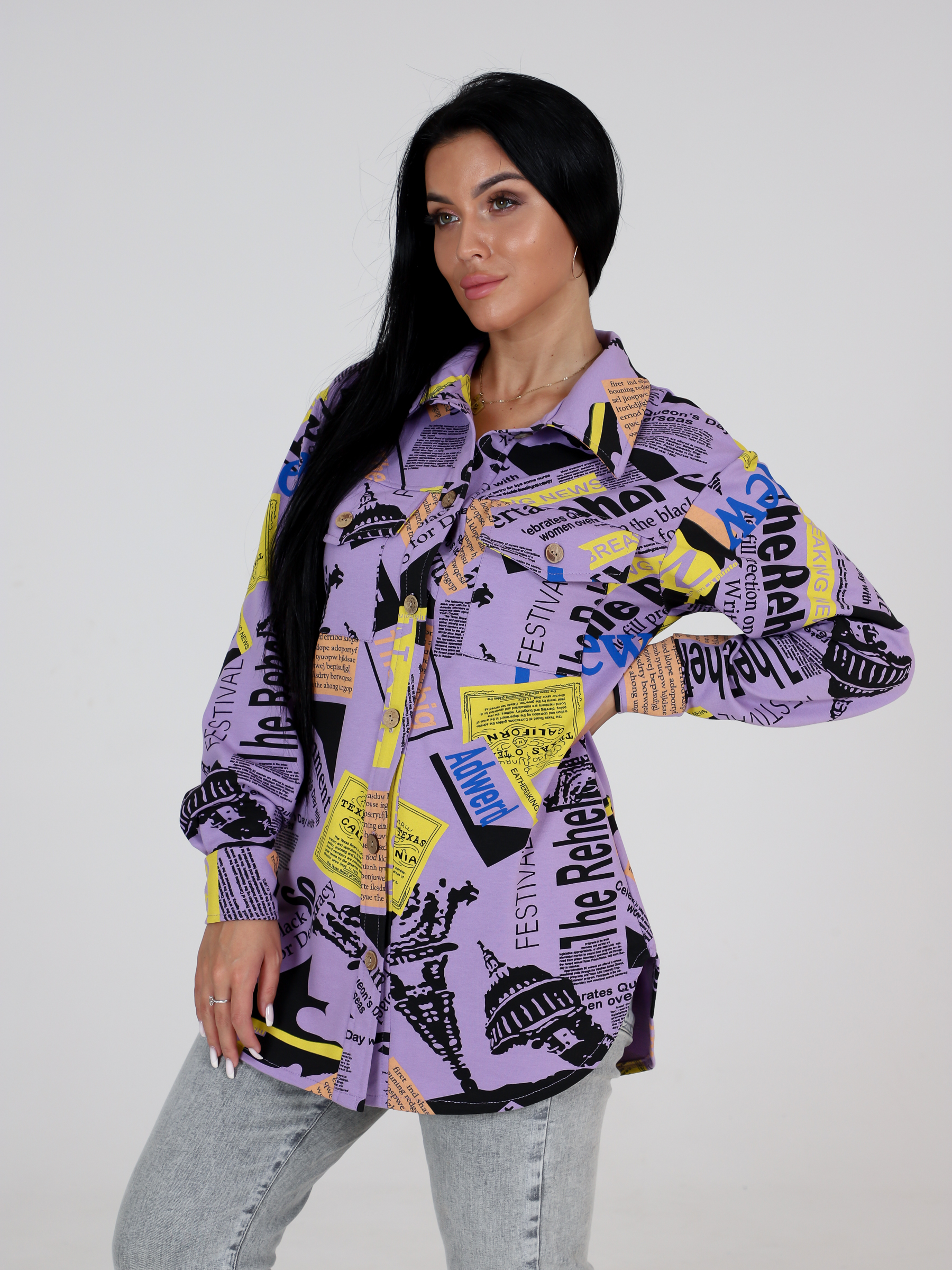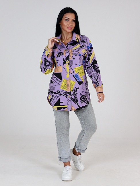 Жакет слегка объёмный, удлинённого силуэта, с отложным воротником. Длинные рукава с заниженной линией плеча, планка и рукава с манжетами на пуговицах, нагрудные карманы с клапанами. Женский жакет на пуговицах можно сочетать с базовым топом или блузой, фактура и плотность ткани позволяет носить жакет как рубашку. Будет актуально смотреться в любое время года. Женский жакет / рубашка сшит из плотного трикотажного полотна - футер. Благодаря свободному oversize крою модель сидит хорошо на любом типе фигуры. Удлиненная рубашка / жакет достойная альтернатива легкой куртке, ветровке, джинсовке.