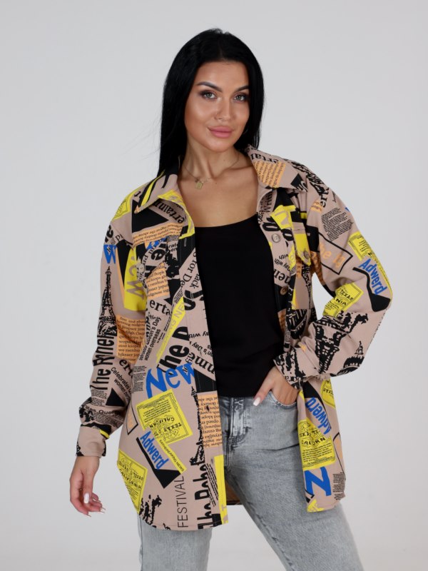 Жакет слегка объёмный, удлинённого силуэта, с отложным воротником. Длинные рукава с заниженной линией плеча, планка и рукава с манжетами на пуговицах, нагрудные карманы с клапанами. Женский жакет на пуговицах можно сочетать с базовым топом или блузой, фактура и плотность ткани позволяет носить жакет как рубашку. Будет актуально смотреться в любое время года. Женский жакет / рубашка сшит из плотного трикотажного полотна - футер. Благодаря свободному oversize крою модель сидит хорошо на любом типе фигуры. Удлиненная рубашка / жакет достойная альтернатива легкой куртке, ветровке, джинсовке.