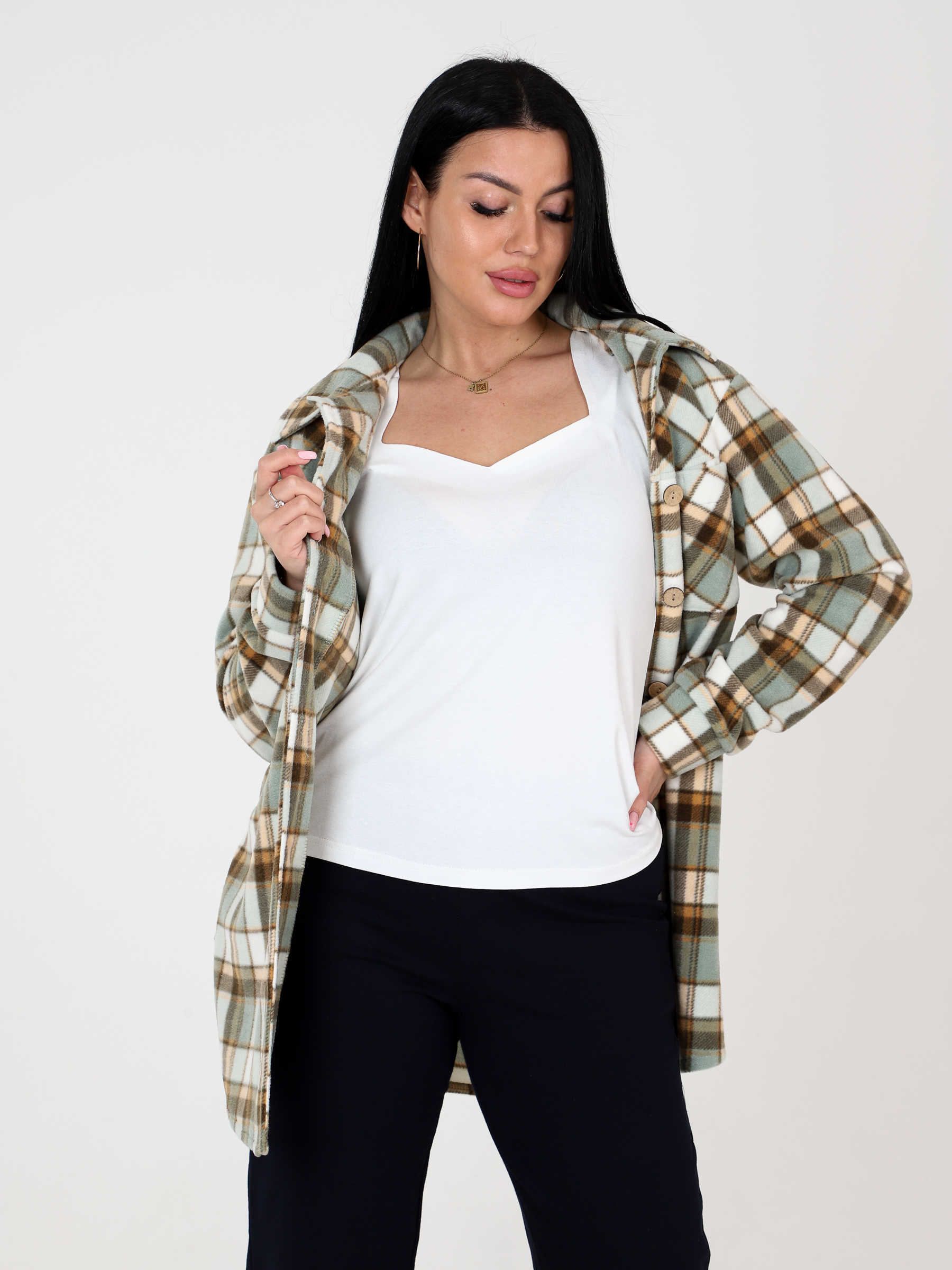 Жакет / рубашка женская оверсайз теплая в клетку идеальна по посадке, изготовлена из мягкого, теплого флиса. Согреет в прохладную погоду. Жакет / рубашка женская из флиса теплая с длинным рукавом сочетается с любой одеждой. Подходит для любого возраста, даже подростков. Повседневная, в офис, на каждый день, на работу, в подарок. Можно дополнить образ такими вещами как футболка женская, майка, топ, сочетается с джинсами, брюками.