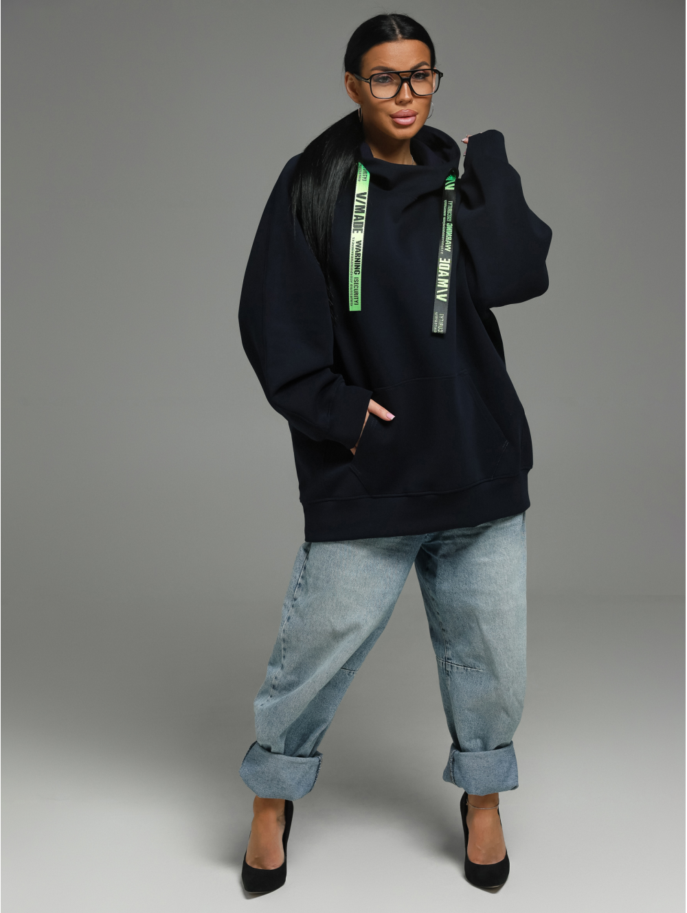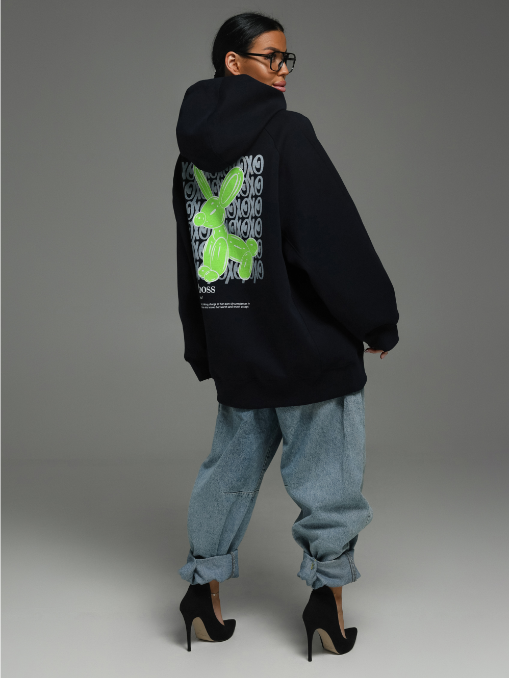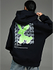 Худи Камелия – oversize кроя с капюшоном, с притачным поясом по низу, с длинным рукавом реглан на манжете. Полочка с накладным карманом с двумя наклонными входами, на спинке печать.
