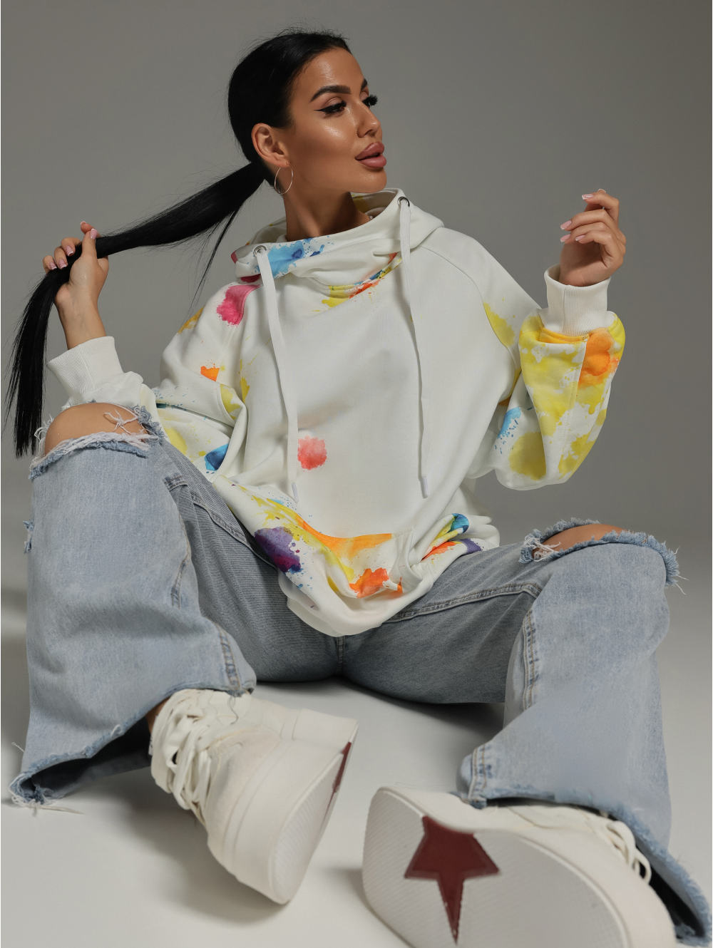 Худи Ваниль – oversize кроя с притачным поясом по низу, с длинным рукавом реглан на манжете.