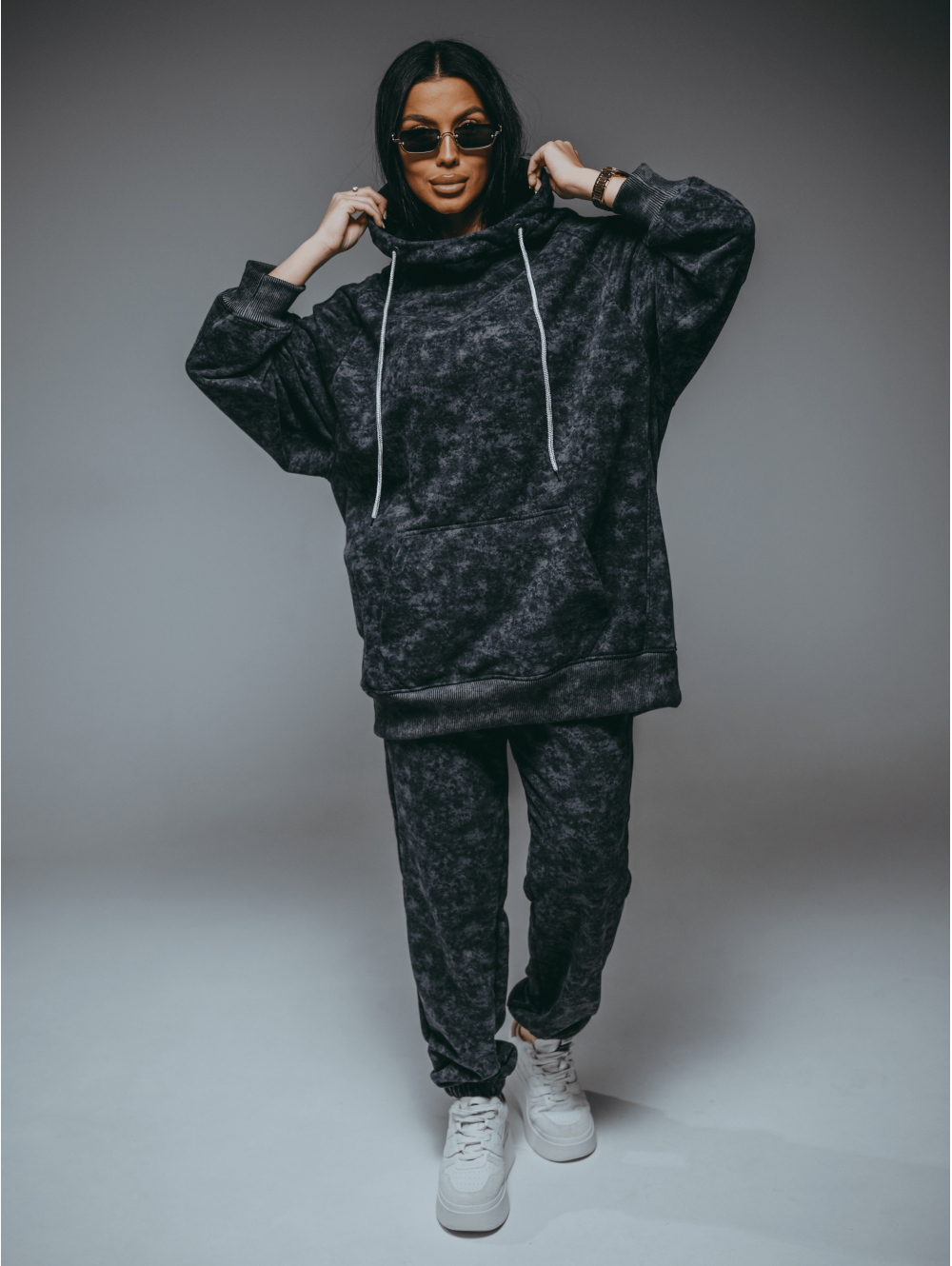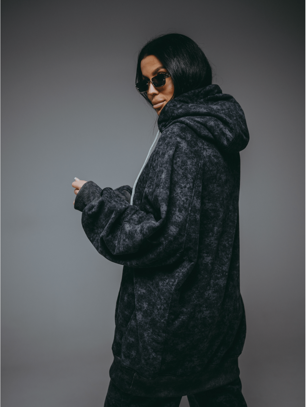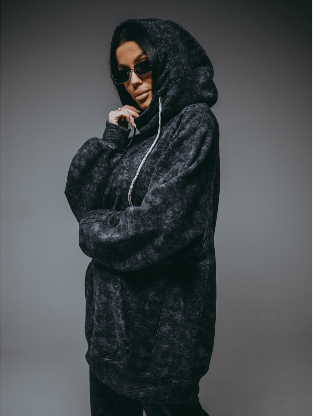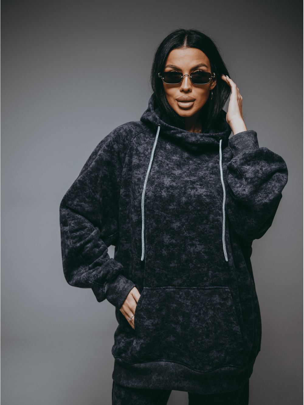 Худи Ваниль – oversize кроя с притачным поясом по низу, с длинным рукавом реглан на манжете.