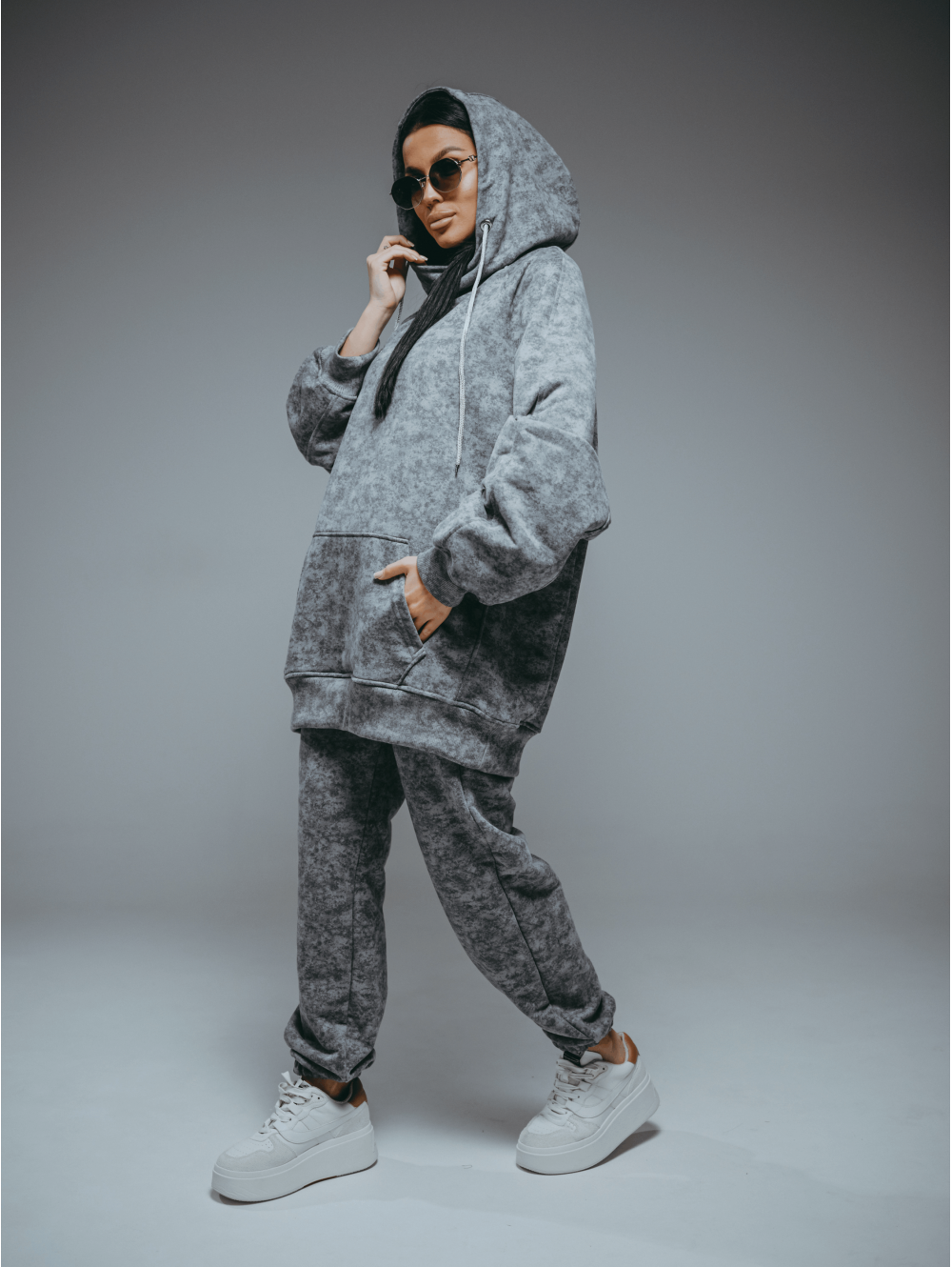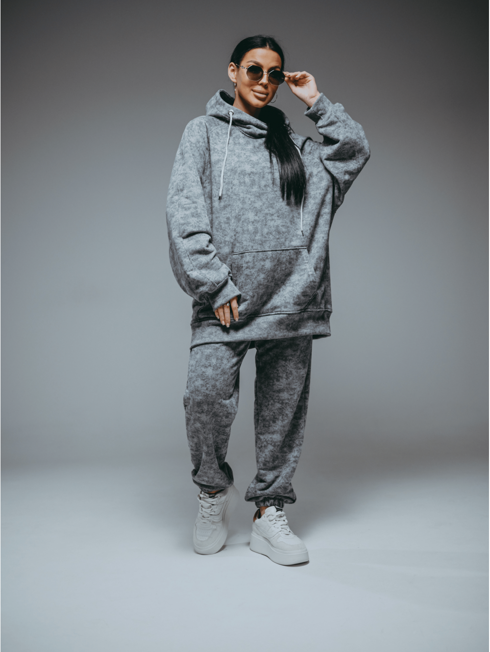 Женское худи Ваниль / Светло-серый варенка