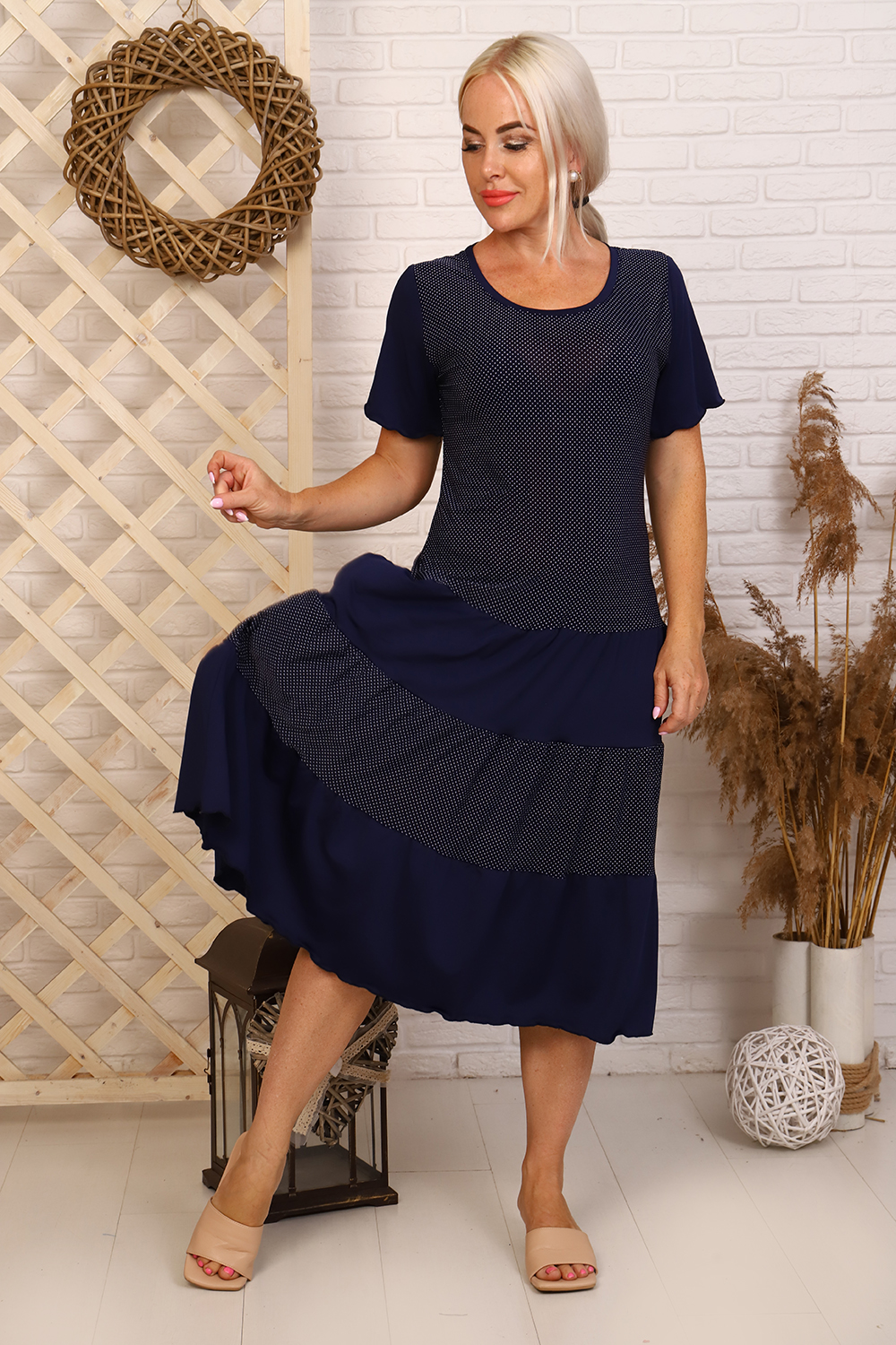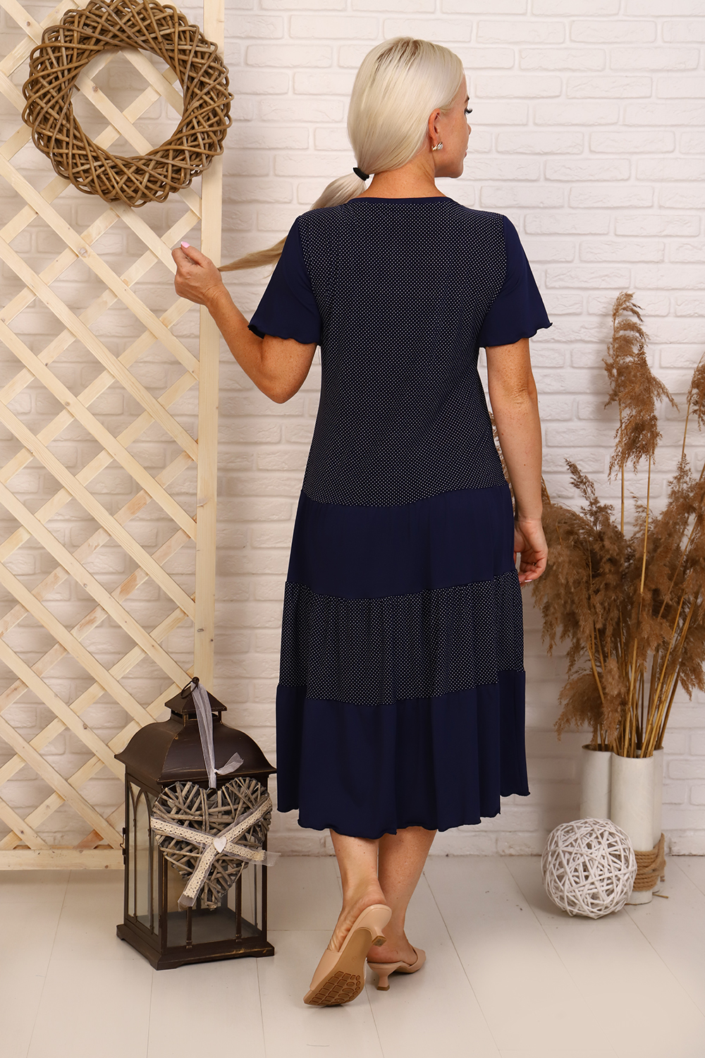 Повседневное платье с оборками, коротенький рукав, округлый вырез - отделан кантиком. Длина ниже колен.