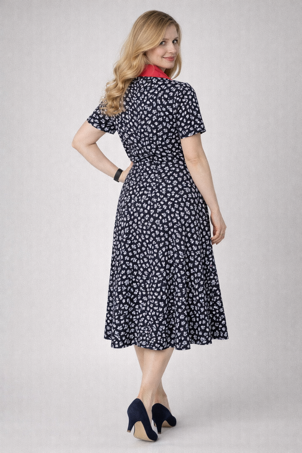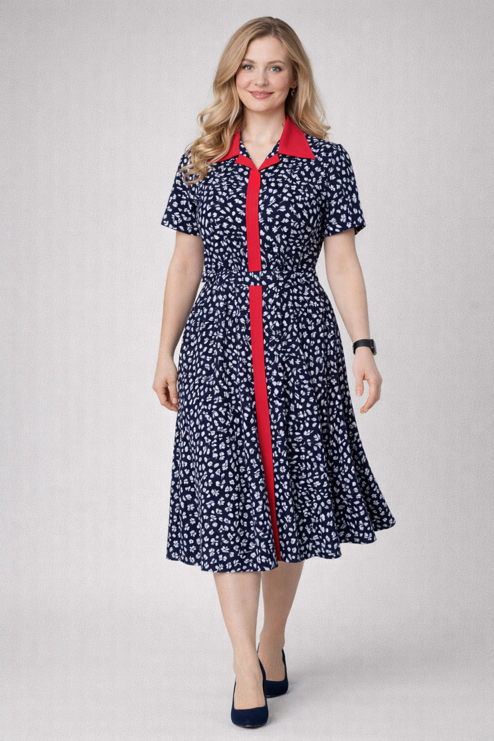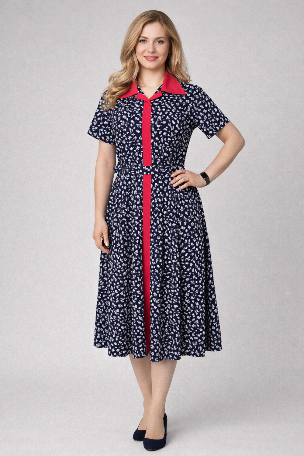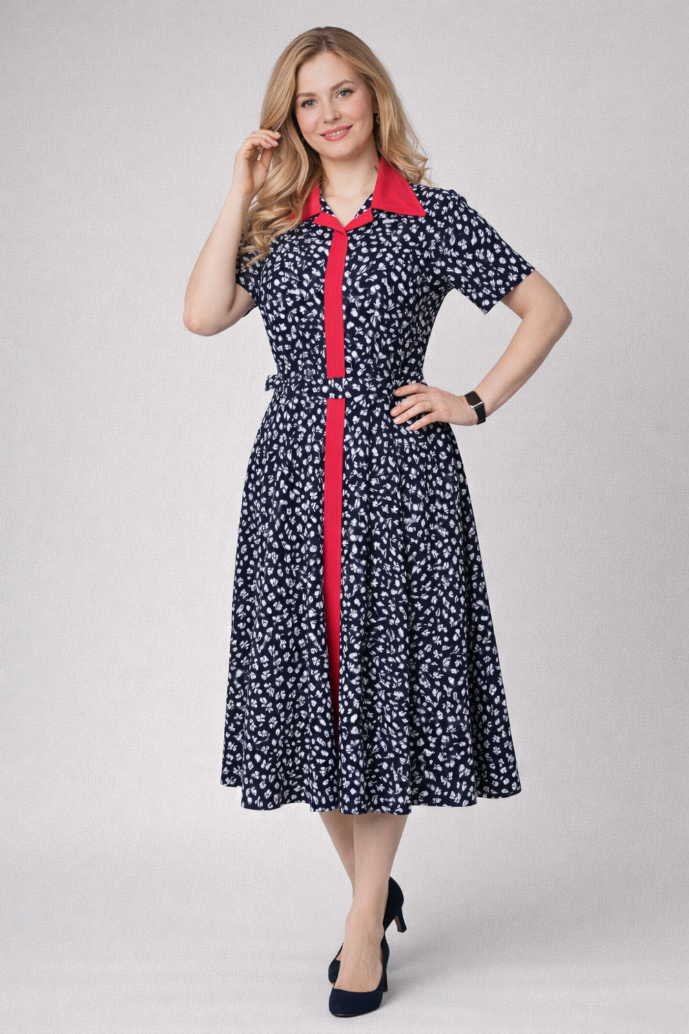 Свободная юбка-миди обеспечивает свободу движения и элегантную посадку.