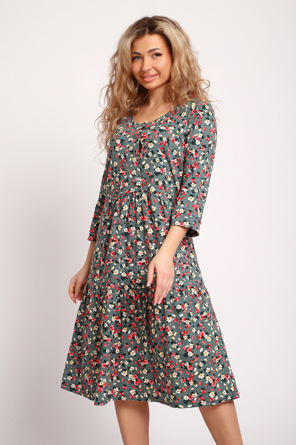Широкий выбор цветов и размеров позволит каждой женщине подобрать платье, которое будет идеально смотреться на ее фигуре. Застежки на пуговицах обеспечат удобство и легкость при одевании, а нижняя оборка добавит образу нежности и романтичности.