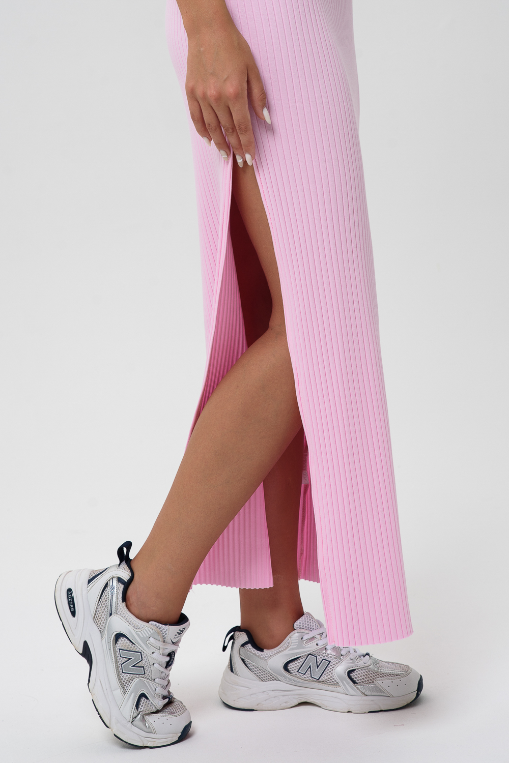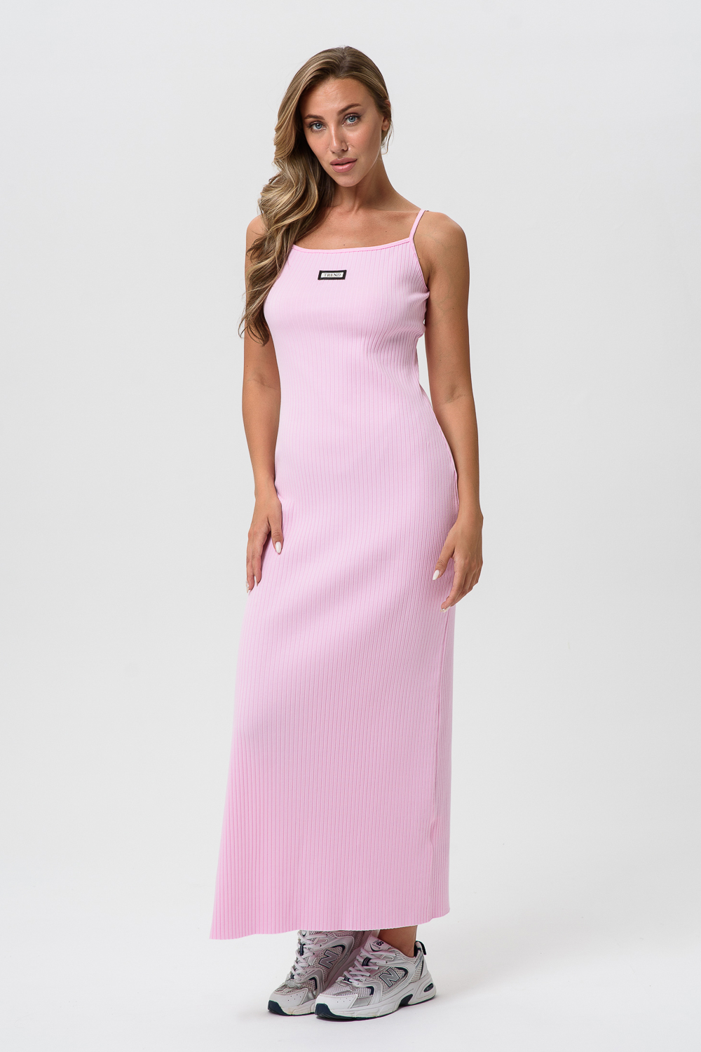 Длинное спортивное платье приталенного силуэта на тонких бретельках. Мягкая ткань в рубчик обеспечивает комфорт. Идеальный вариант на каждый день или в отпуск, на море или путешествий и отдыха. Длинное платье с разрезом идеально сочетается с любой спортивной обувью будь, то кроссовки, кеды, сандалии.