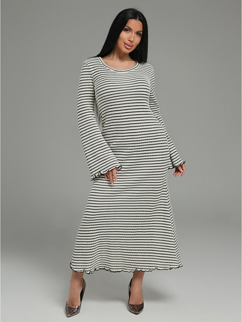Женское платье приталенное расклешенное с длинным рукавом.