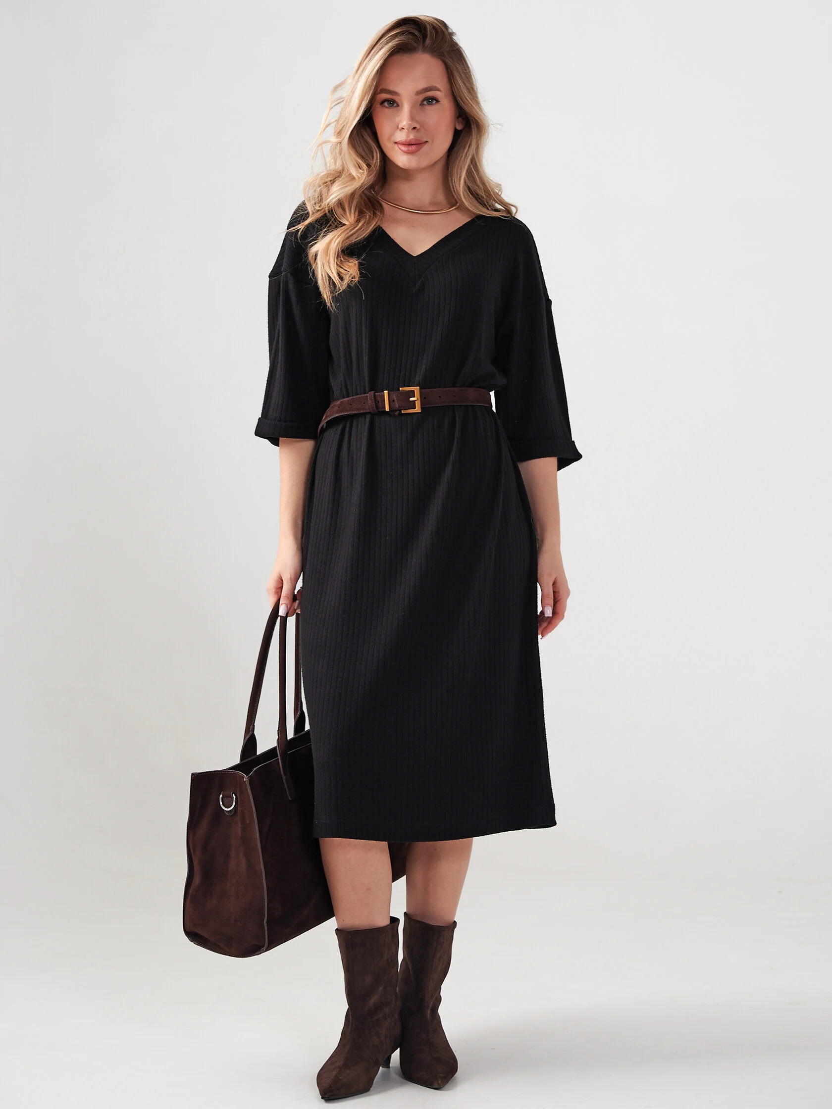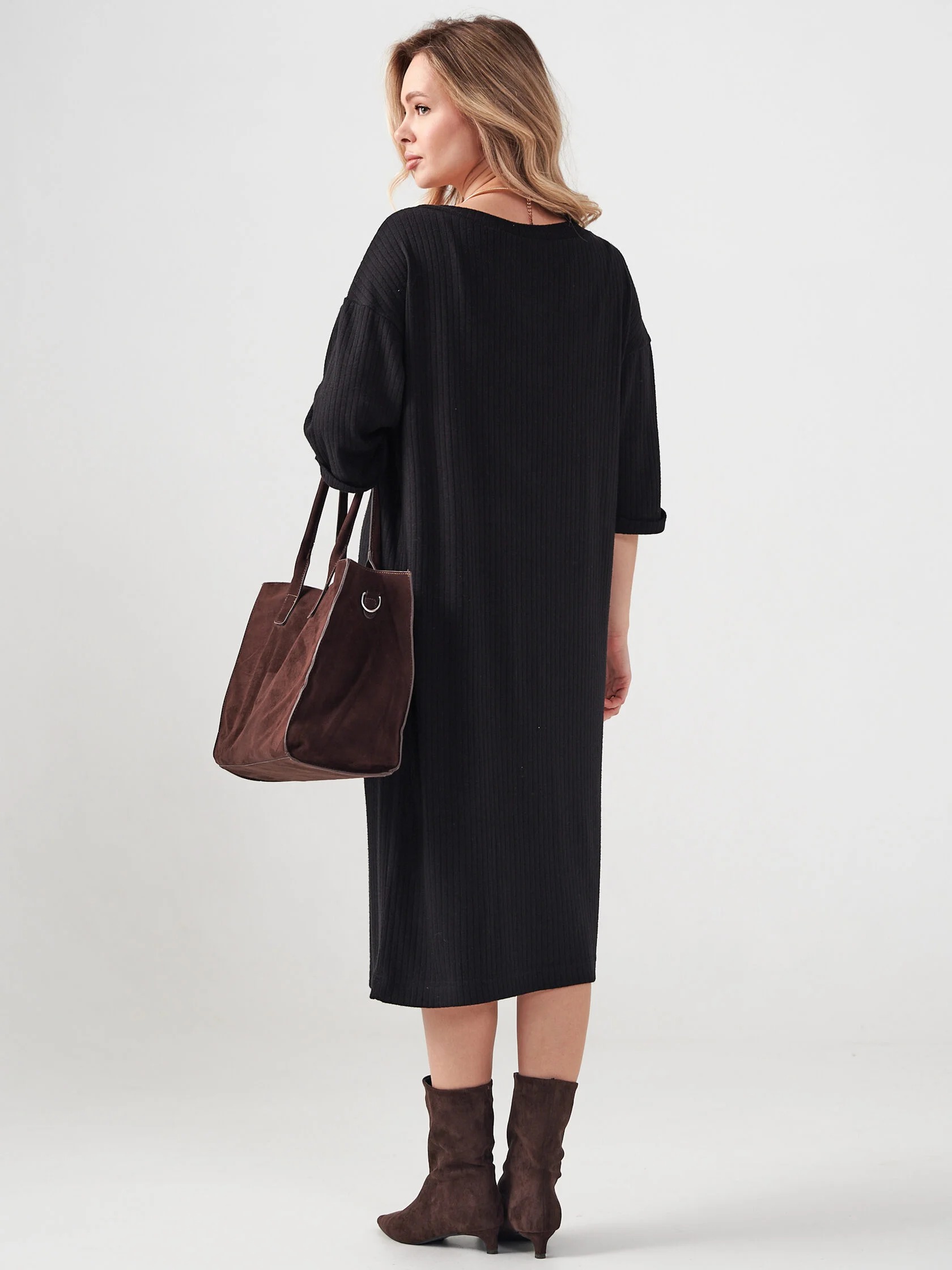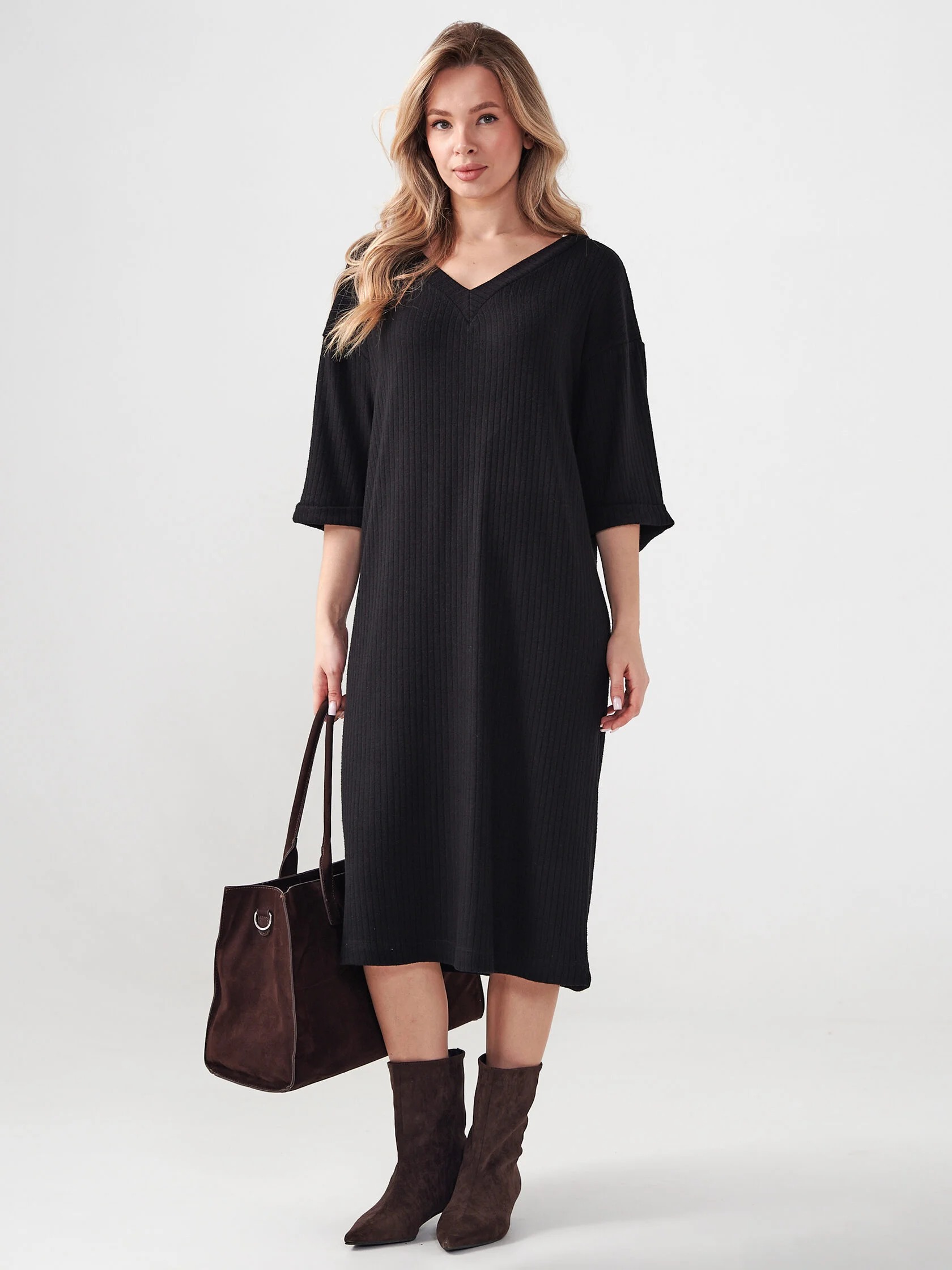 Женское платье "Ангора" 2418-Л / Черный имеет V-образный вырез и рукав до локтя, подходит для повседневной носки.