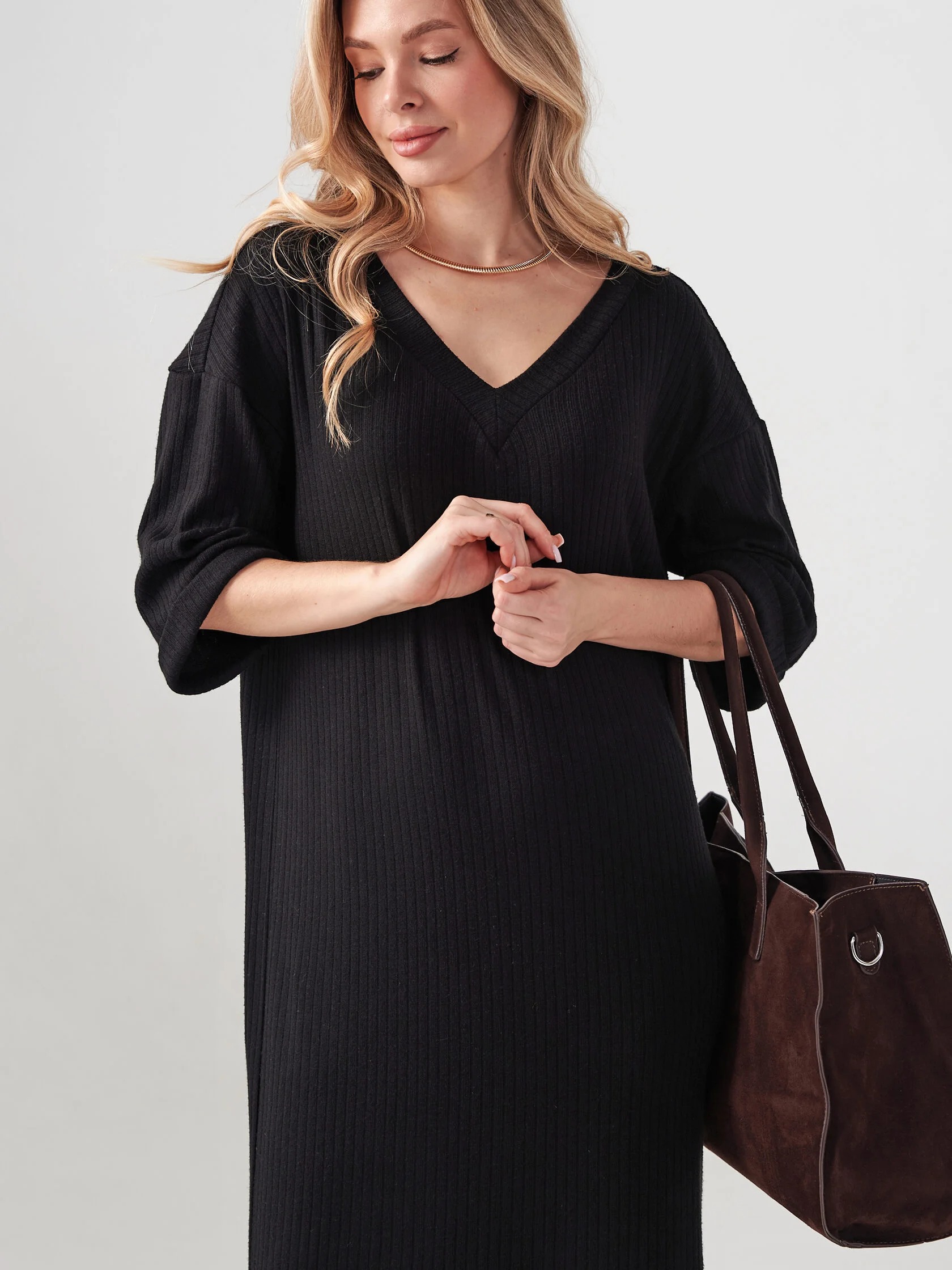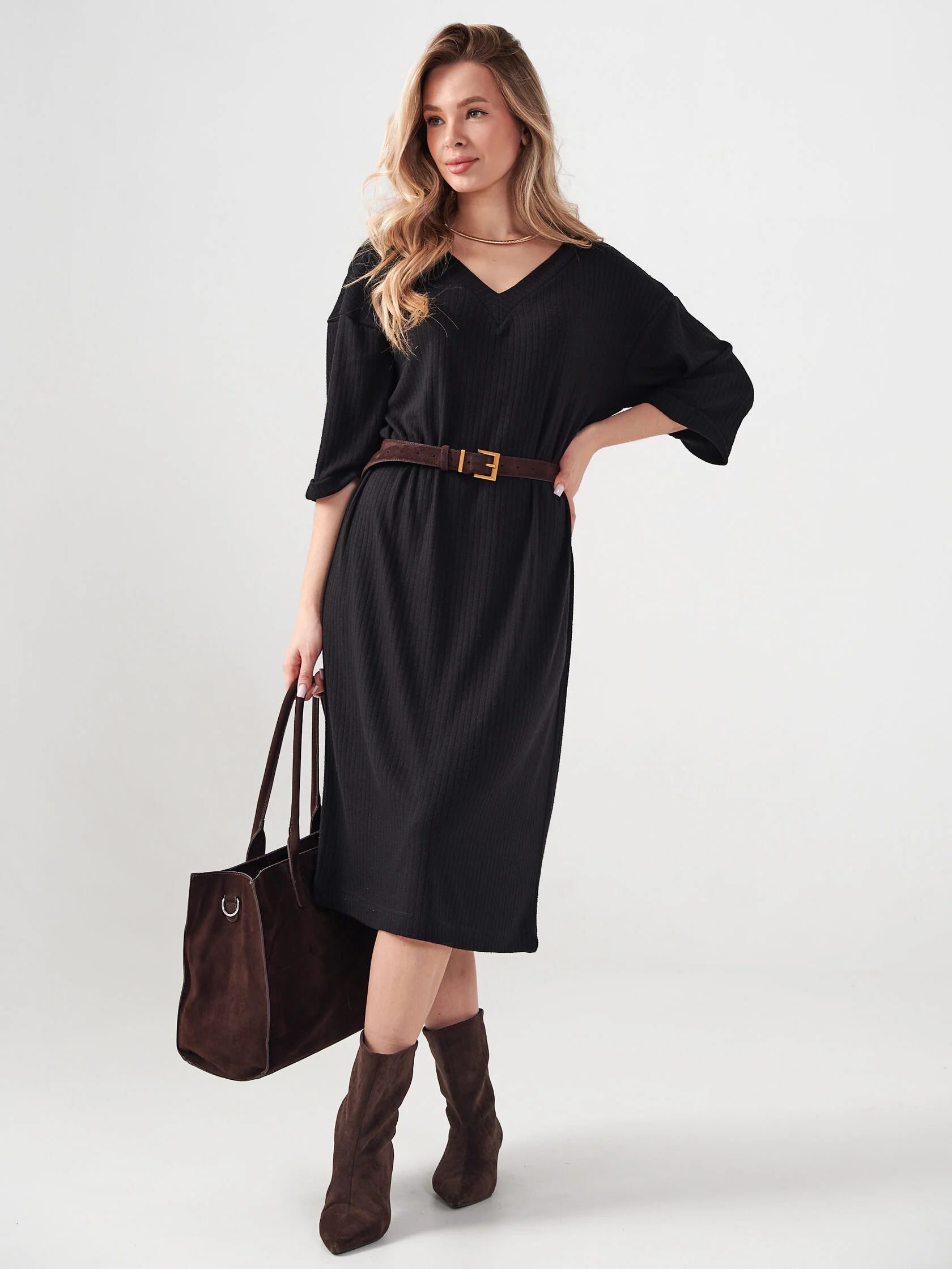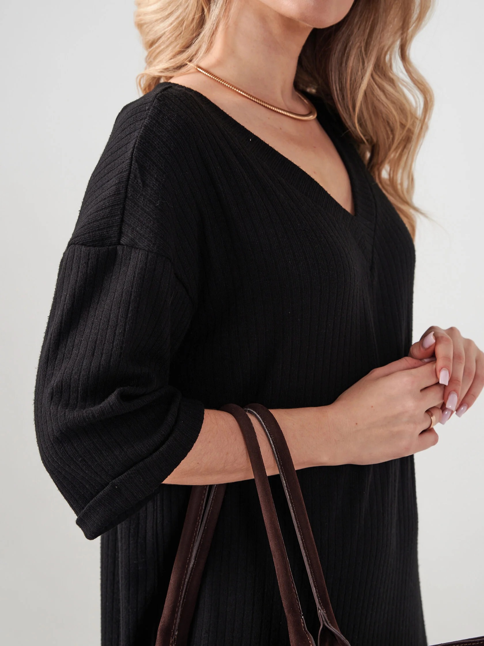 Женское платье "Ангора" 2418-Л / Черный имеет V-образный вырез и рукав до локтя, подходит для повседневной носки.