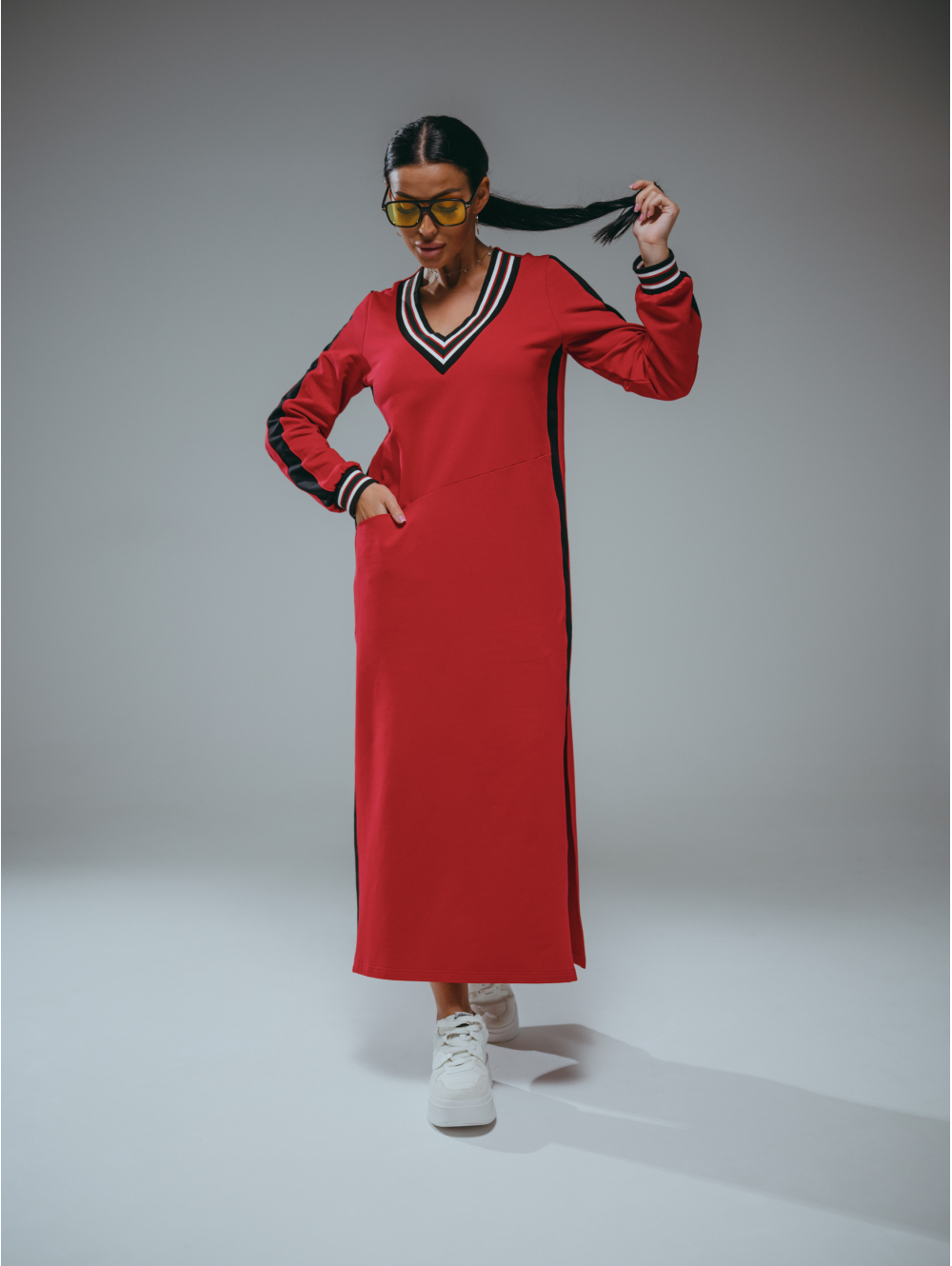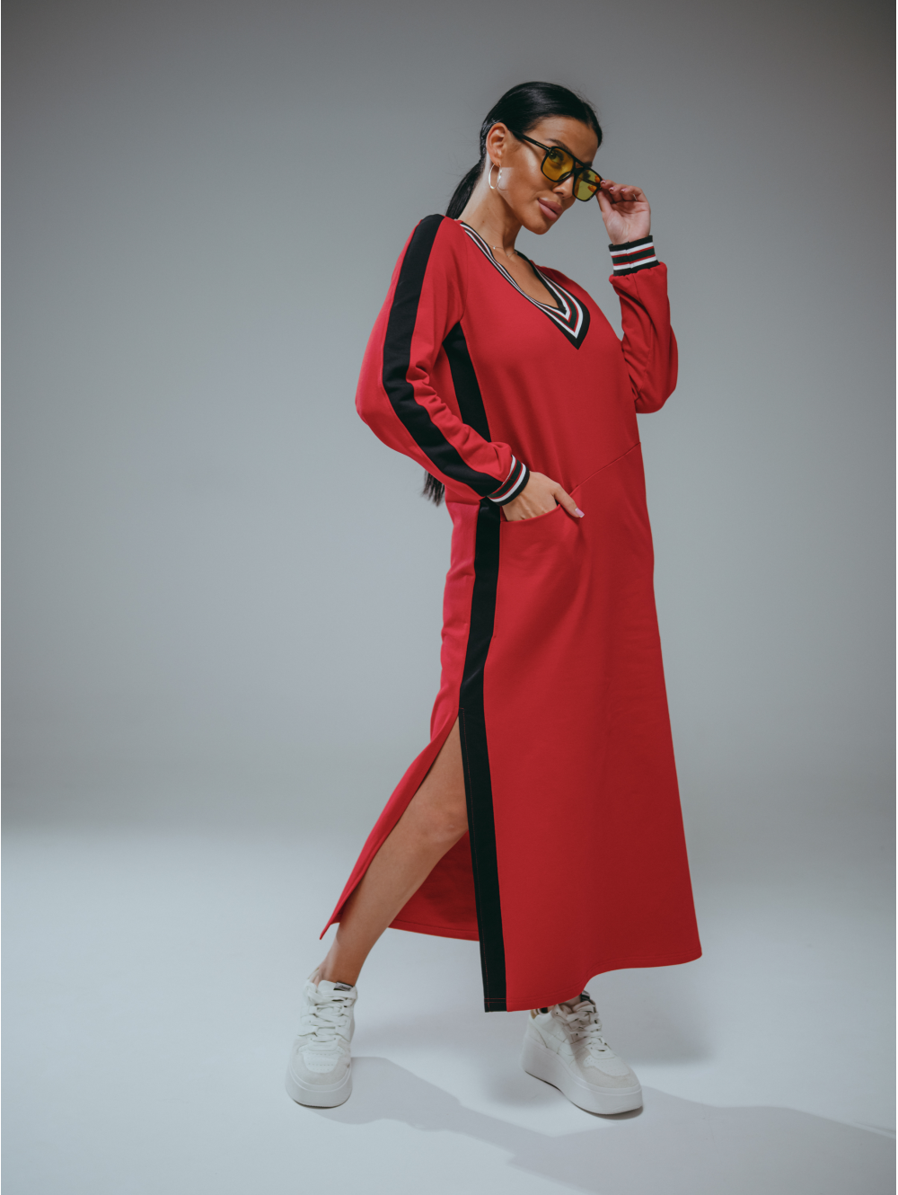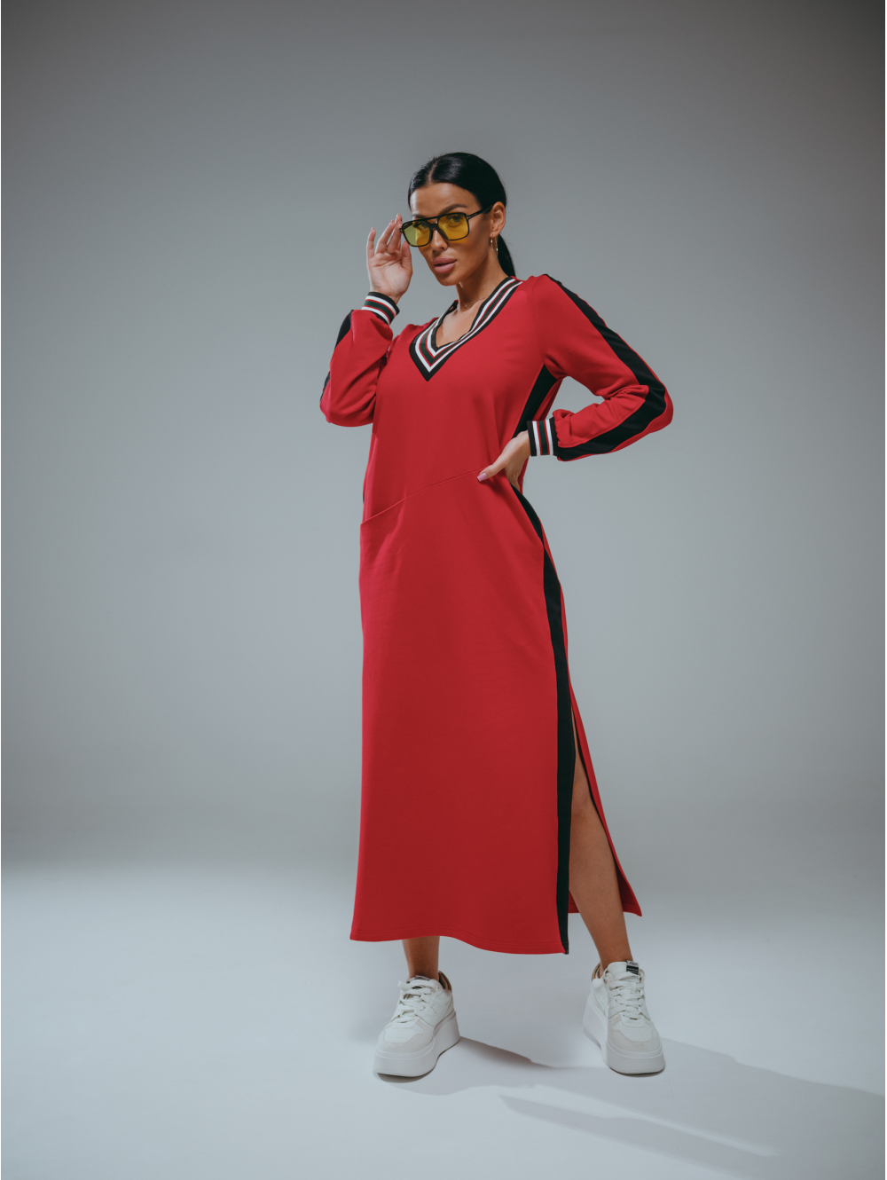 Откройте для себя идеальное платье для создания стильных капсульных образов! Это платье-макси прямого силуэта с длинным рукавом сочетает в себе непринужденный шик и максимальный комфорт. Сшито из премиального футера двунитки пенье с лайкрой — ткани, которая отличается повышенной мягкостью, плотностью и идеально держит форму.
