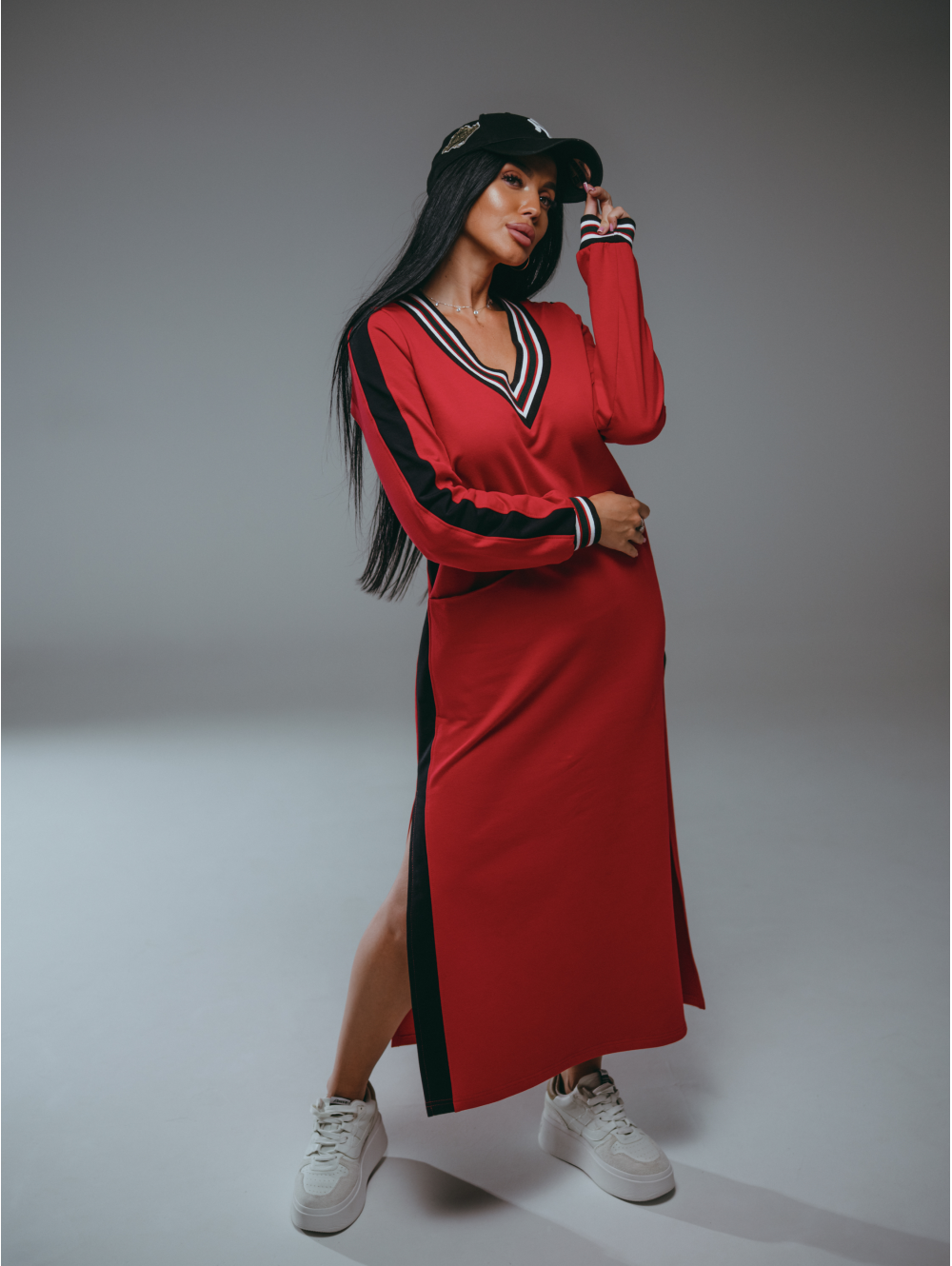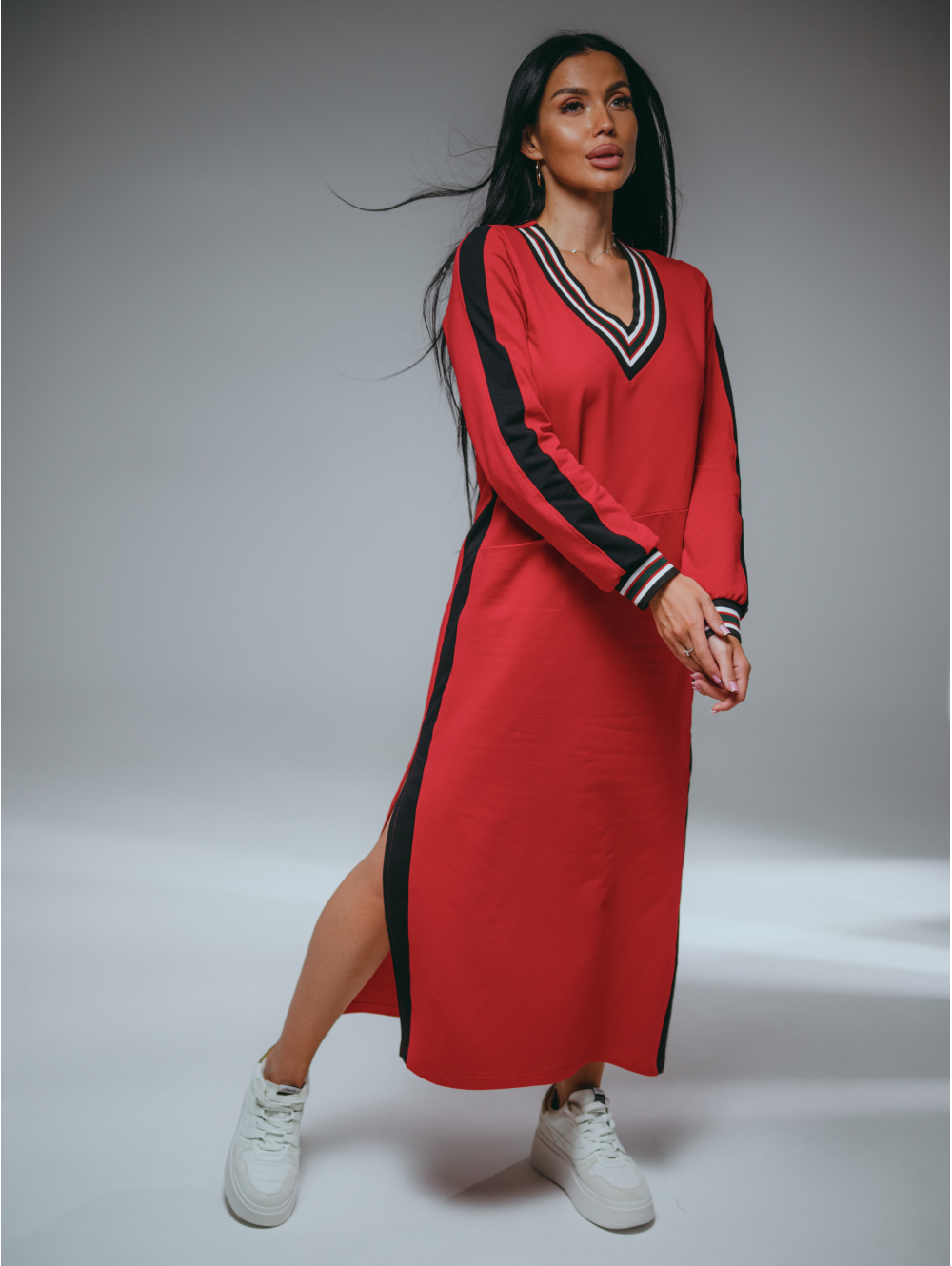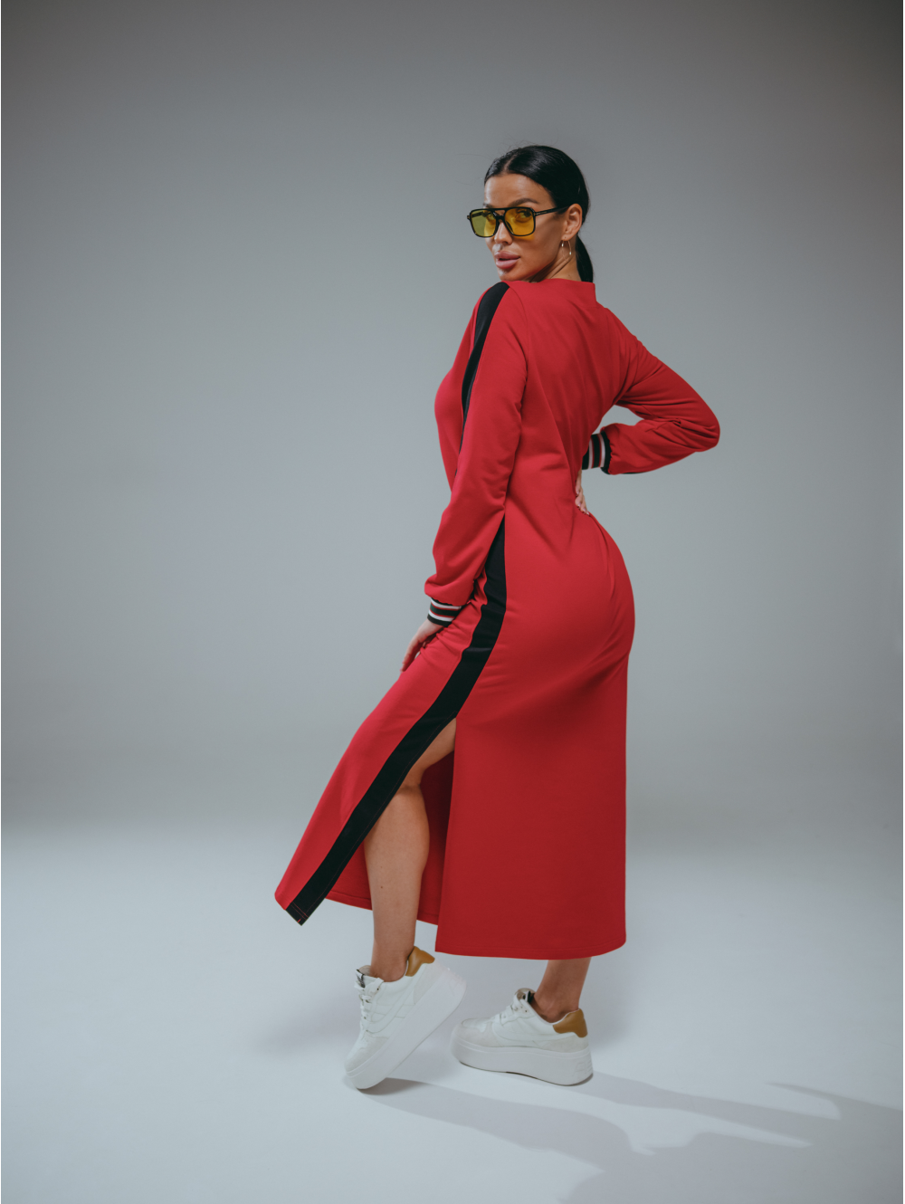 Откройте для себя идеальное платье для создания стильных капсульных образов! Это платье-макси прямого силуэта с длинным рукавом сочетает в себе непринужденный шик и максимальный комфорт. Сшито из премиального футера двунитки пенье с лайкрой — ткани, которая отличается повышенной мягкостью, плотностью и идеально держит форму.