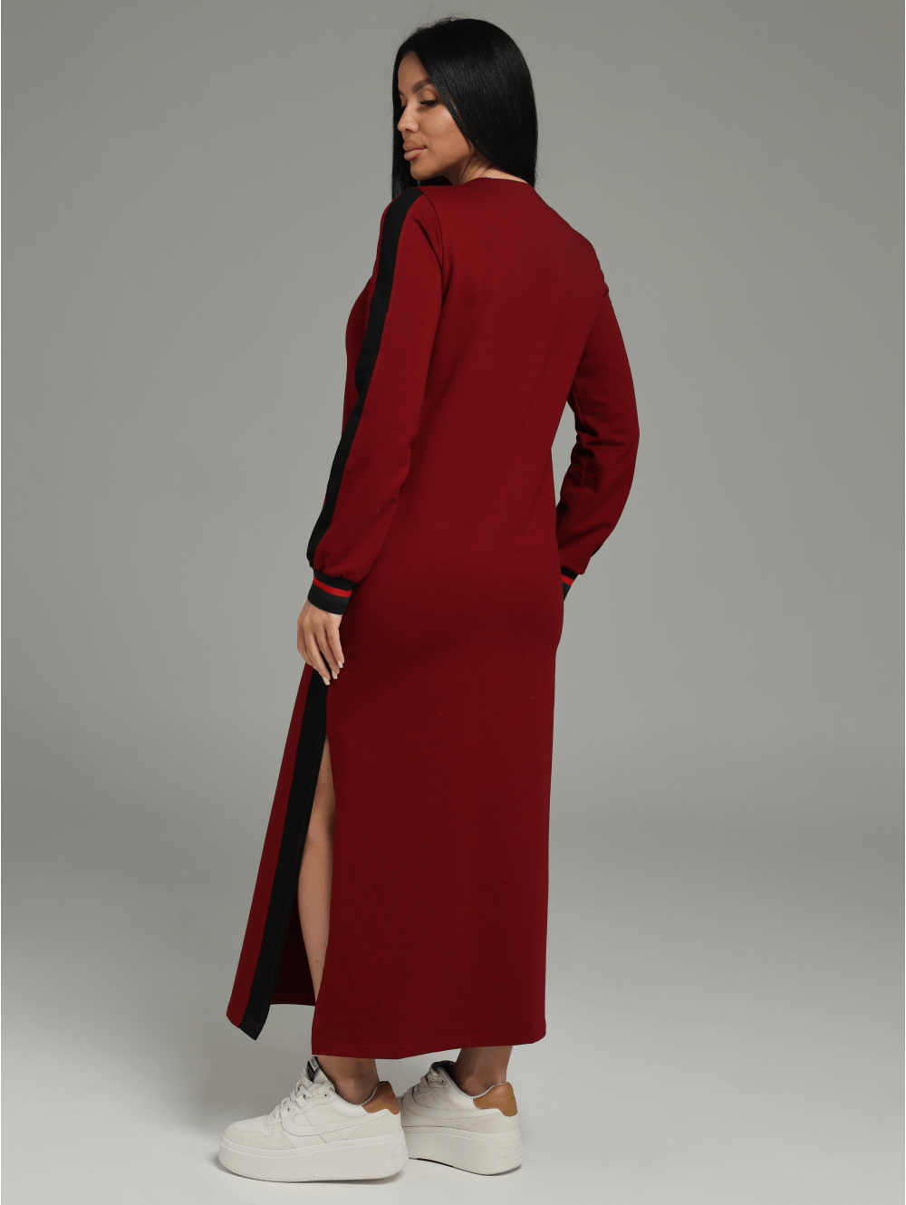 Откройте для себя идеальное платье для создания стильных капсульных образов! Это платье-макси прямого силуэта с длинным рукавом сочетает в себе непринужденный шик и максимальный комфорт. Сшито из премиального футера двунитки пенье с лайкрой — ткани, которая отличается повышенной мягкостью, плотностью и идеально держит форму.