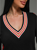 Элегантная деталь: Глубокий V-образный вырез горловины зрительно удлиняет шею, делая образ более утонченным. Аккуратная обработка обвязом подчеркивает линию горловины, сохраняя чистоту линий.