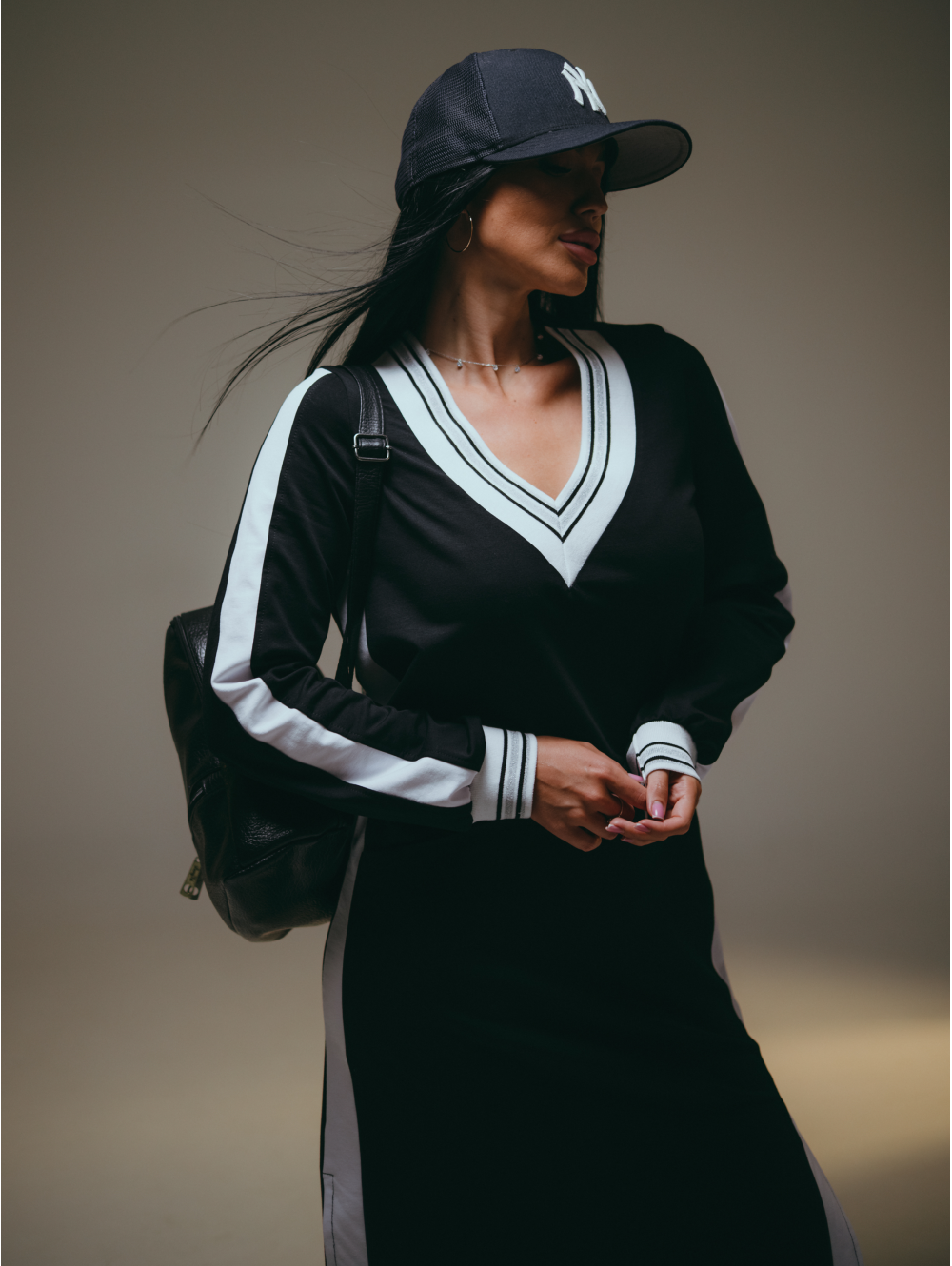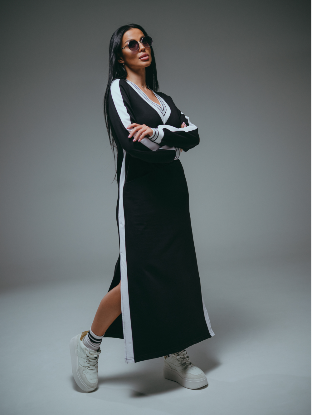 Платье, Дебора прямого силуэта, длины макси, с длинным рукавом. Платье с V-образным вырезом горловины. На полочке горловина обработана обвязом.